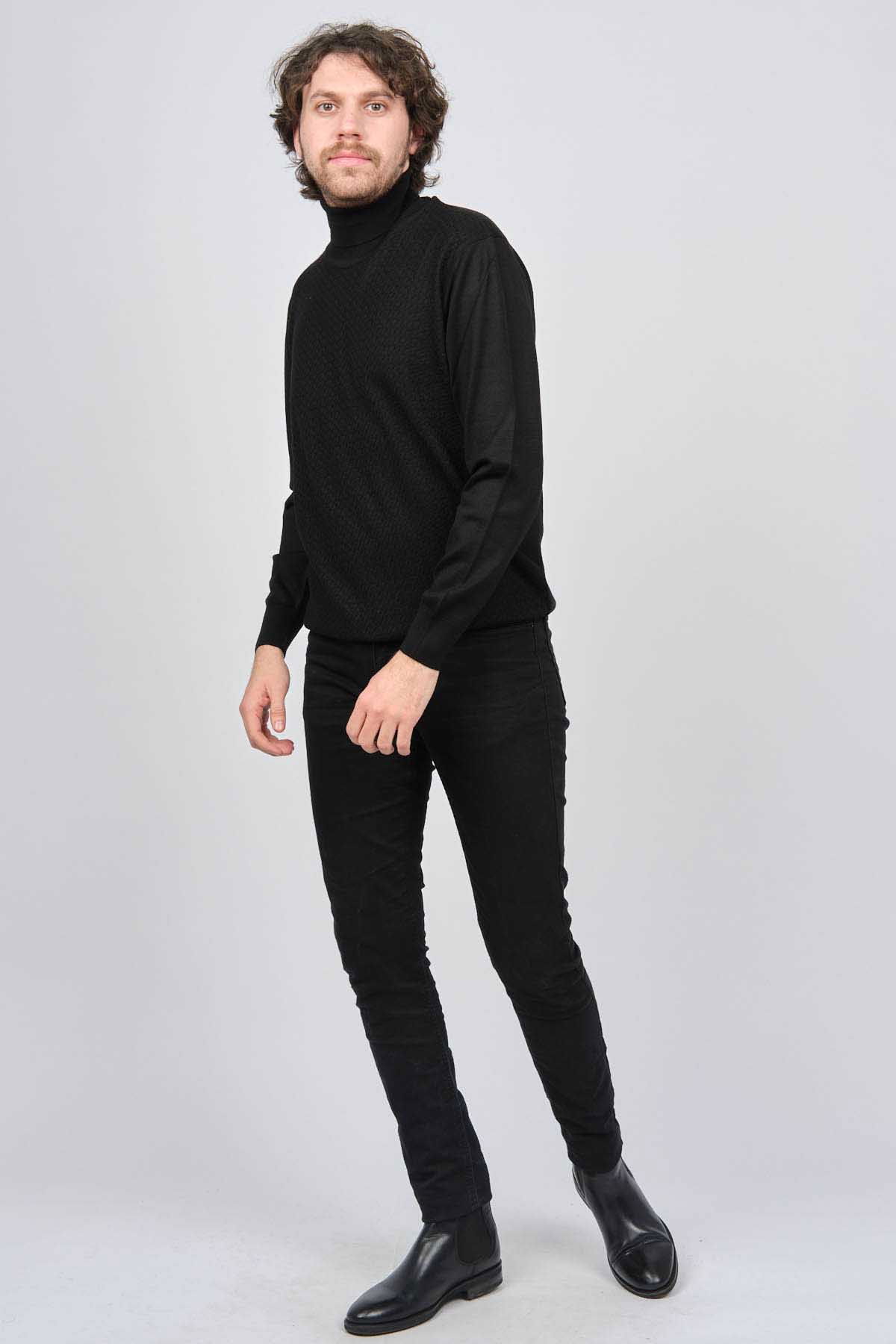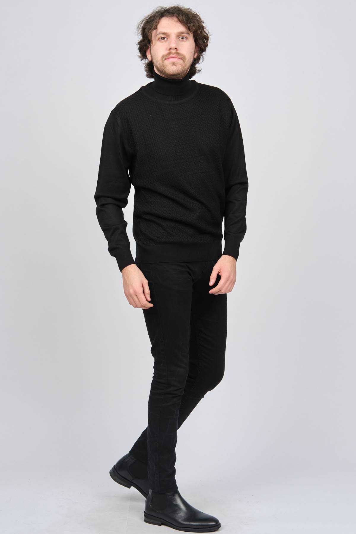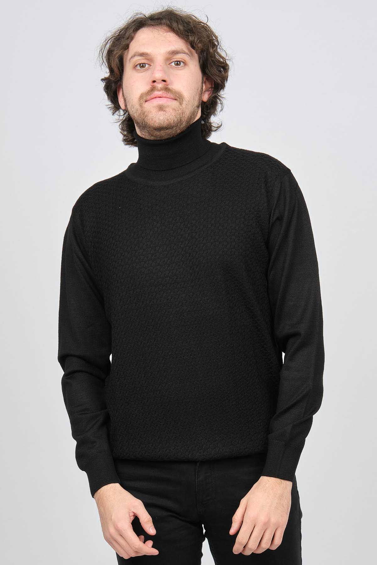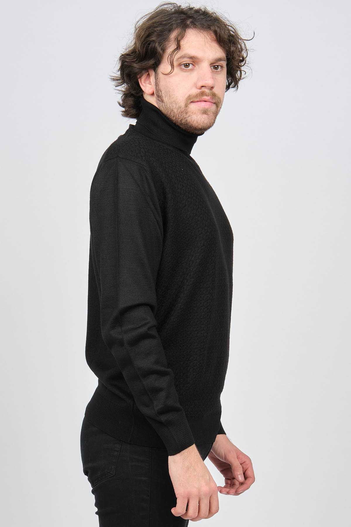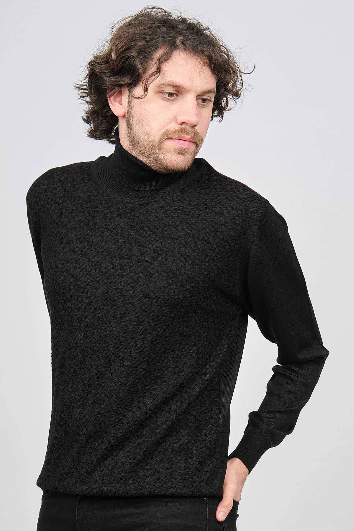 Ateş Triko Erkek Balıkçı Yaka Desenli Yün Kazak 6091598 Siyah