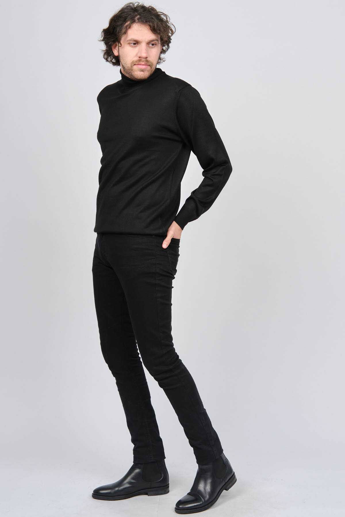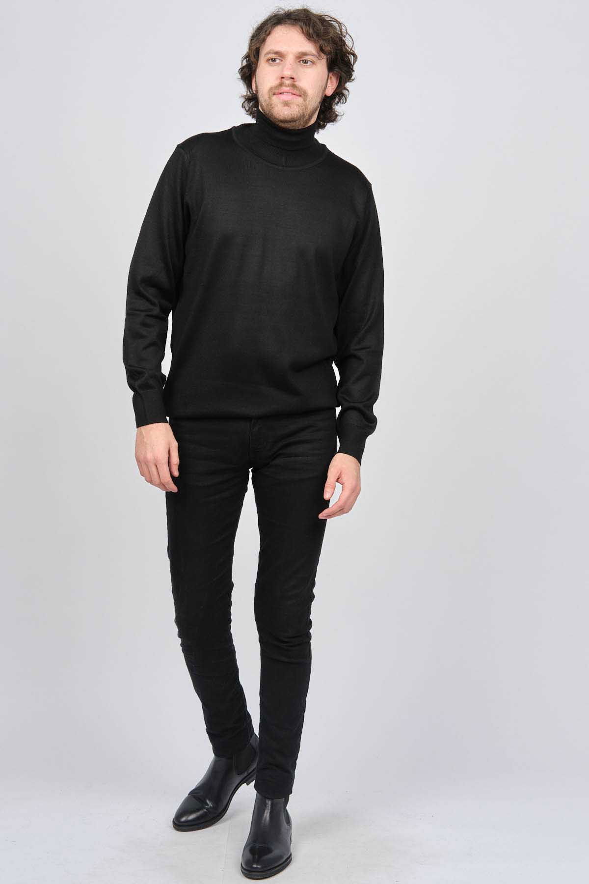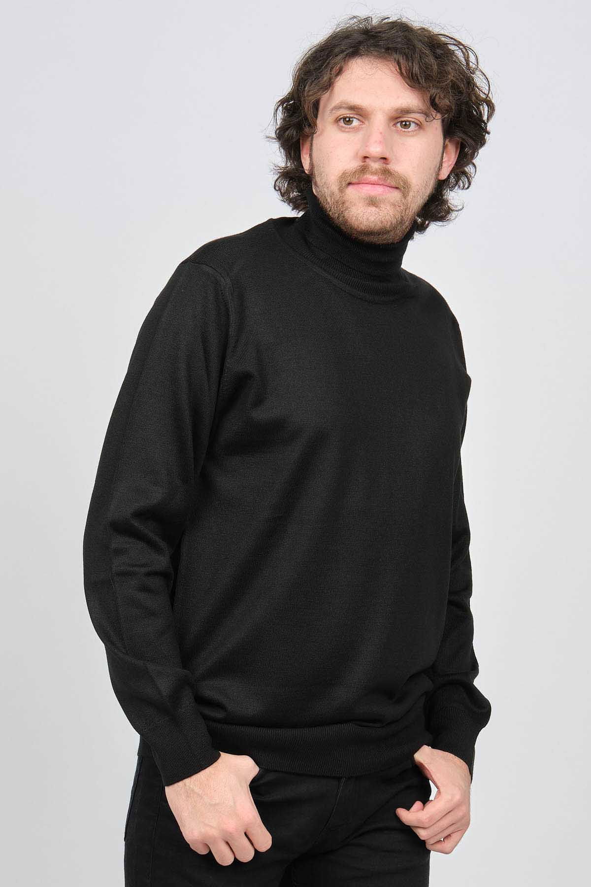 Ateş Triko Erkek Balıkçı Yaka Yün Kazak 6090008 Siyah