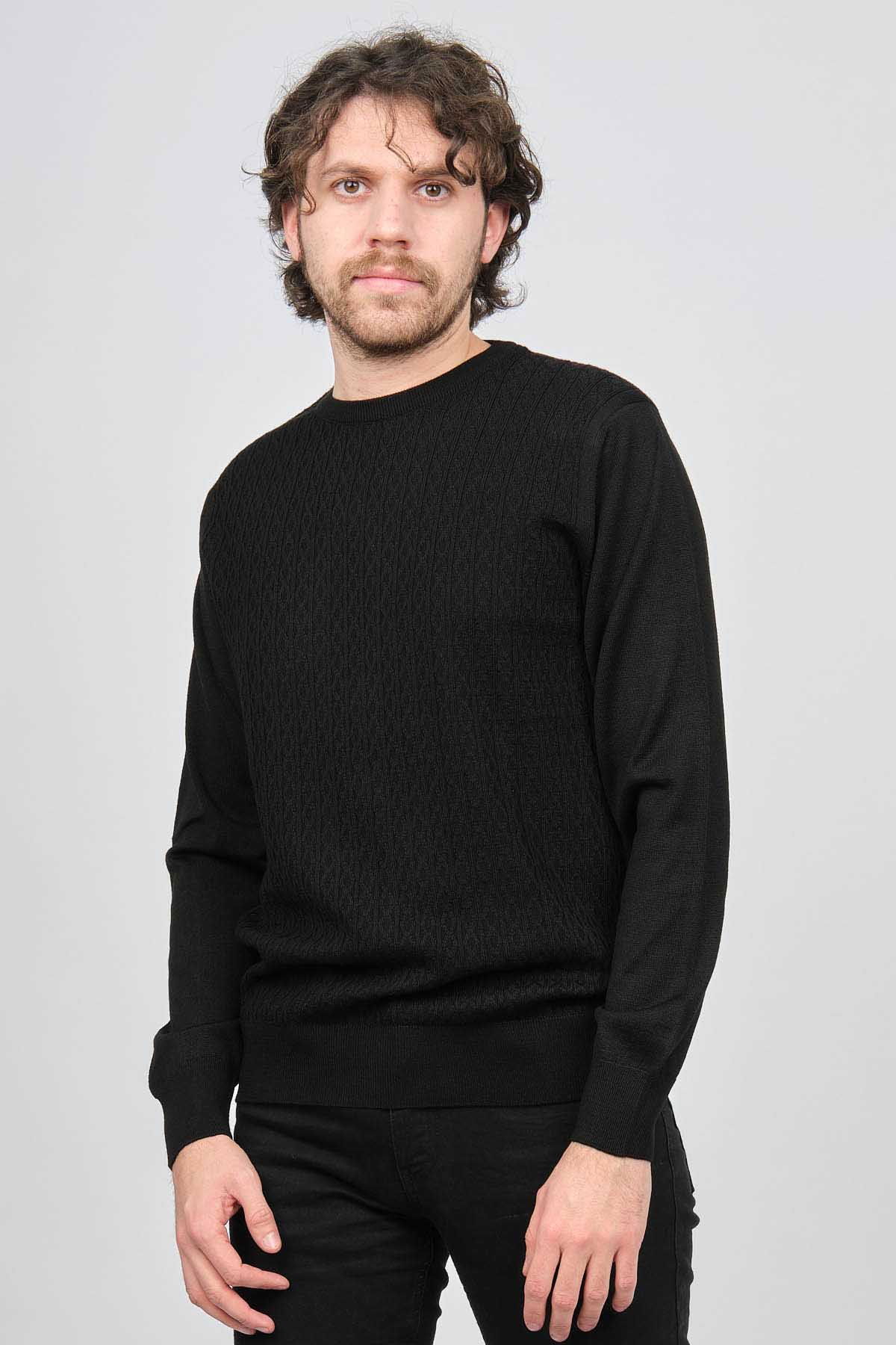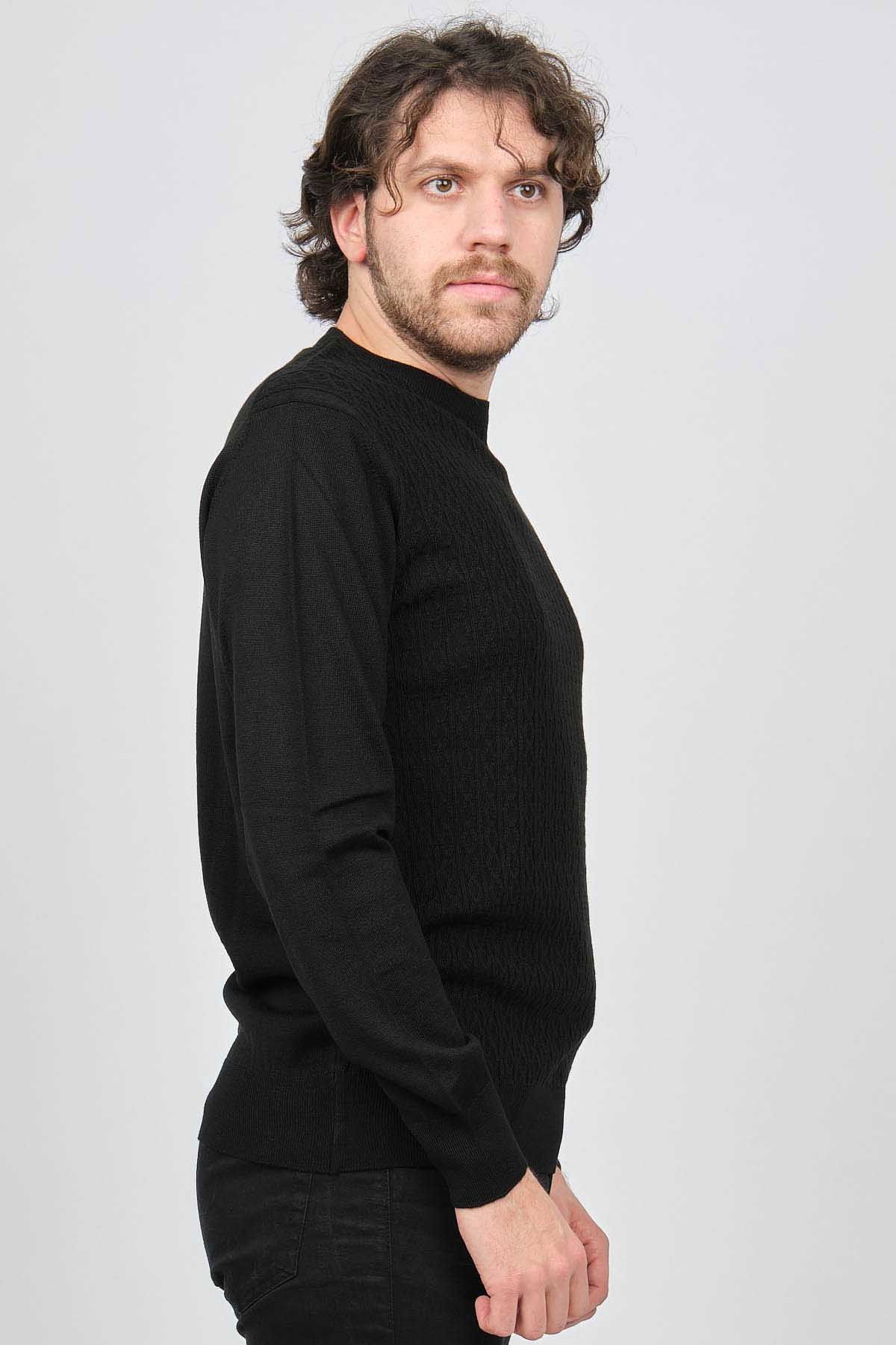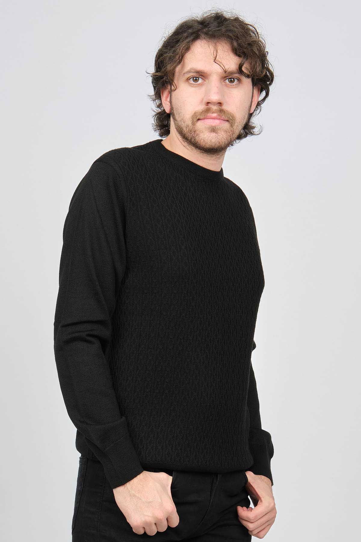 Ateş Triko Erkek Bisiklet Yaka Desenli Yün Kazak 6091565 Siyah