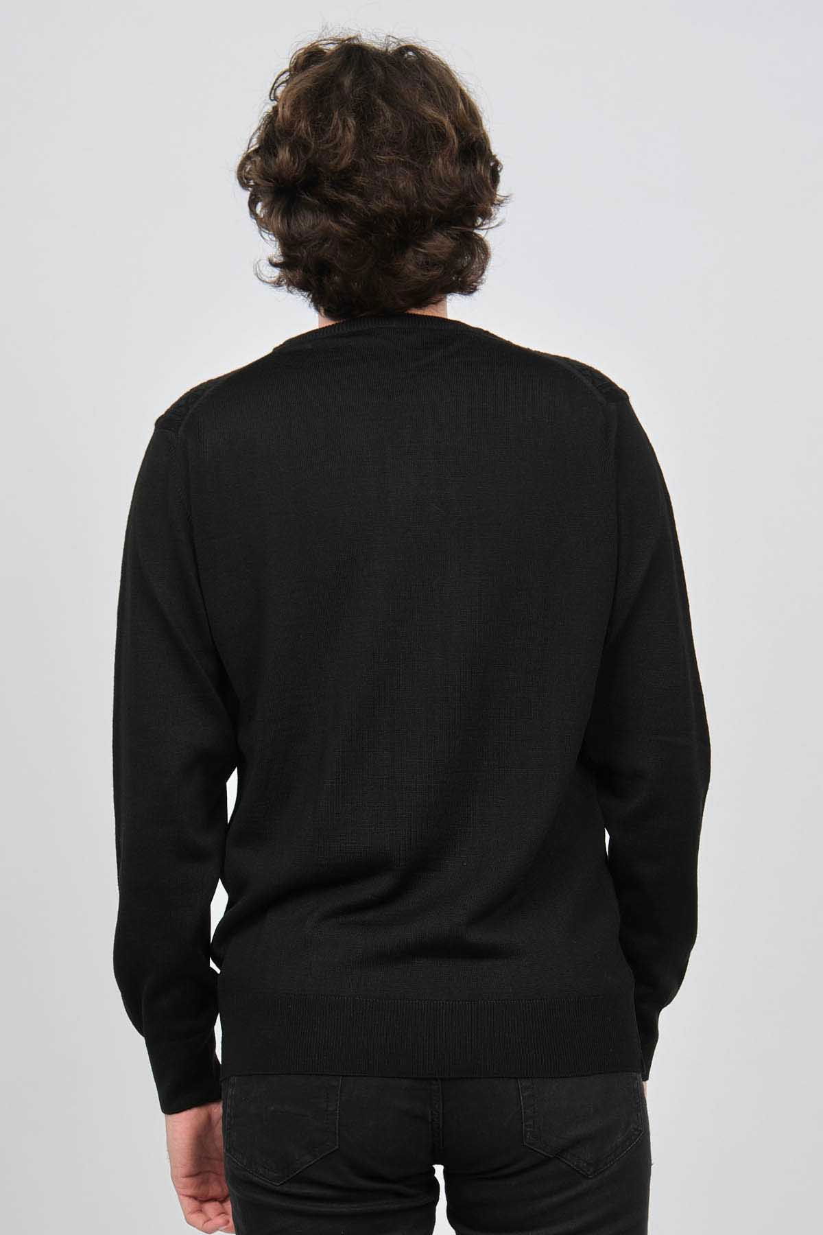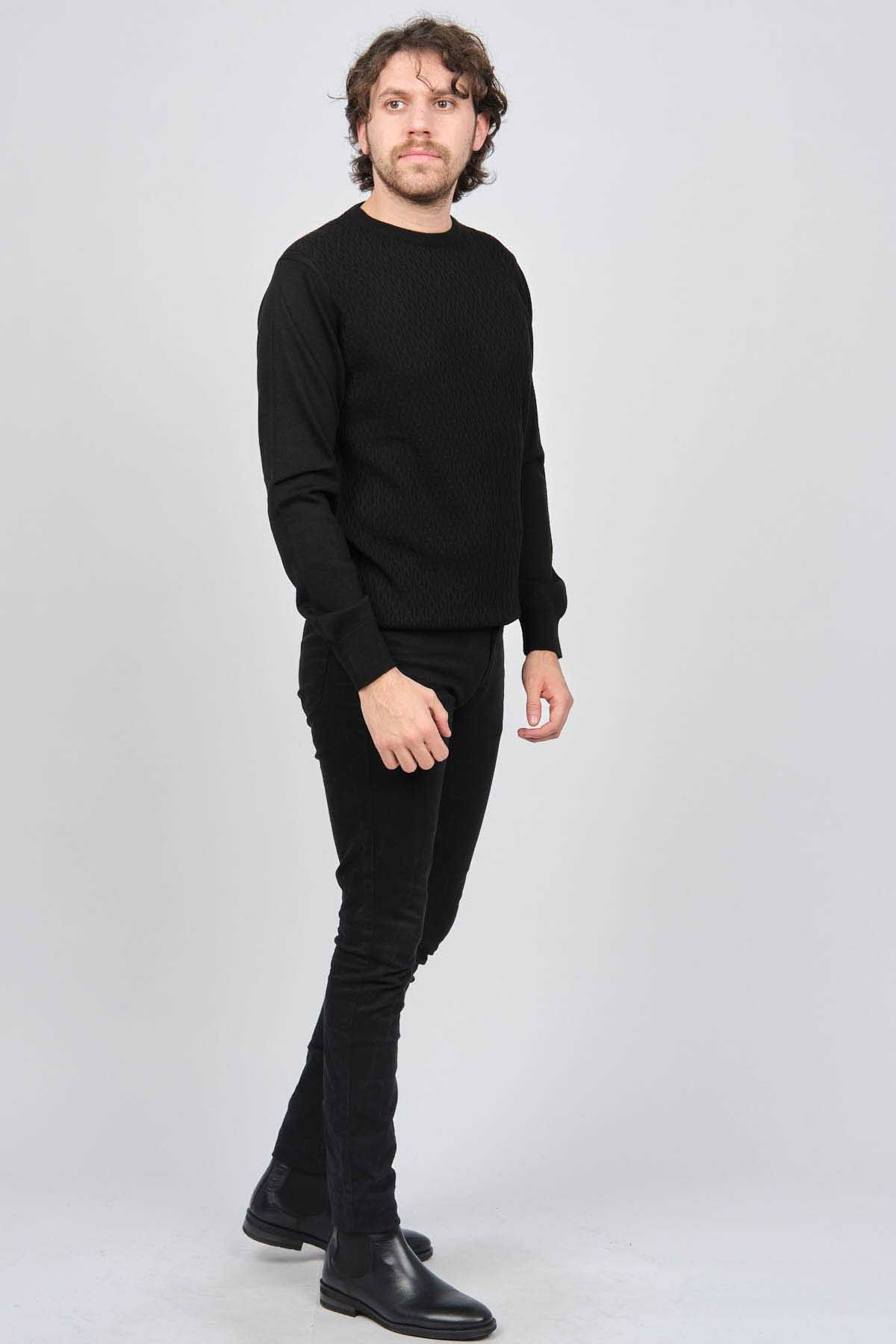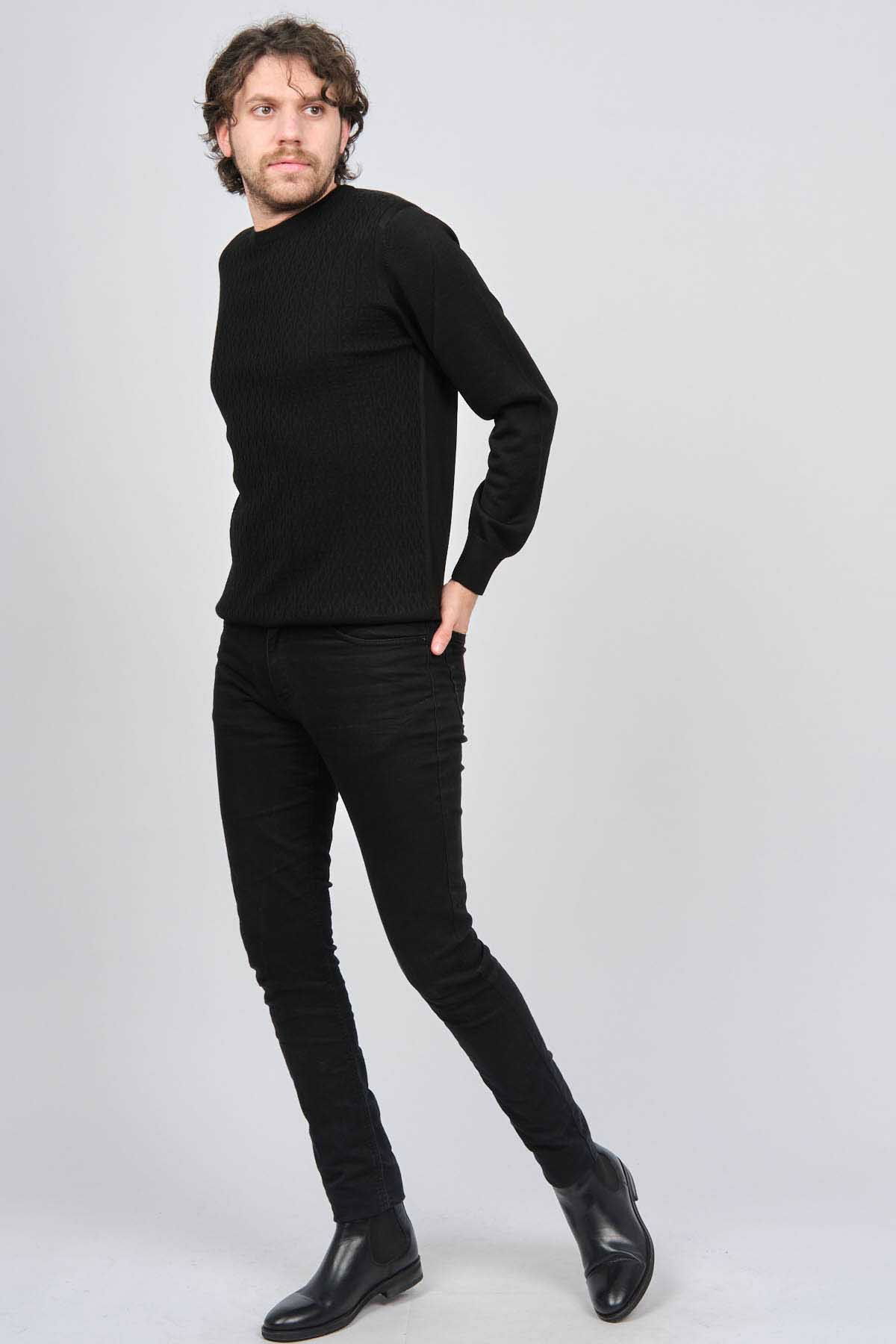 Ateş Triko Erkek Bisiklet Yaka Desenli Yün Kazak 6091565 Siyah