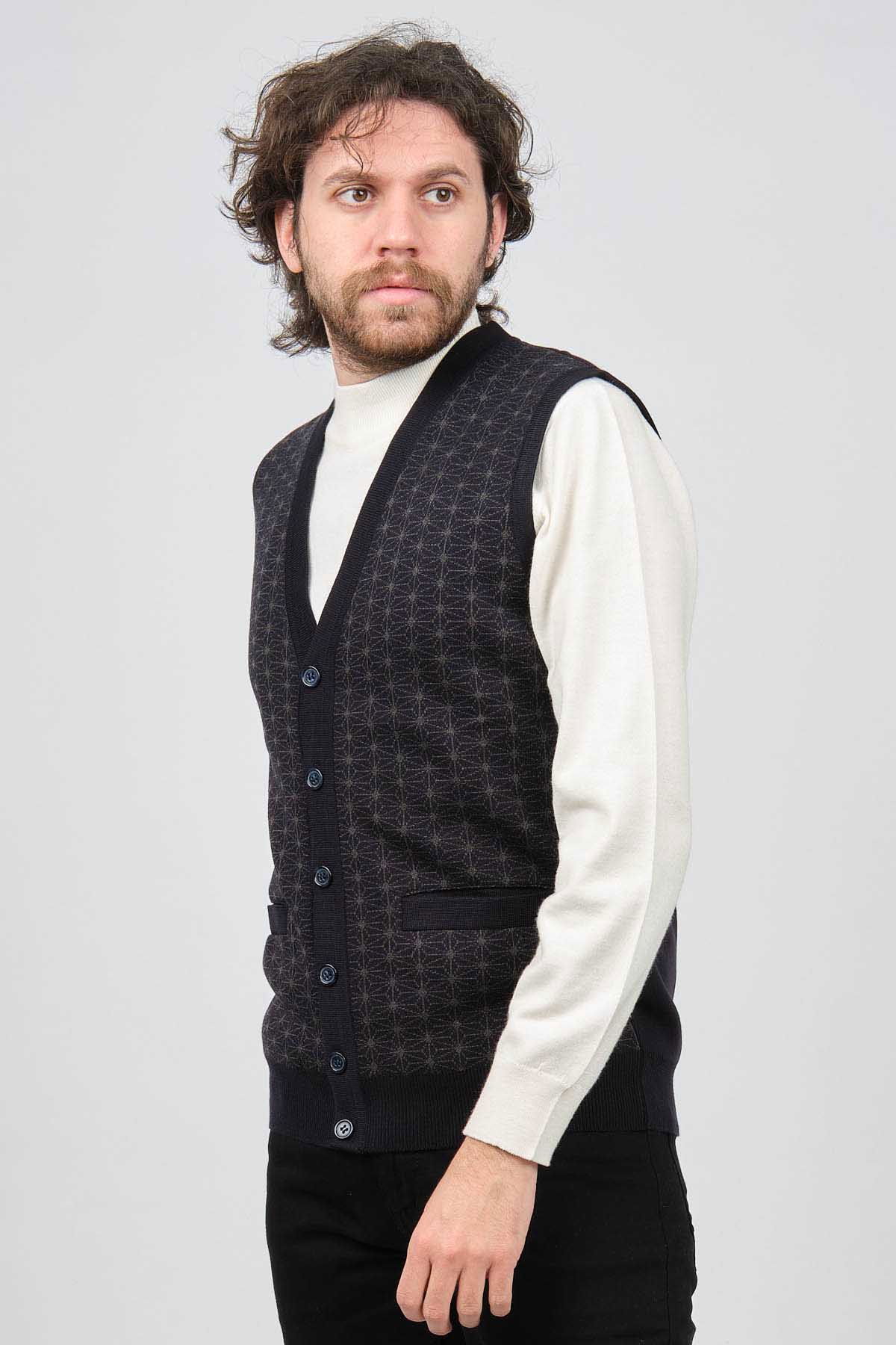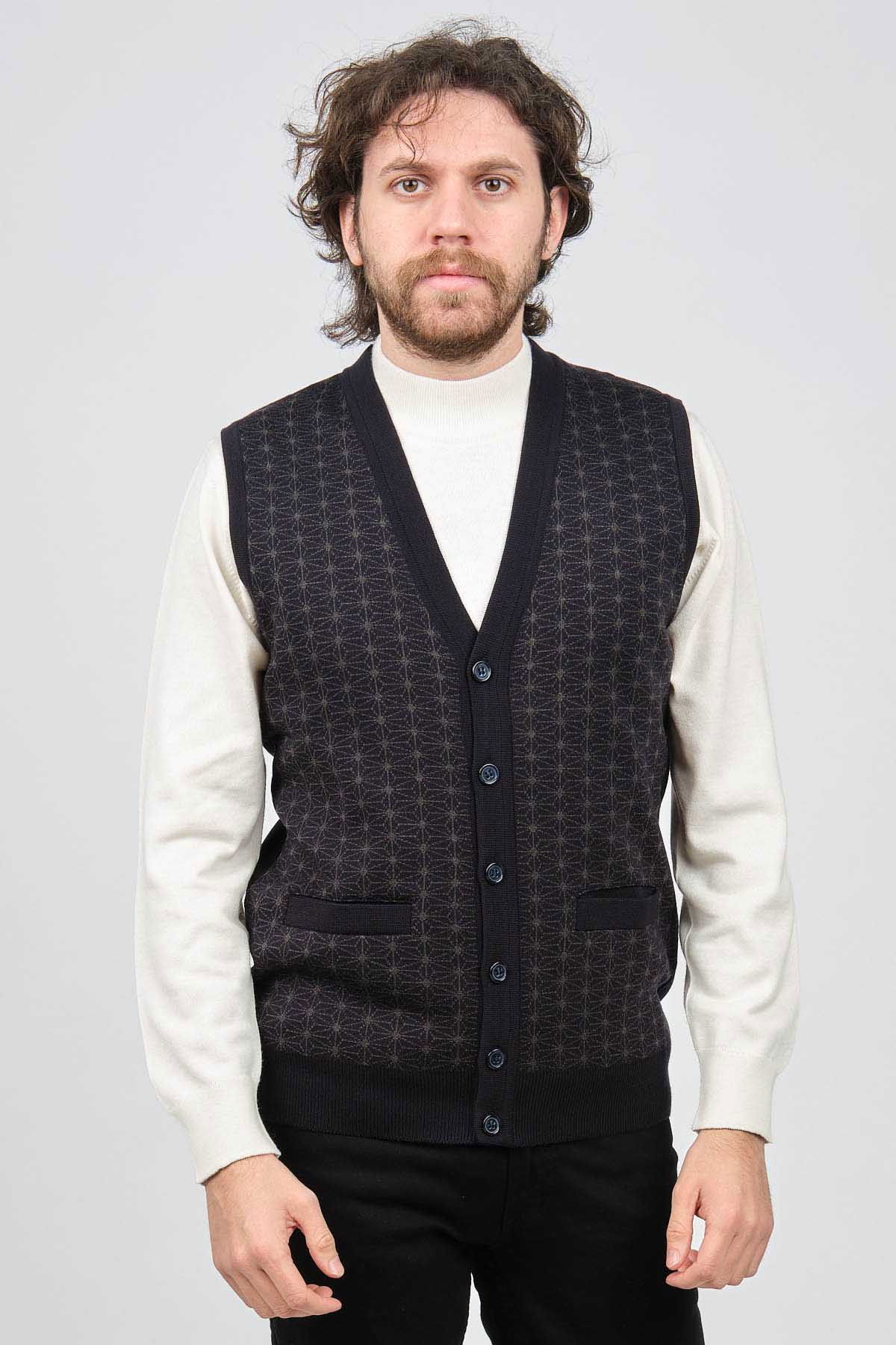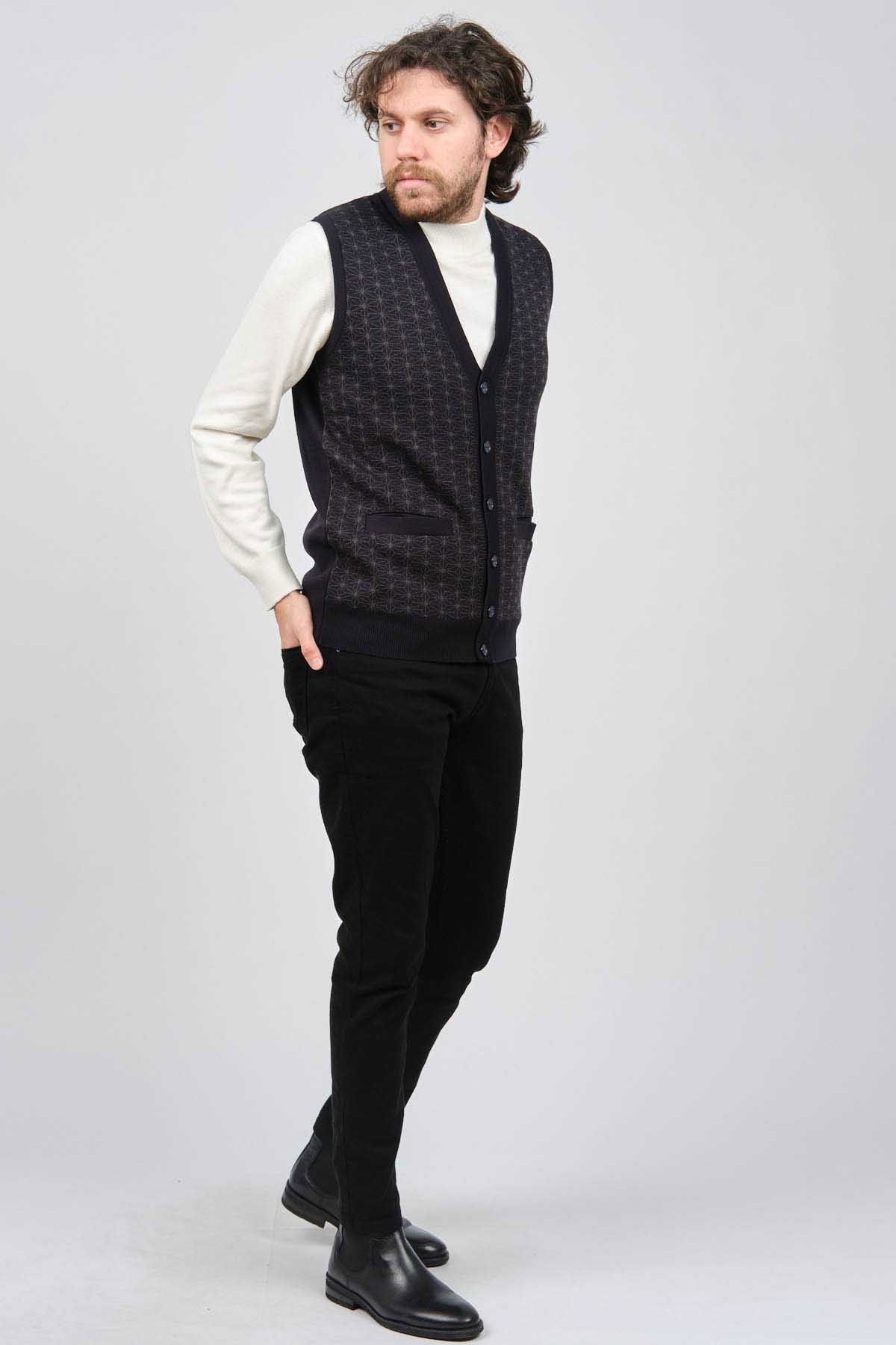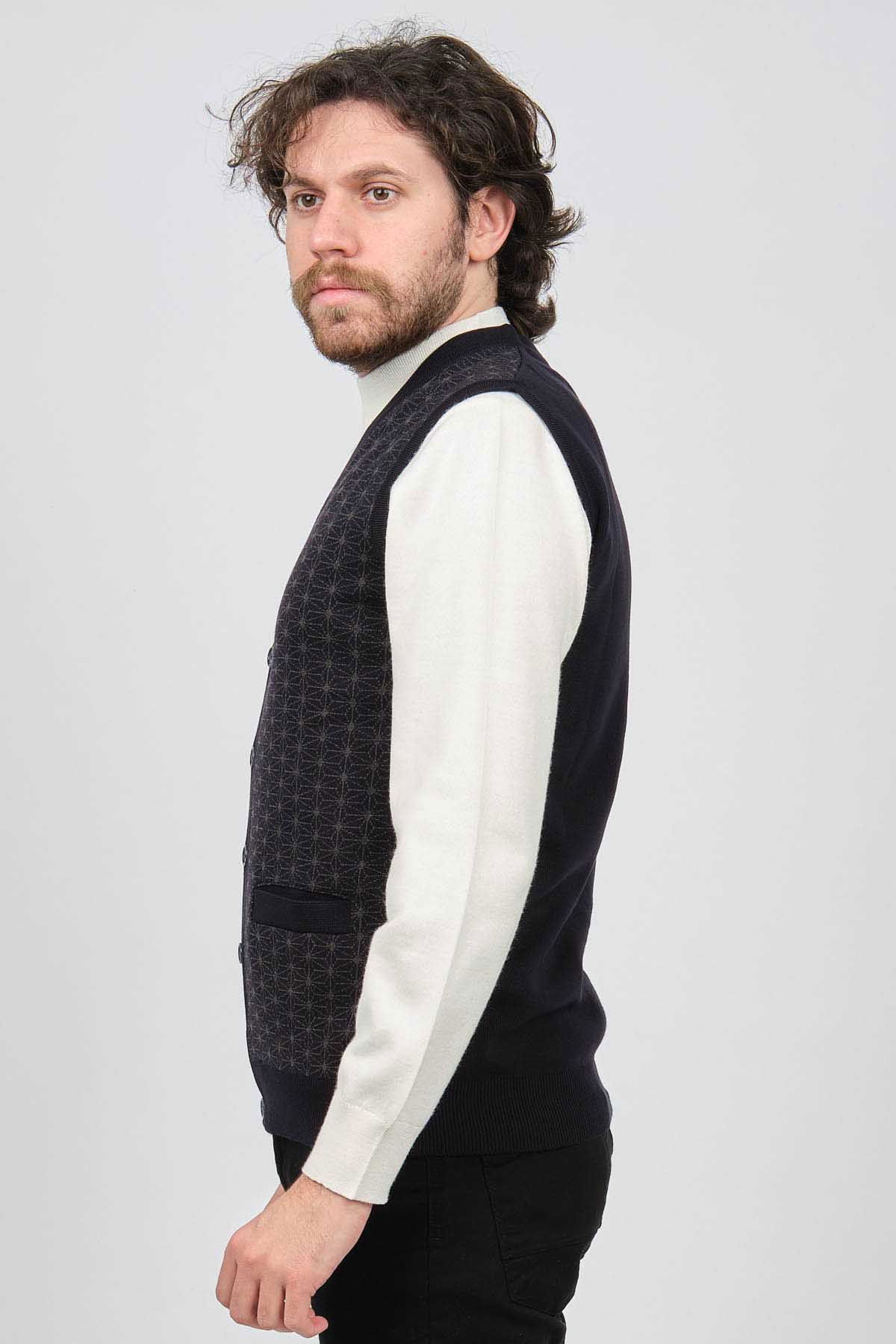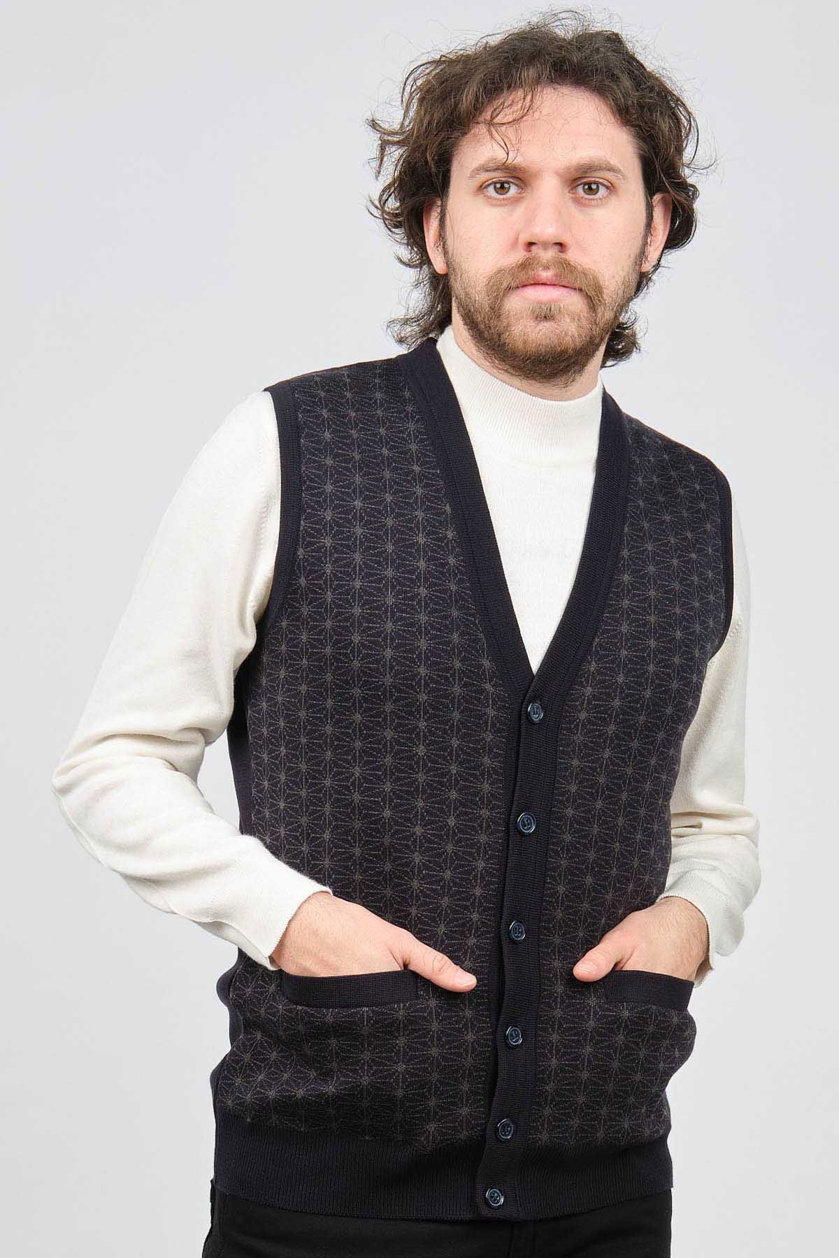Ateş Triko Erkek Cep Detaylı Düğmeli Desenli Yelek 6091732 Lacivert