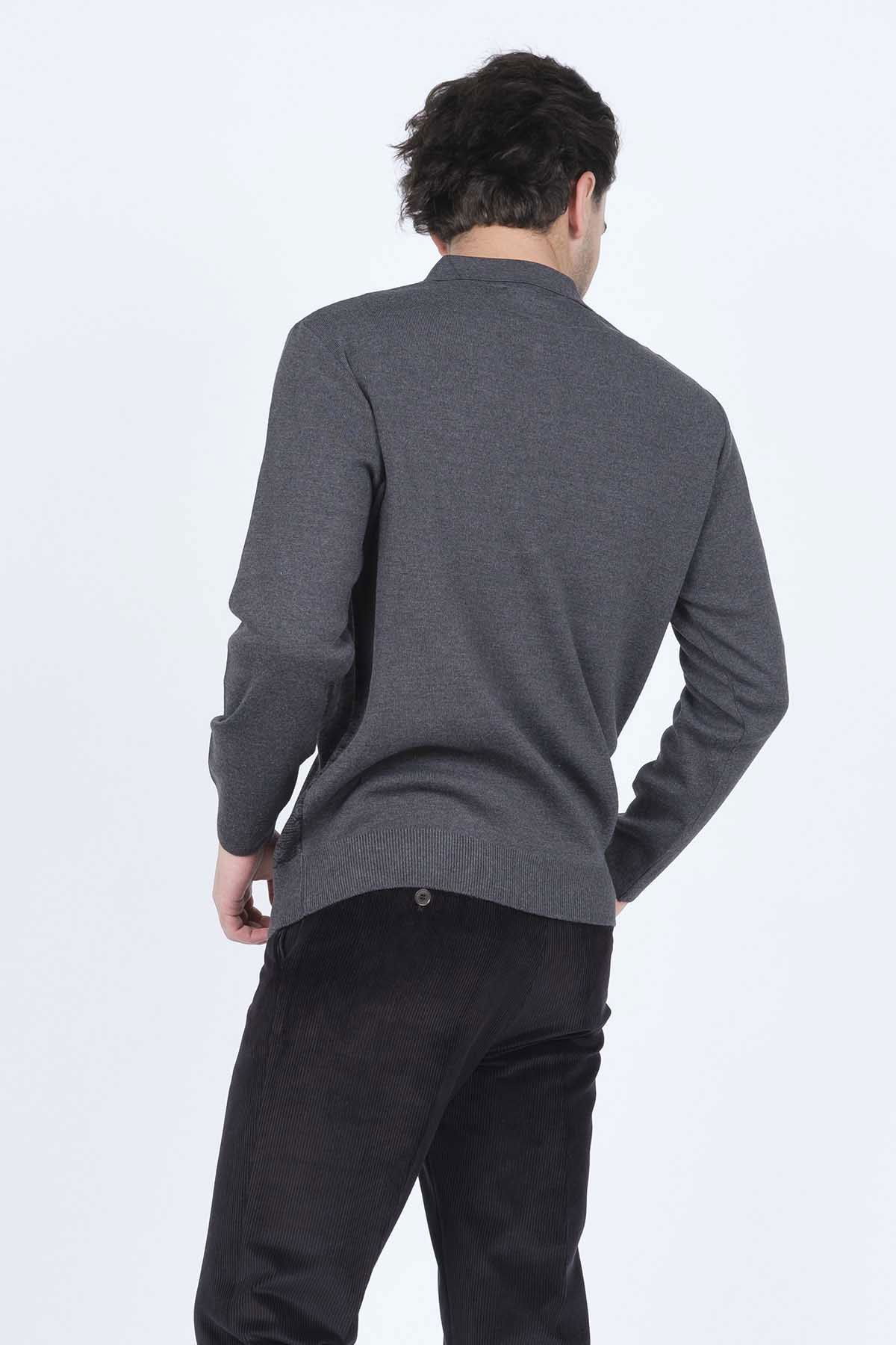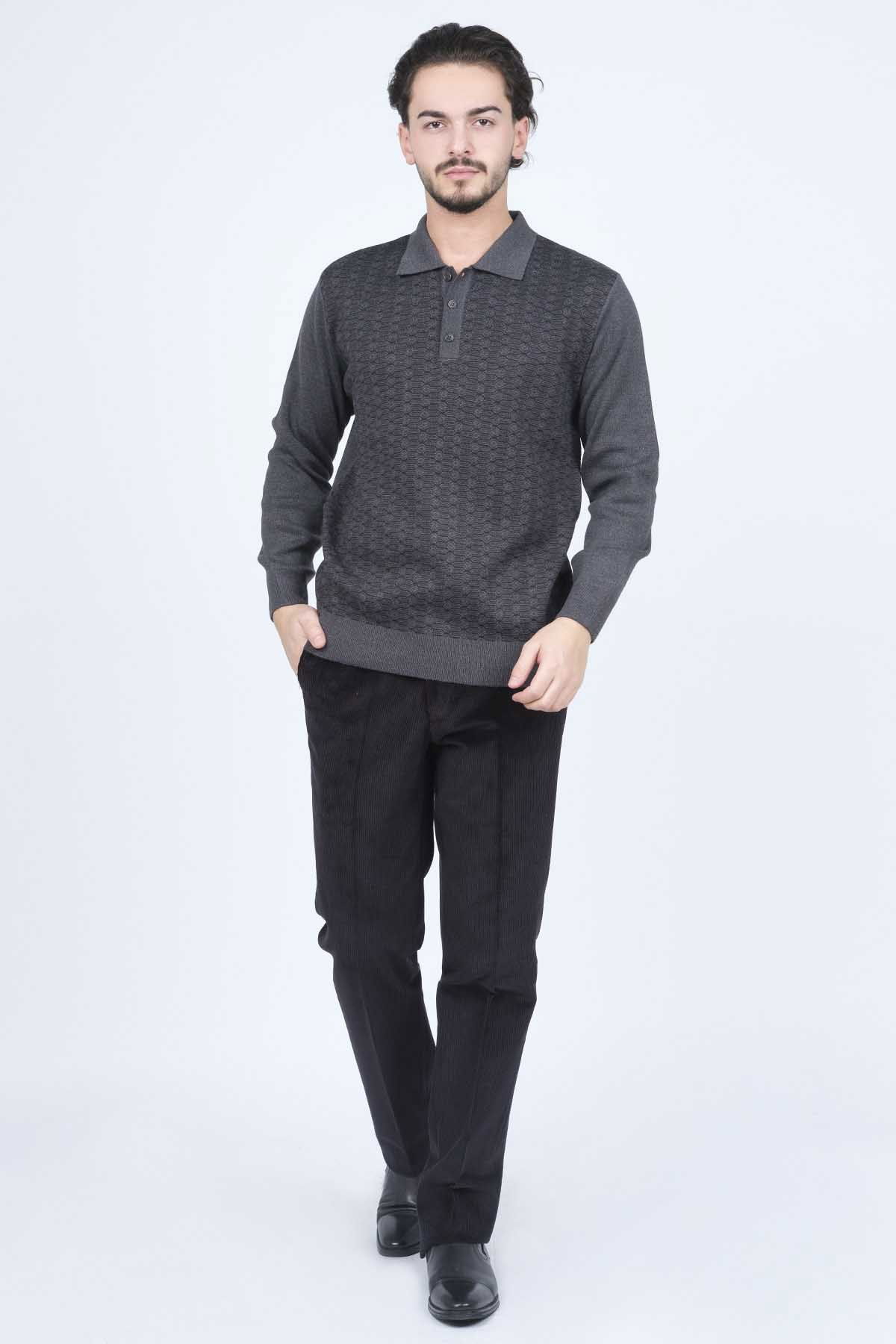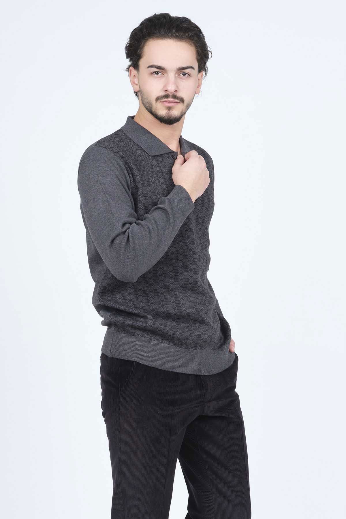 Ateş Triko Erkek Polo Yaka Desenli Yün Kazak 6092073 Koyu Gri