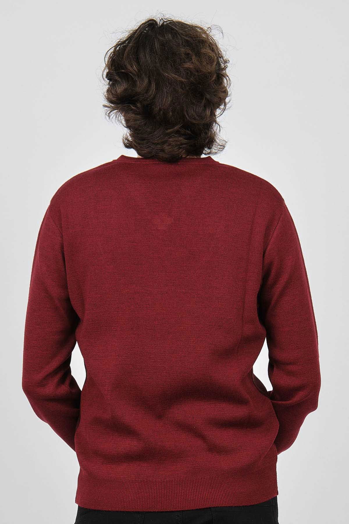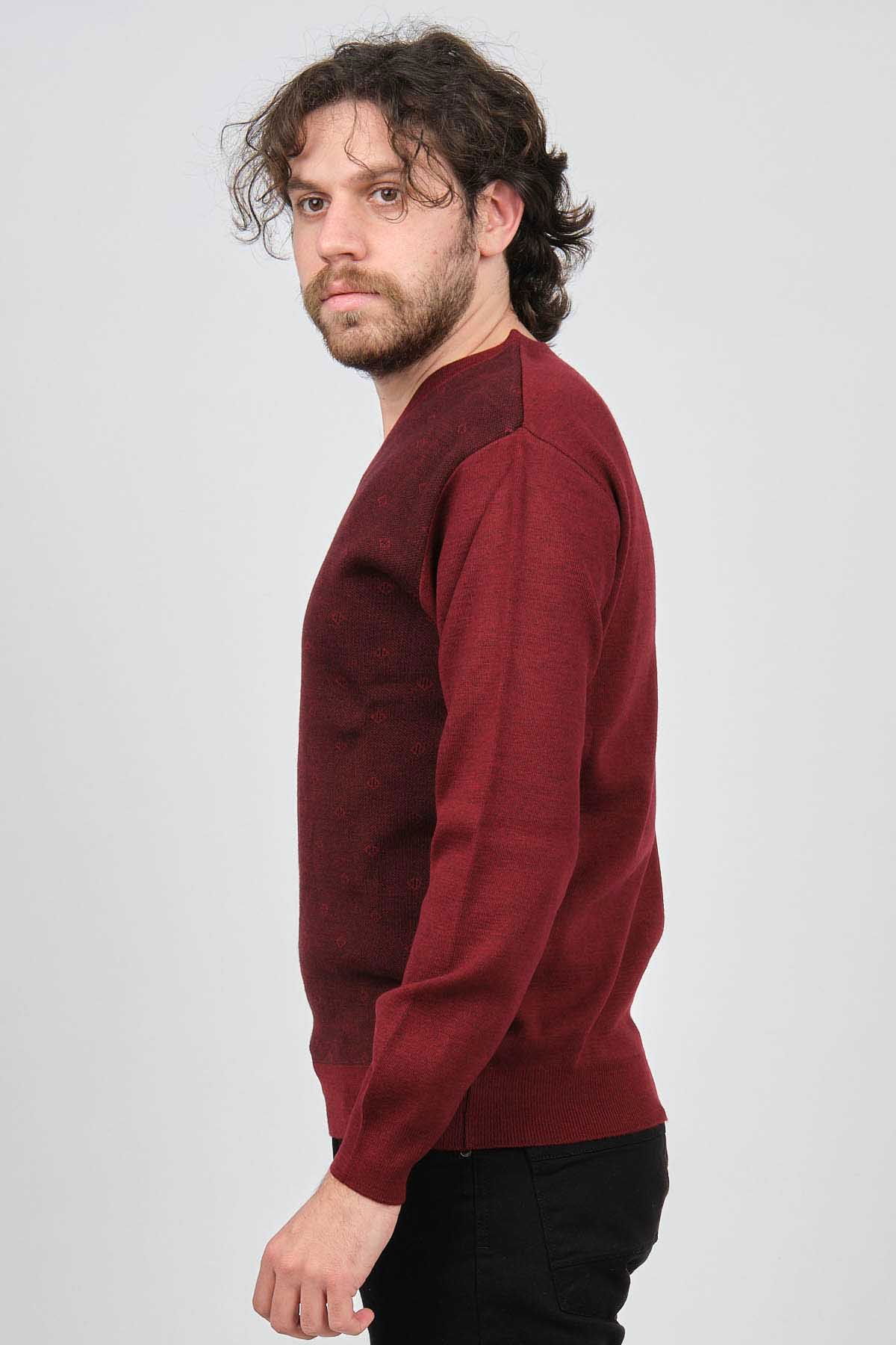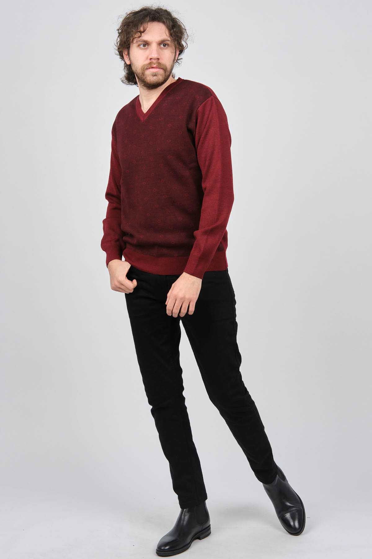 Ateş Triko Erkek V Yaka Desenli Yün Kazak 6091746 Bordo