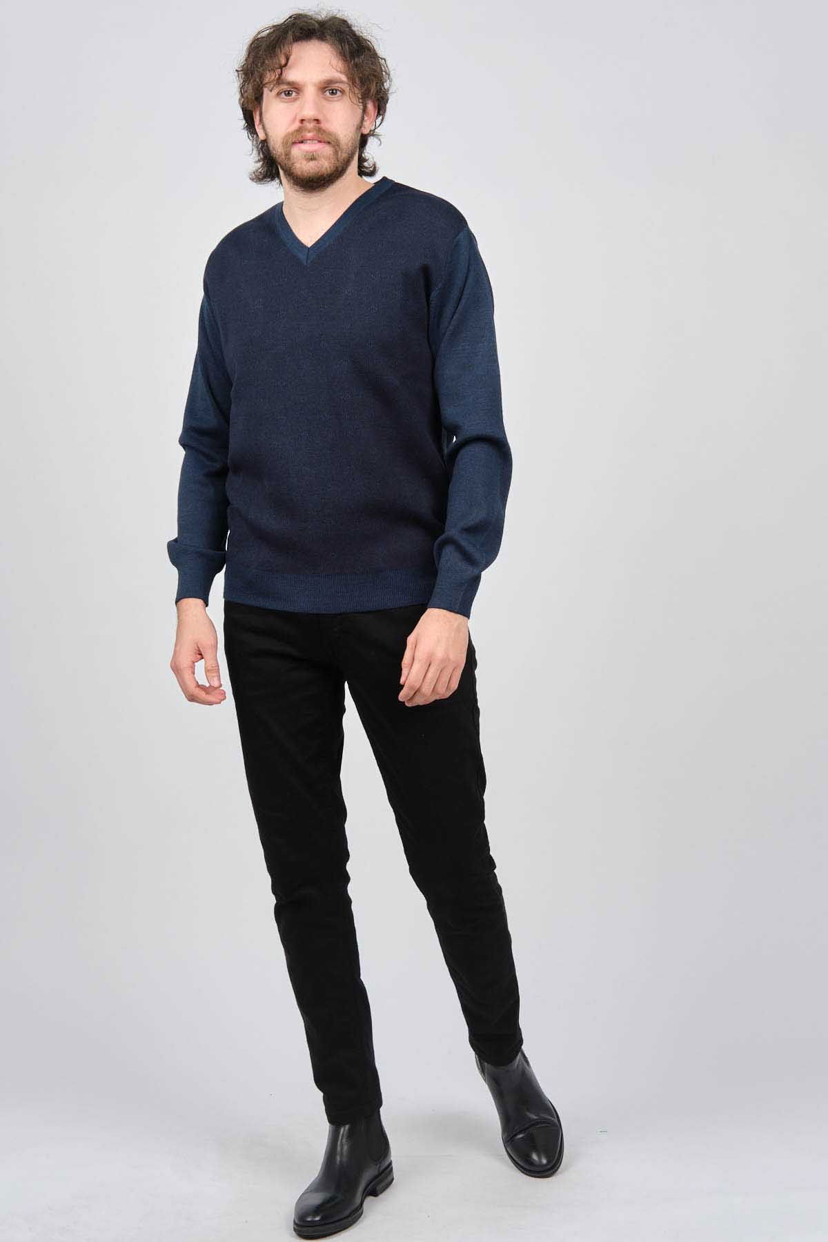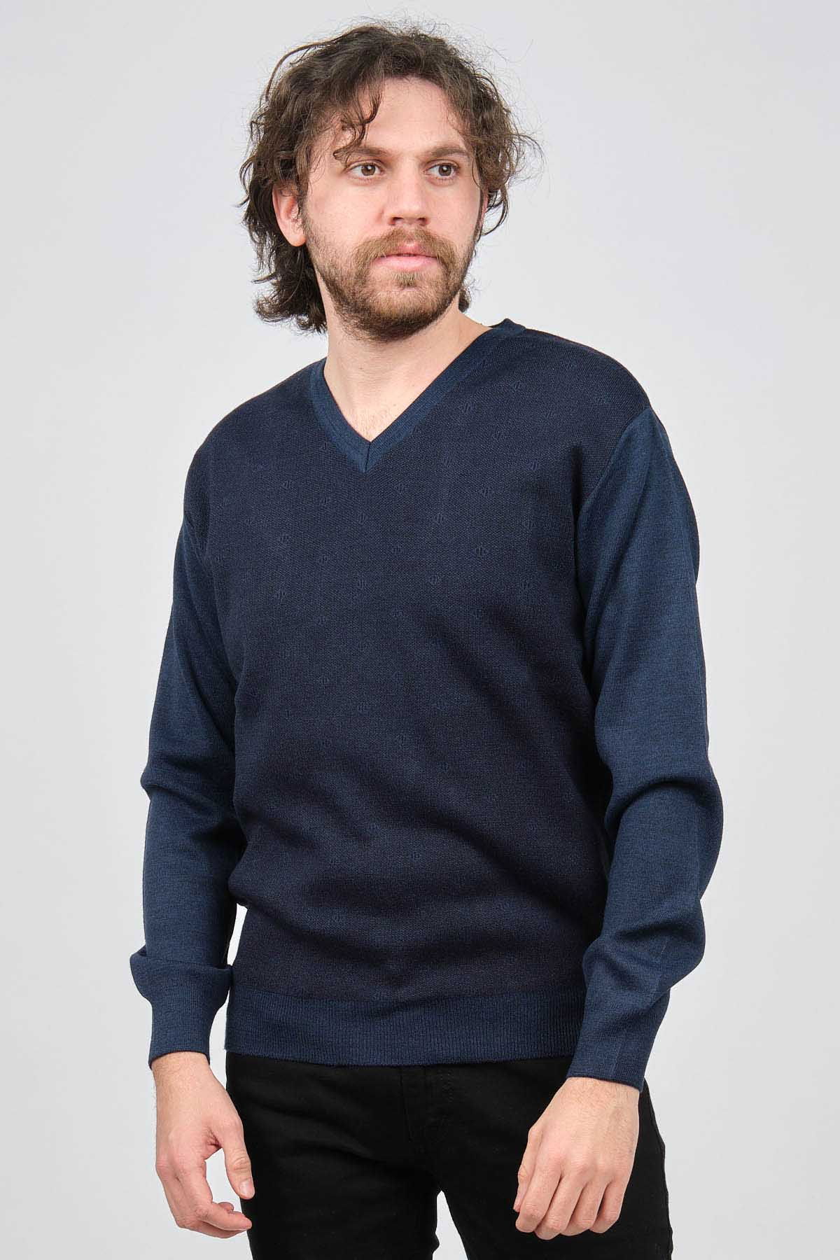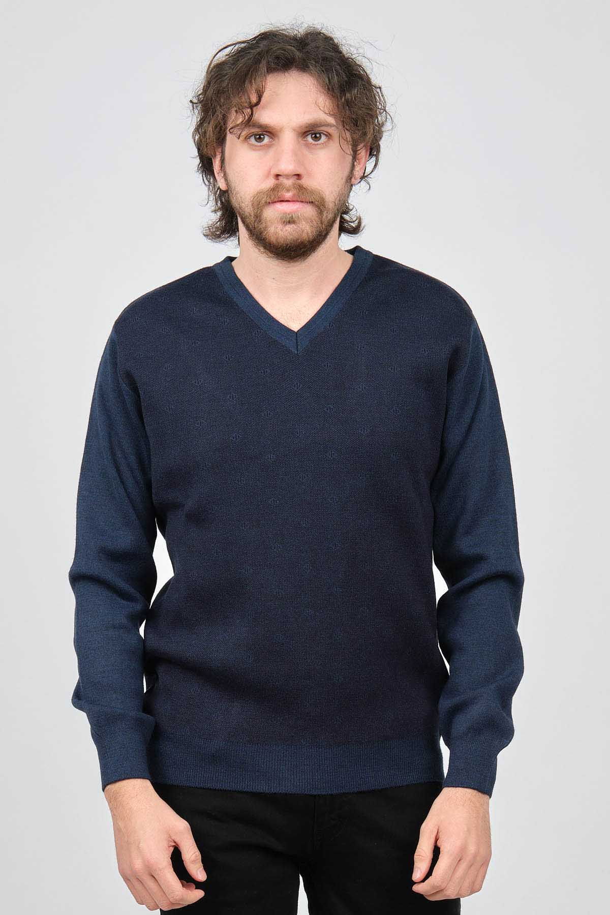 Ateş Triko Erkek V Yaka Desenli Yün Kazak 6091746 Indigo