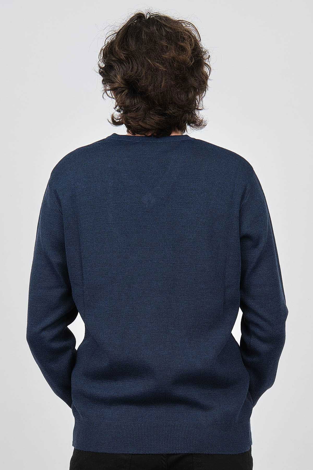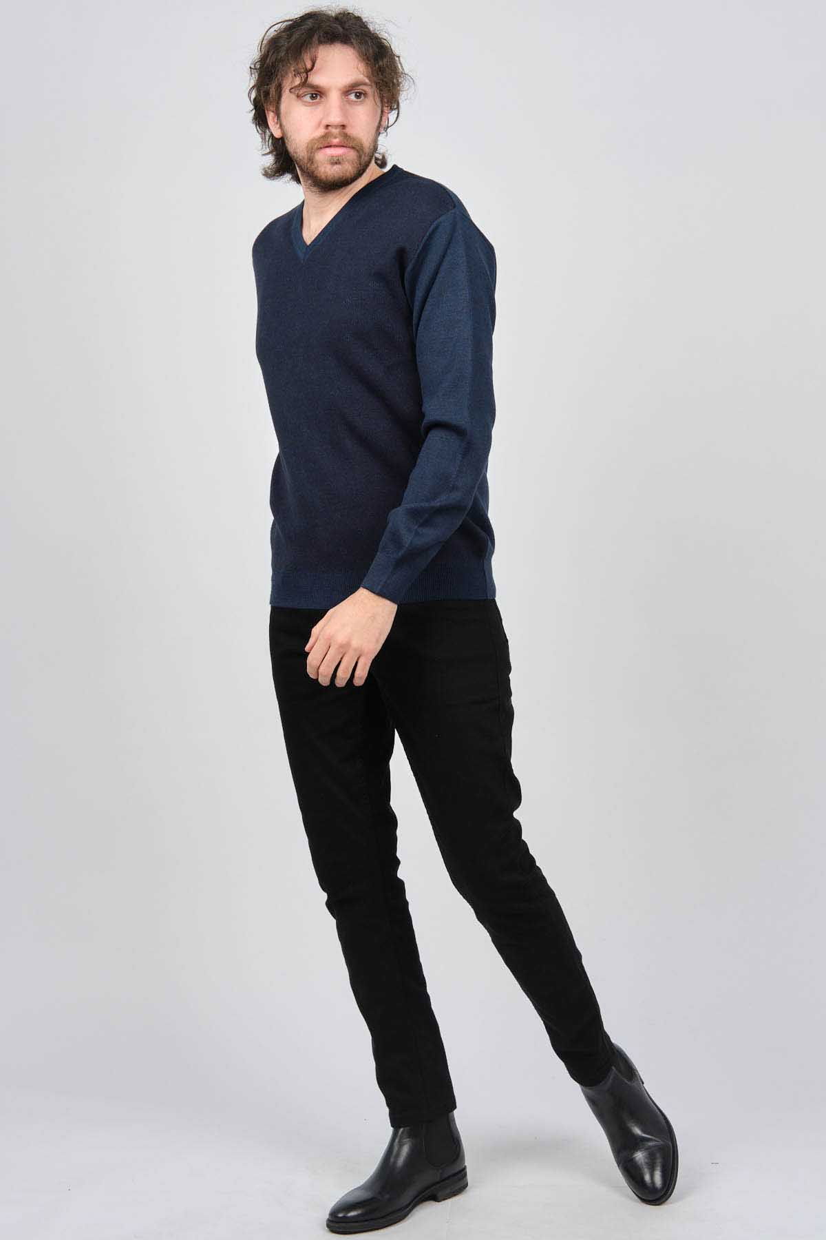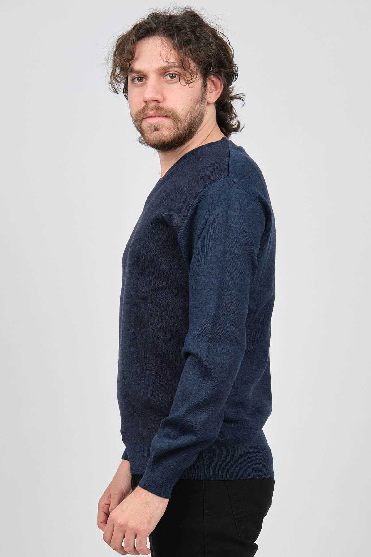 Ateş Triko Erkek V Yaka Desenli Yün Kazak 6091746 Indigo