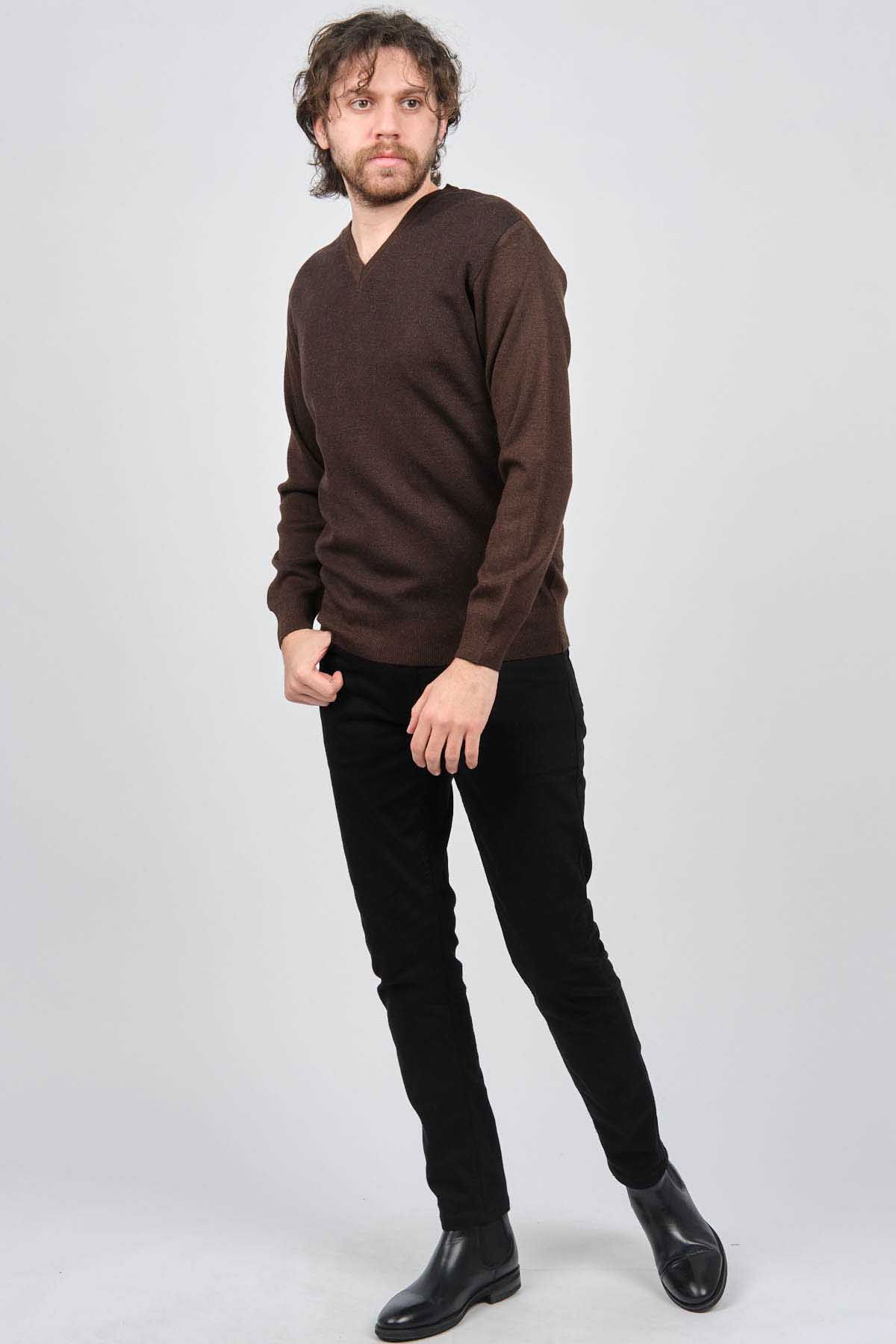 Detay: V yaka, Önü desenli, Uzun kollu, Yün kazak;