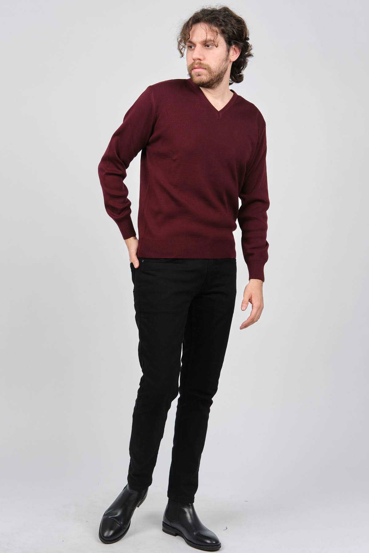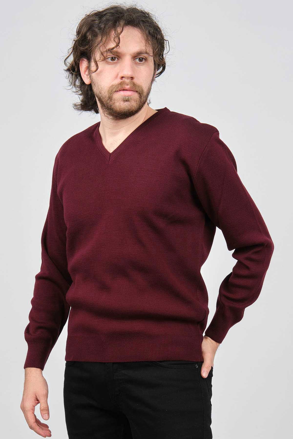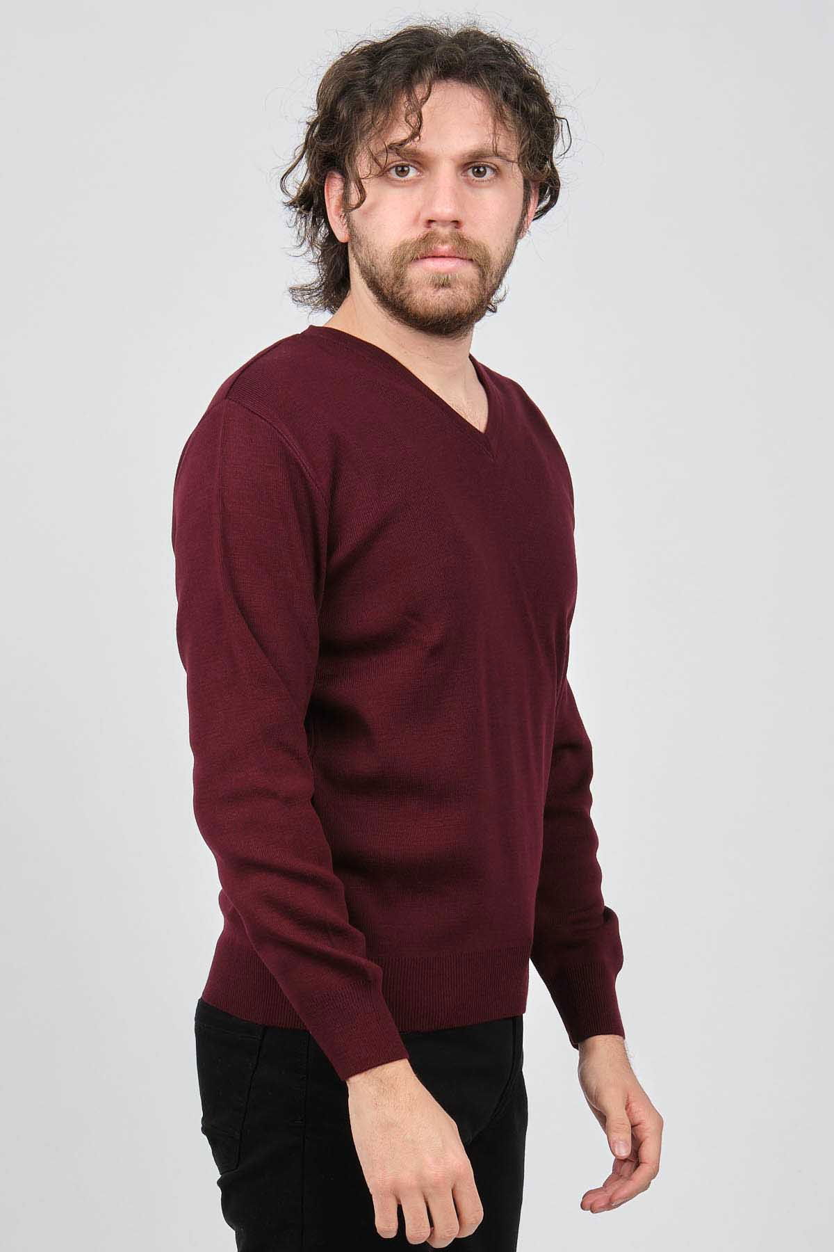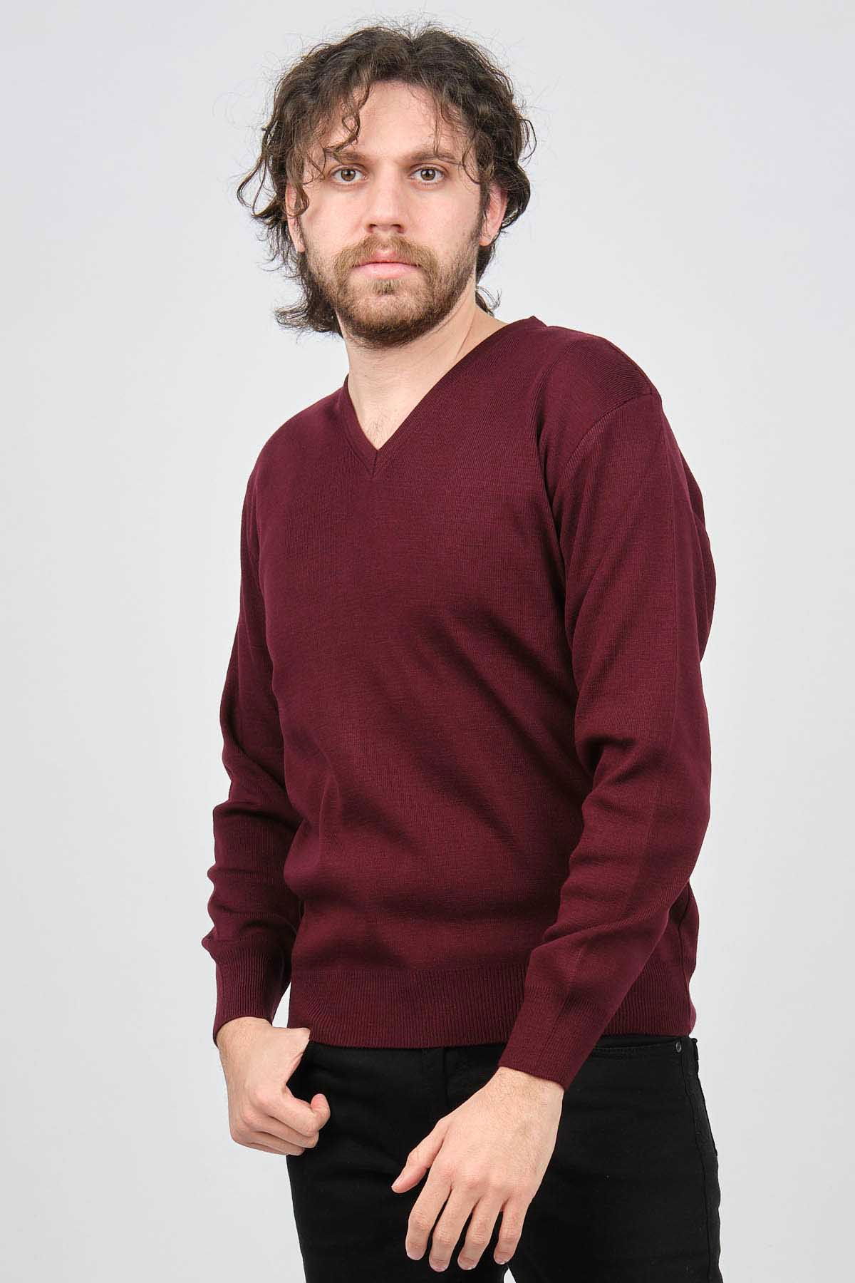 Detay: V yaka, Uzun kollu, Düz kazak;