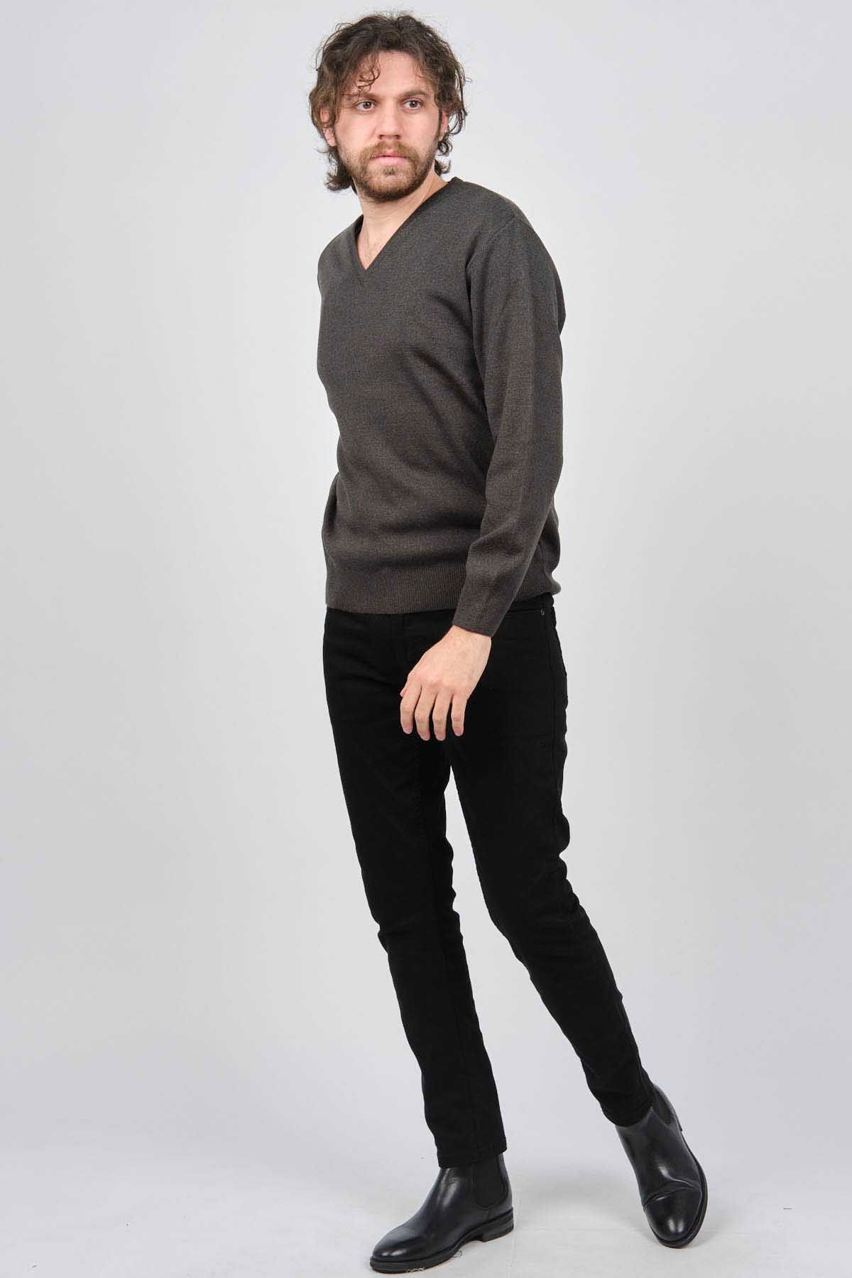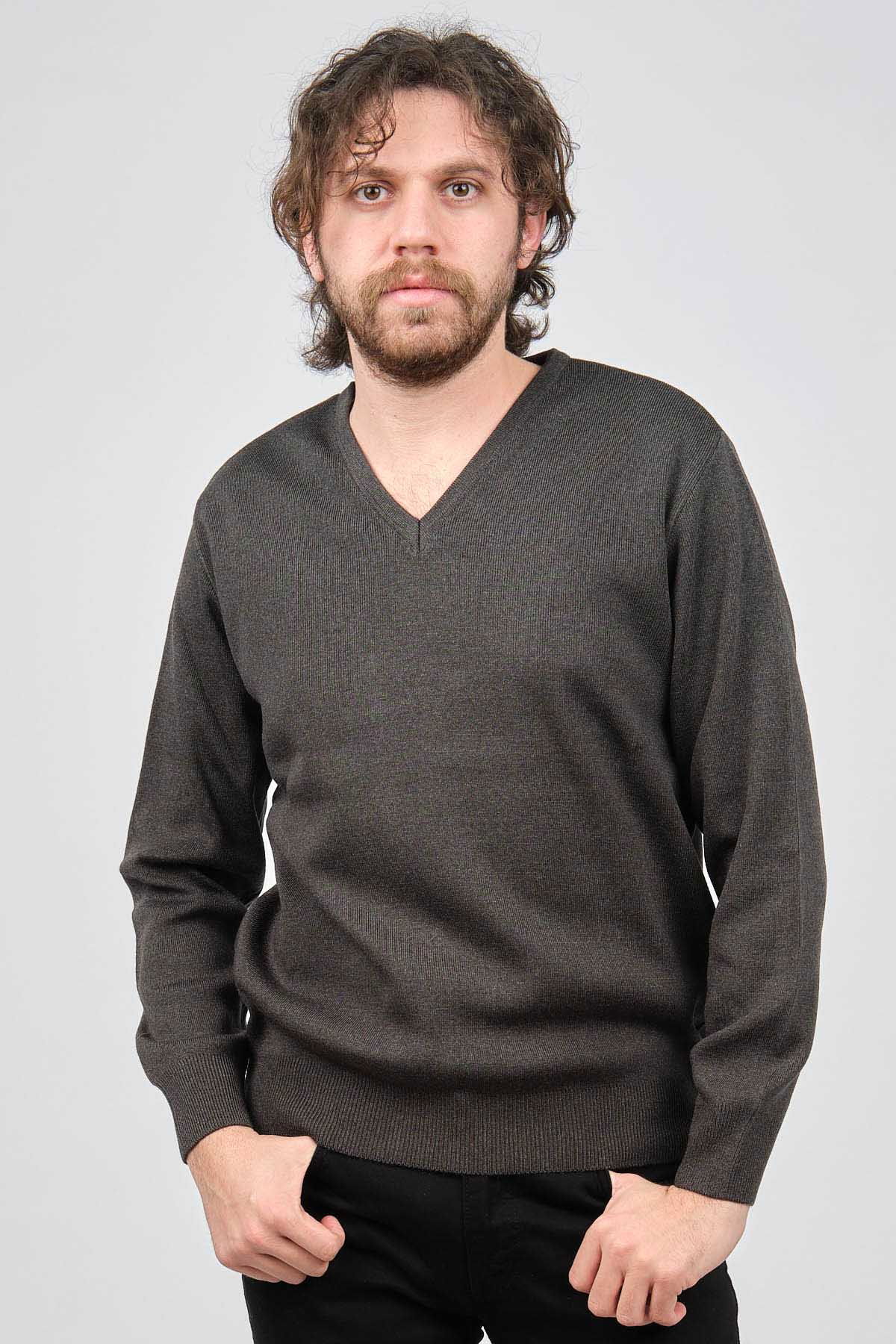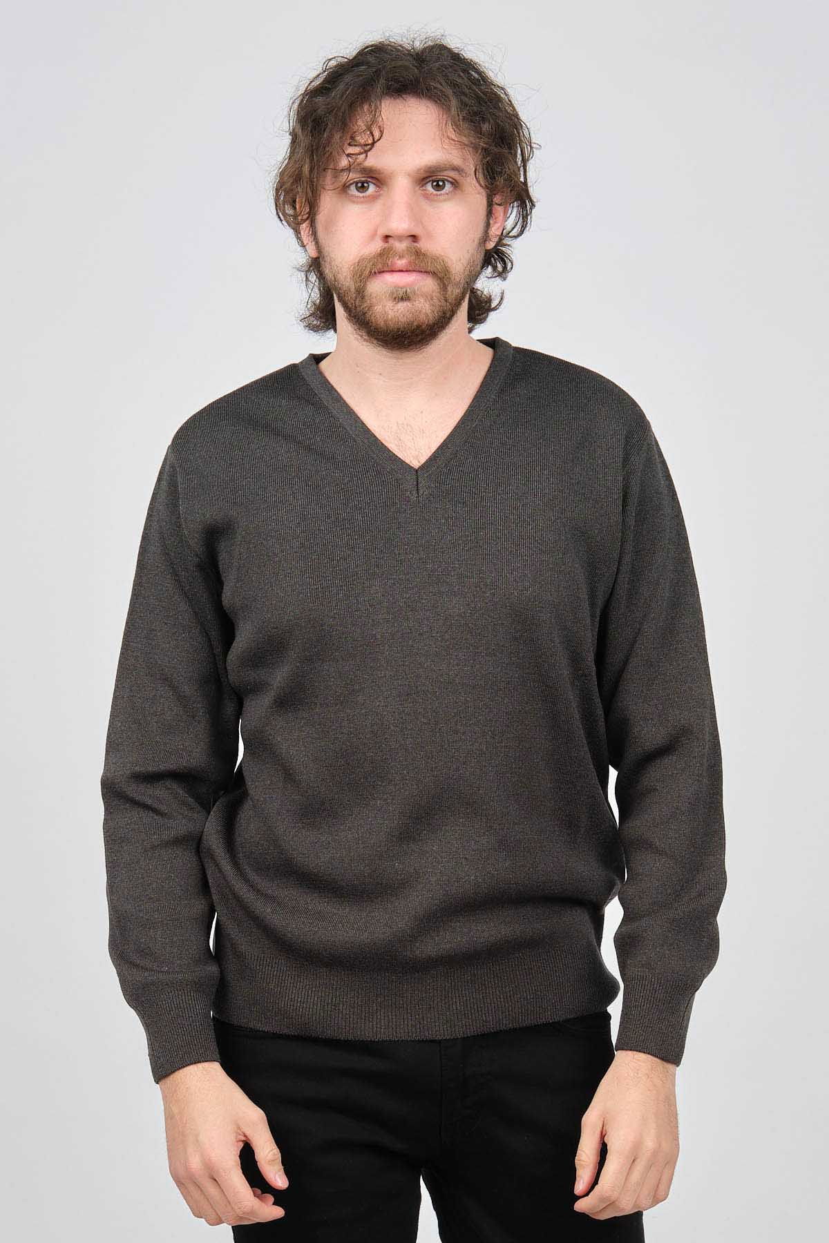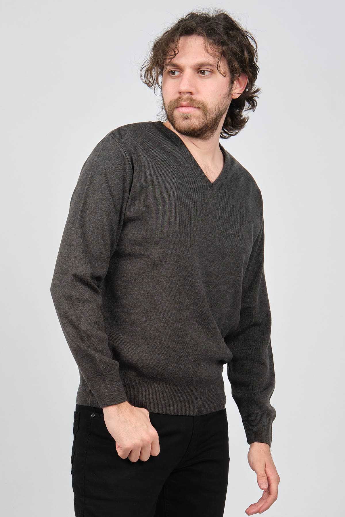 Ateş Triko Erkek V Yaka Düz Kazak 6091026 Füme