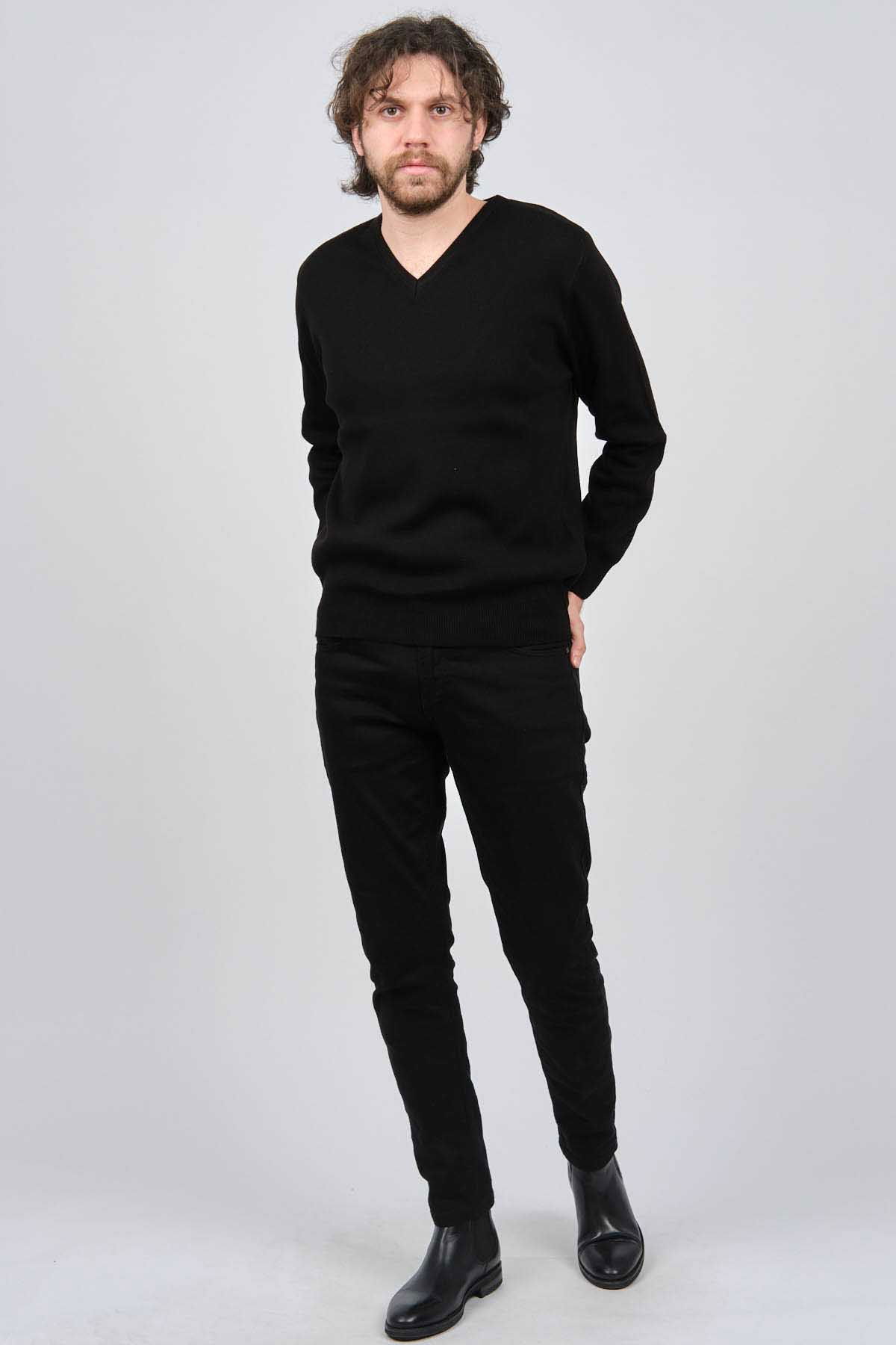 Ateş Triko Erkek V Yaka Düz Kazak 6091026 Siyah