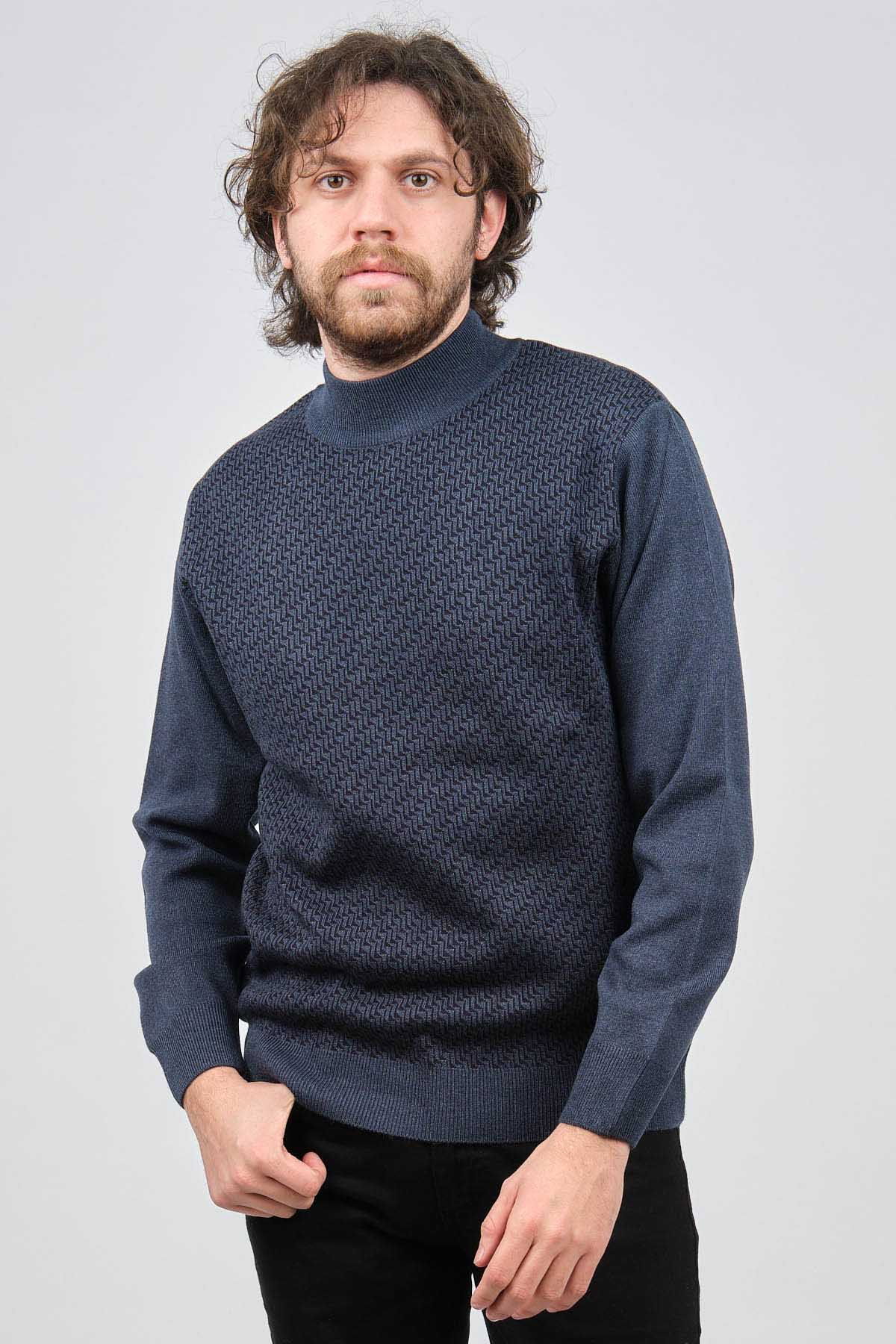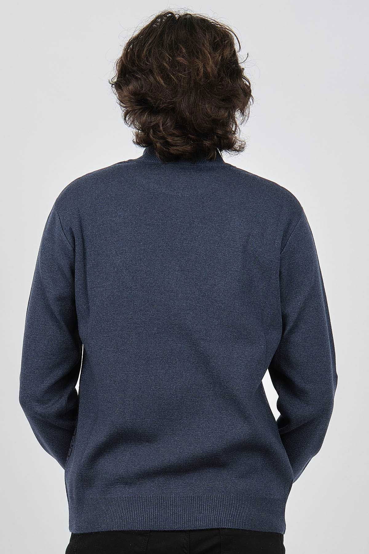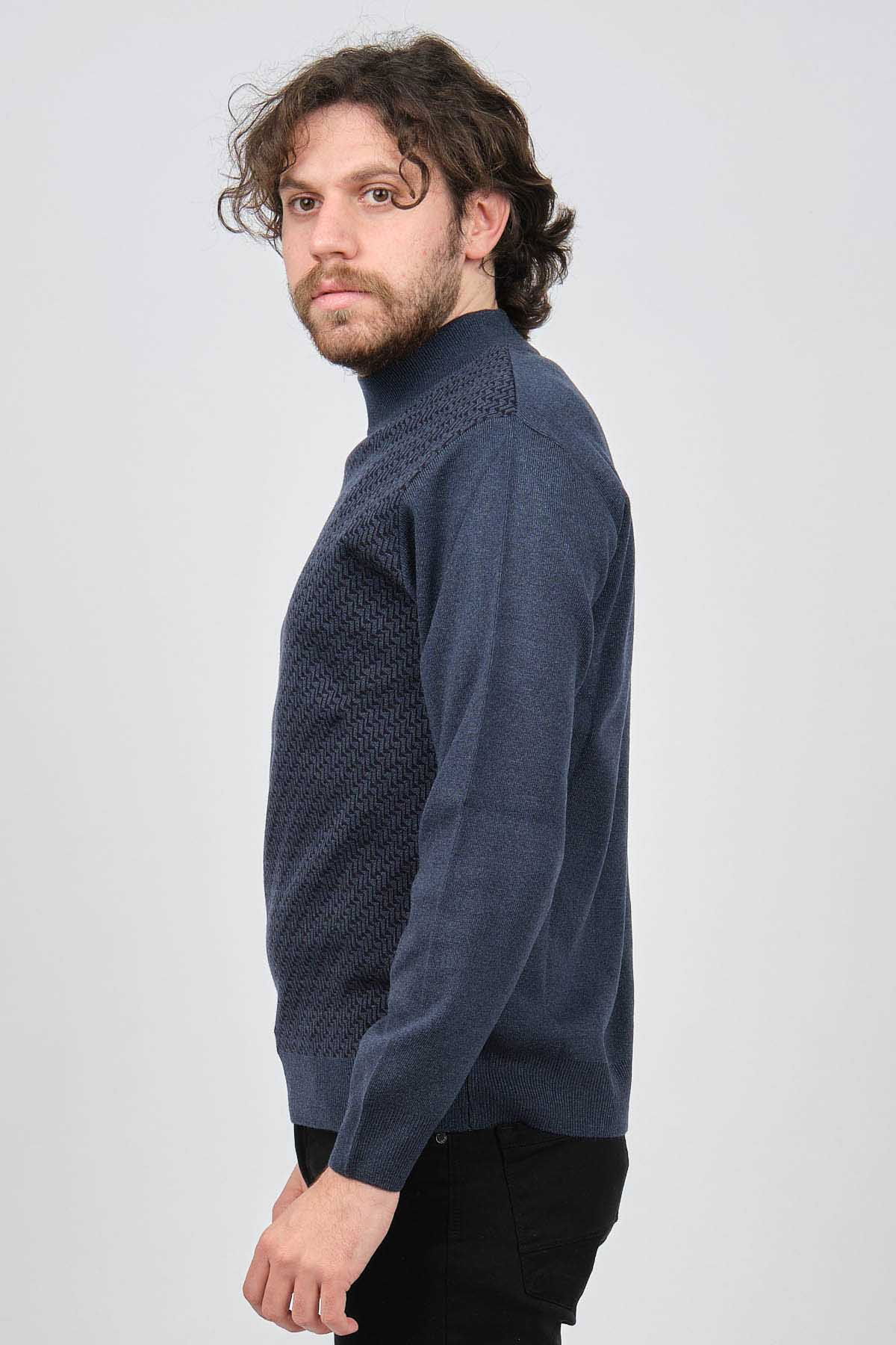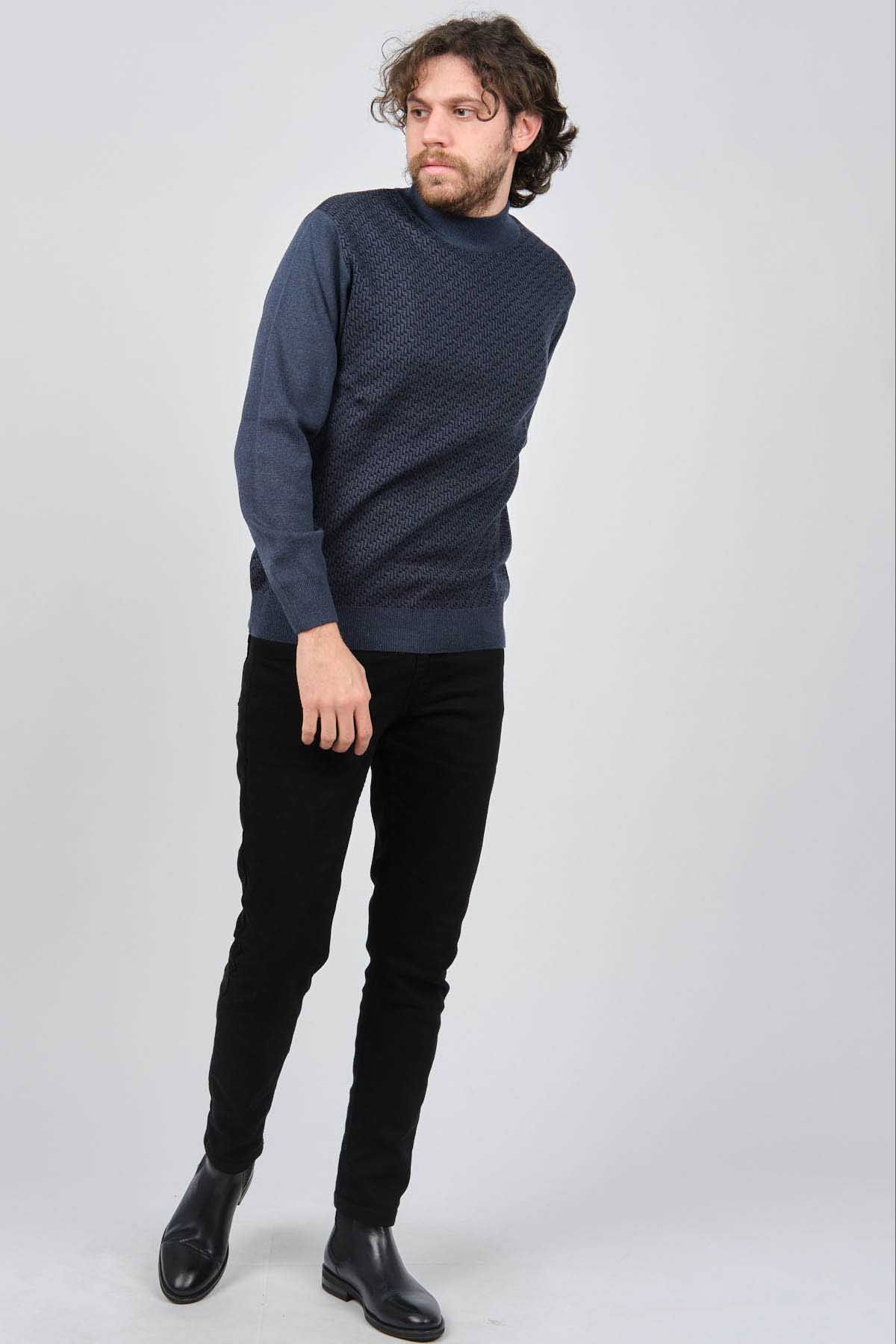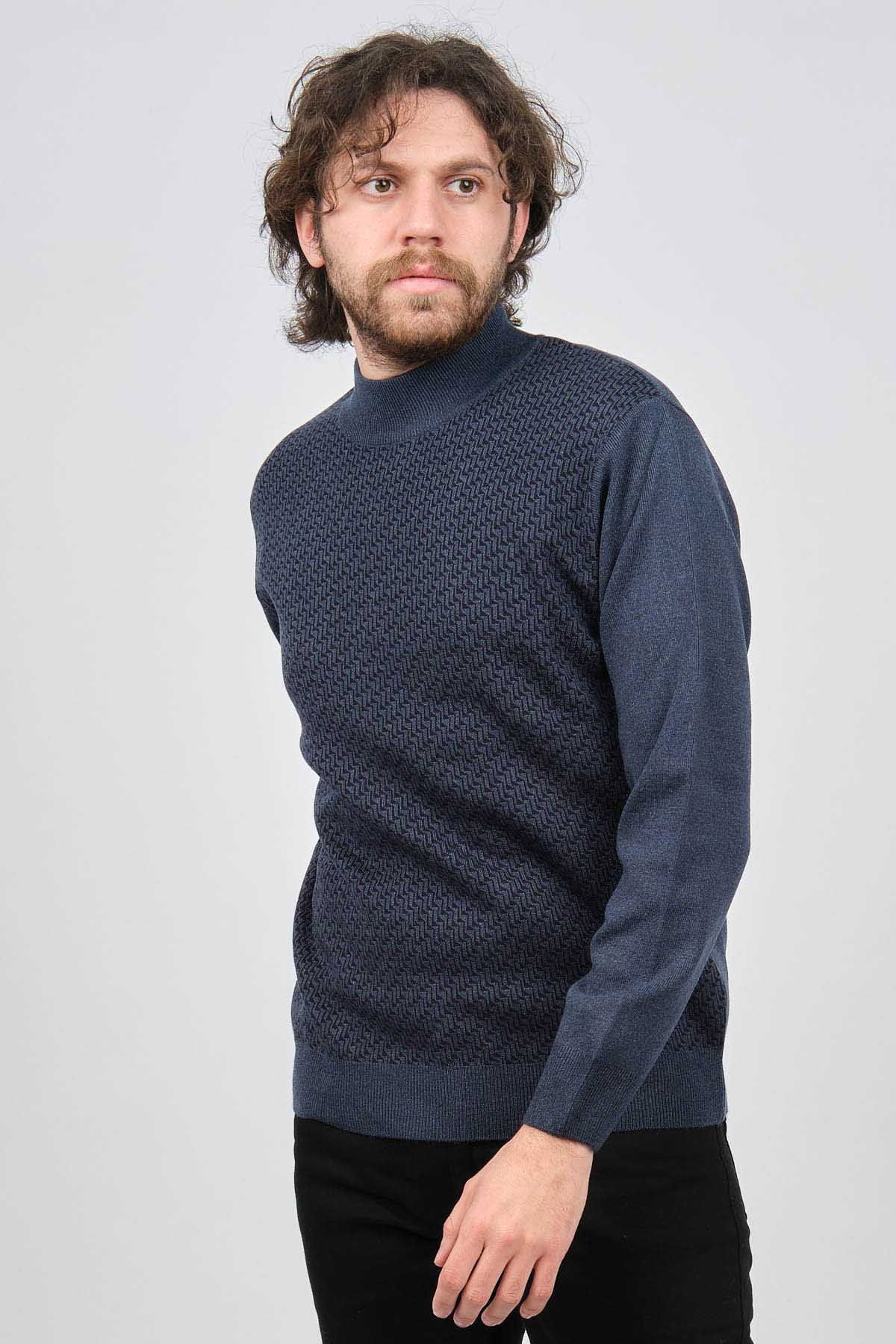Ateş Triko Erkek Yarım Balıkçı Desenli Yün Kazak 60912086 Indigo