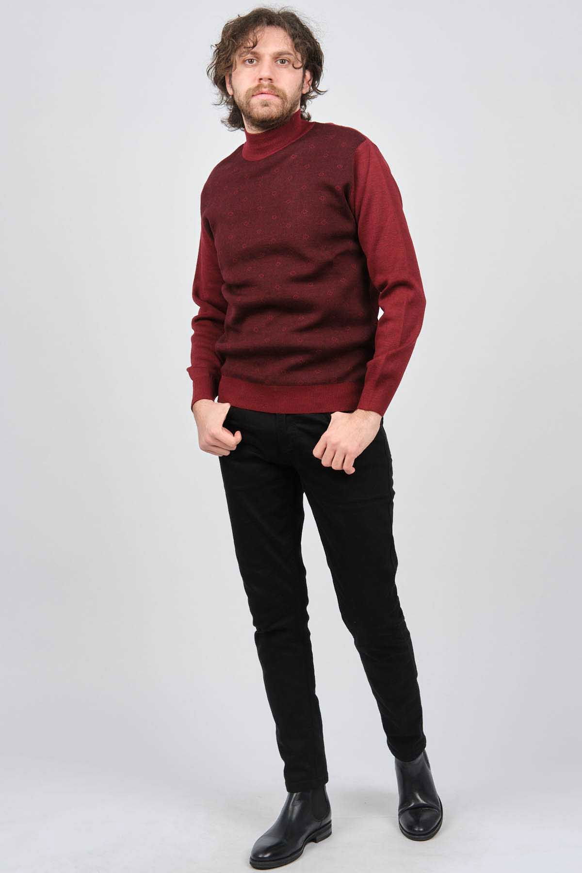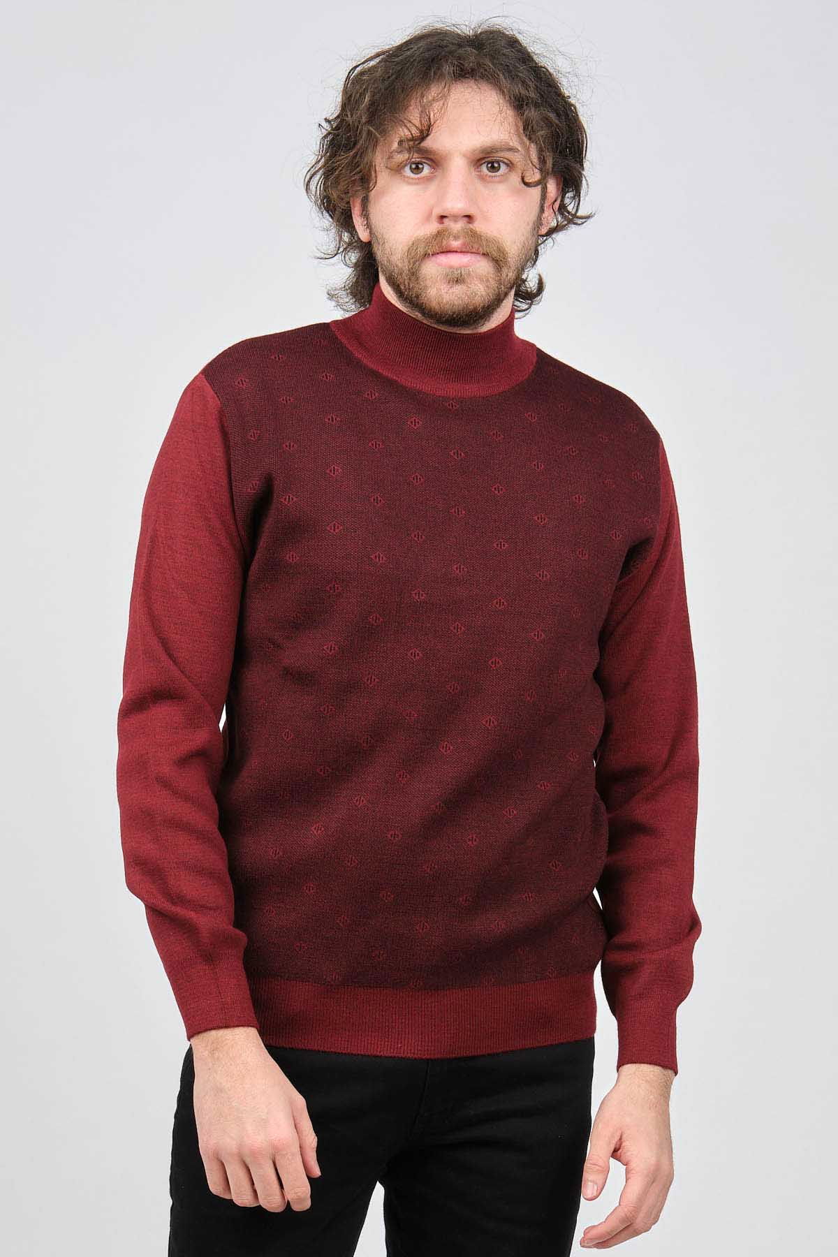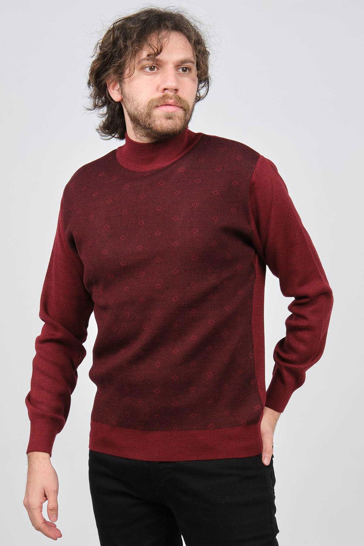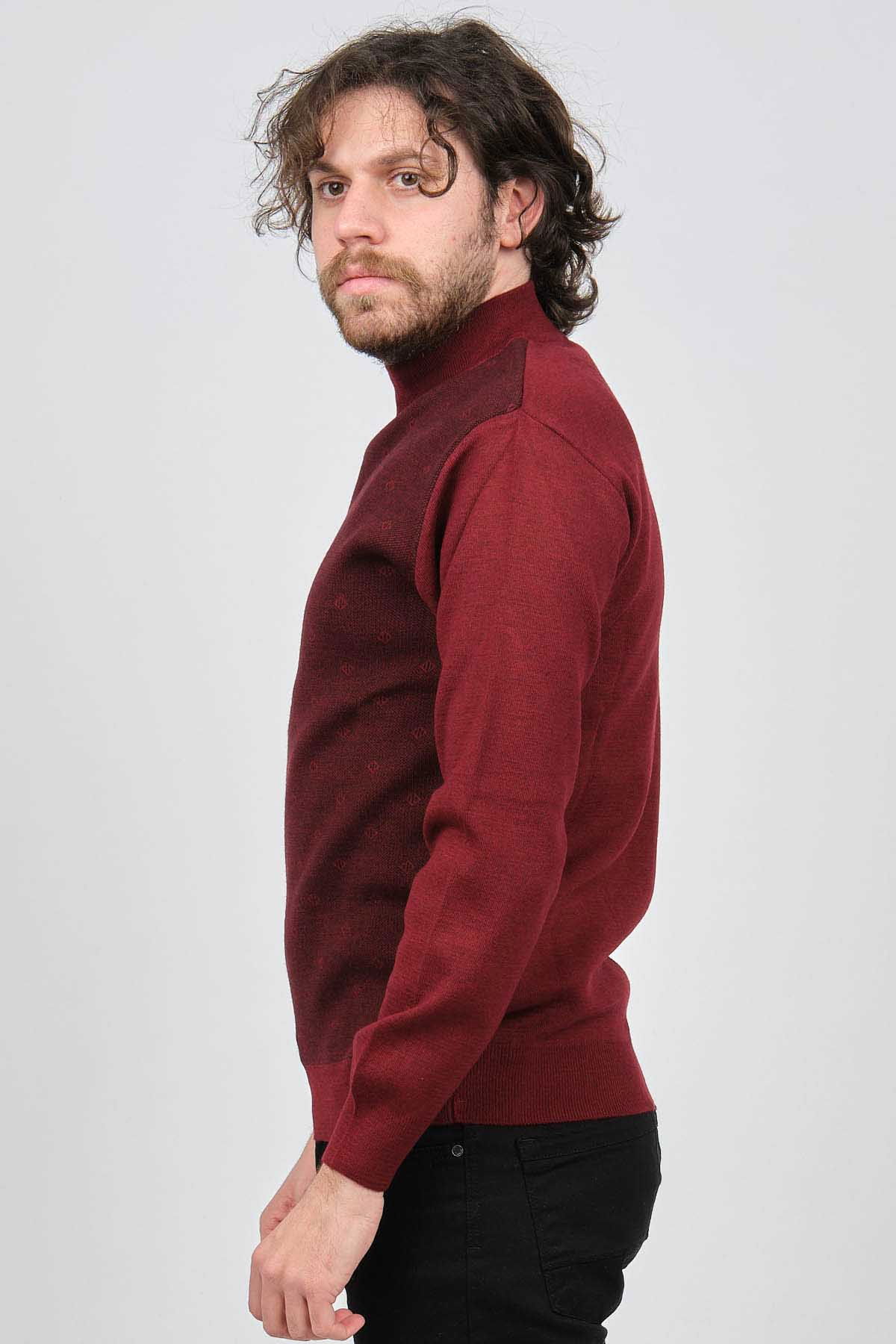 Ateş Triko Erkek Yarım Balıkçı Desenli Yün Kazak 6091744 Bordo
