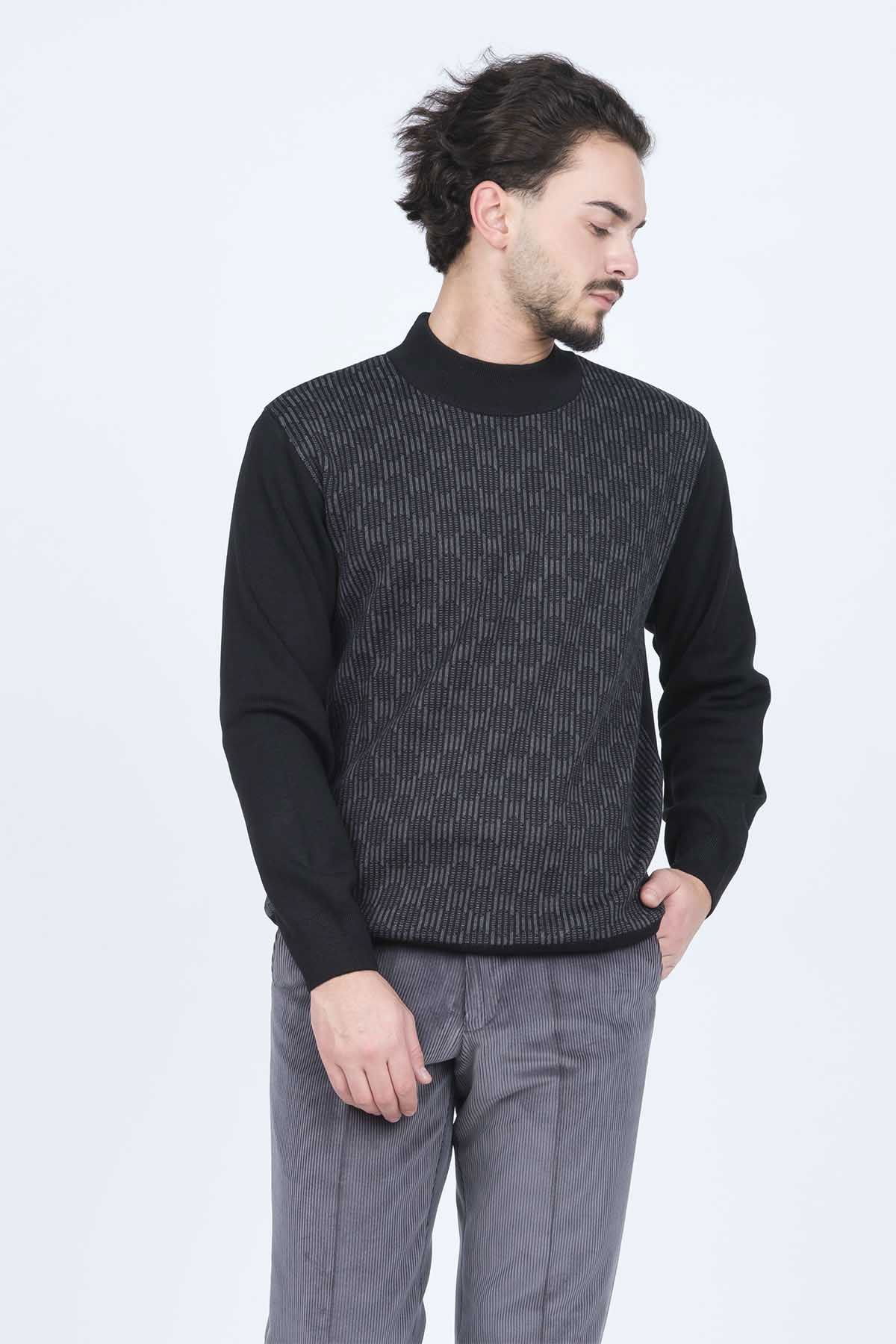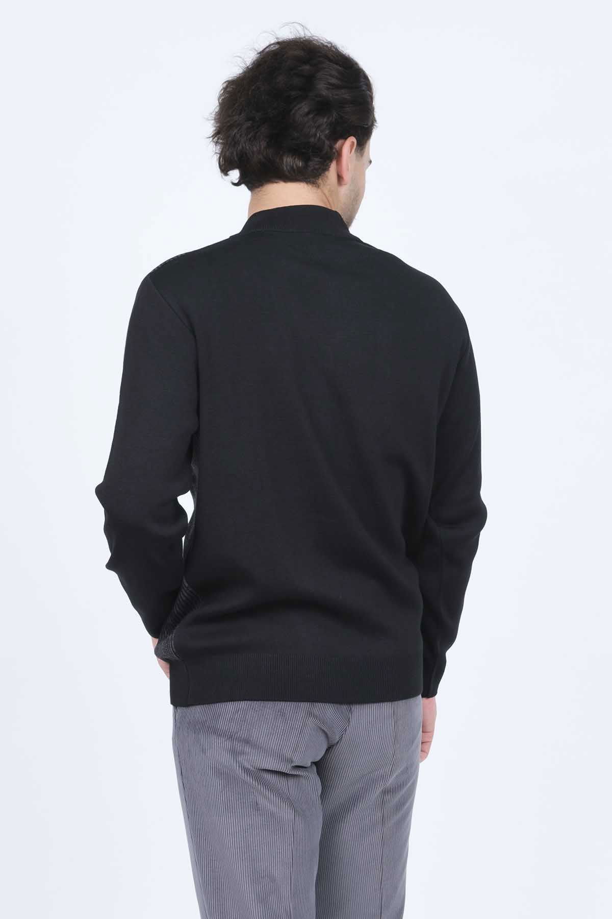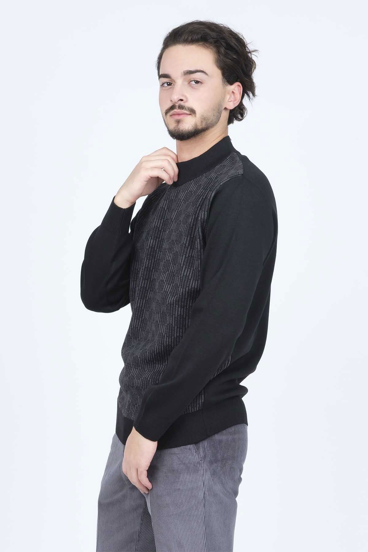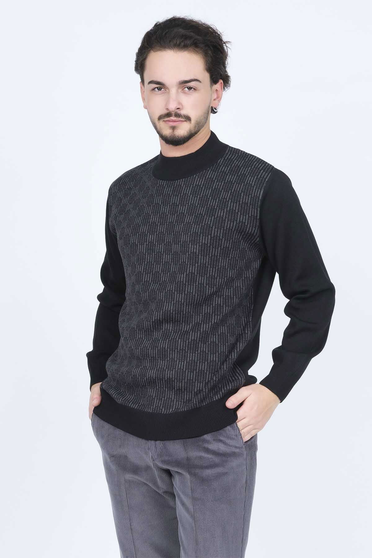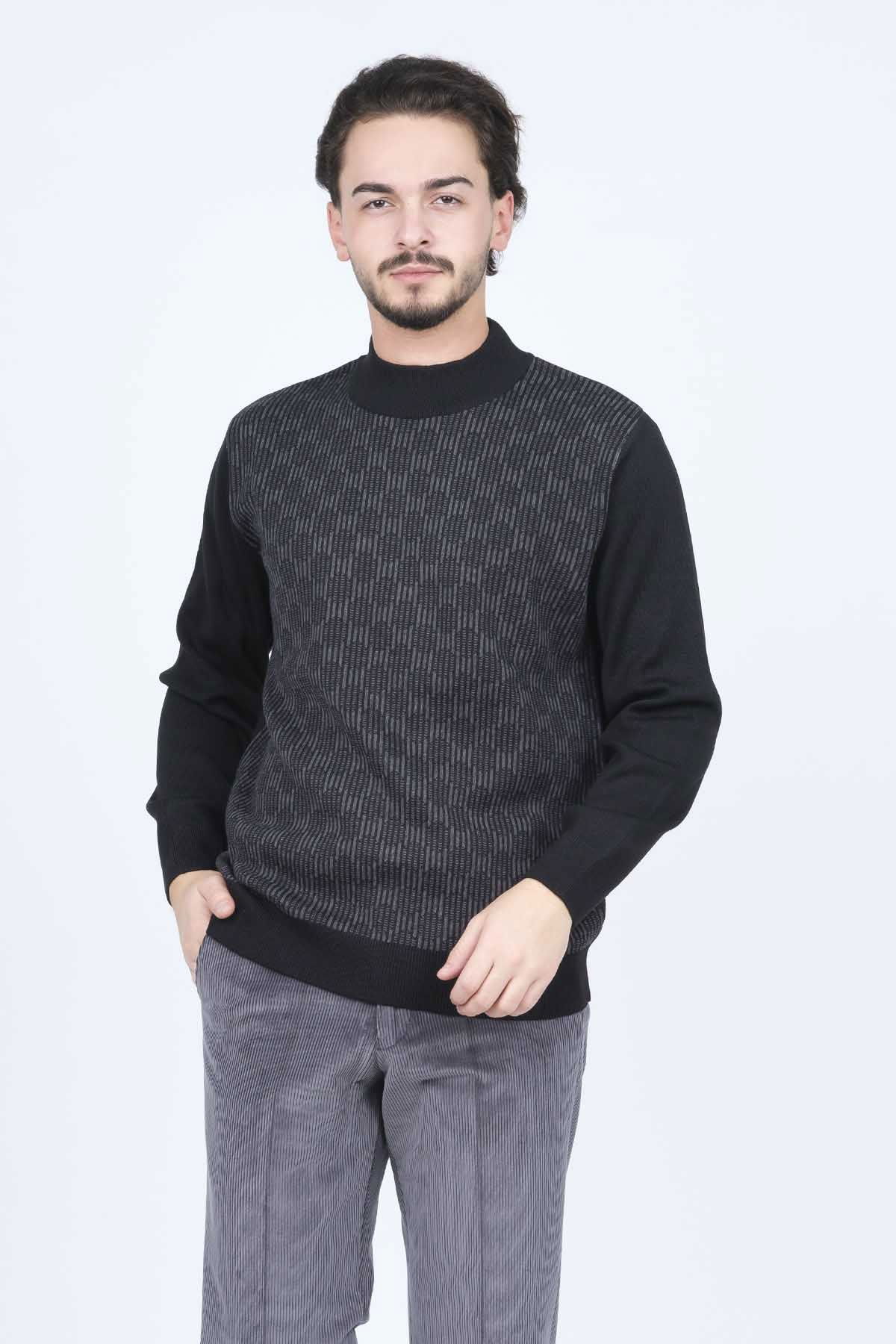 Ateş Triko Erkek Yarım Balıkçı Desenli Yün Kazak 6092064 Siyah
