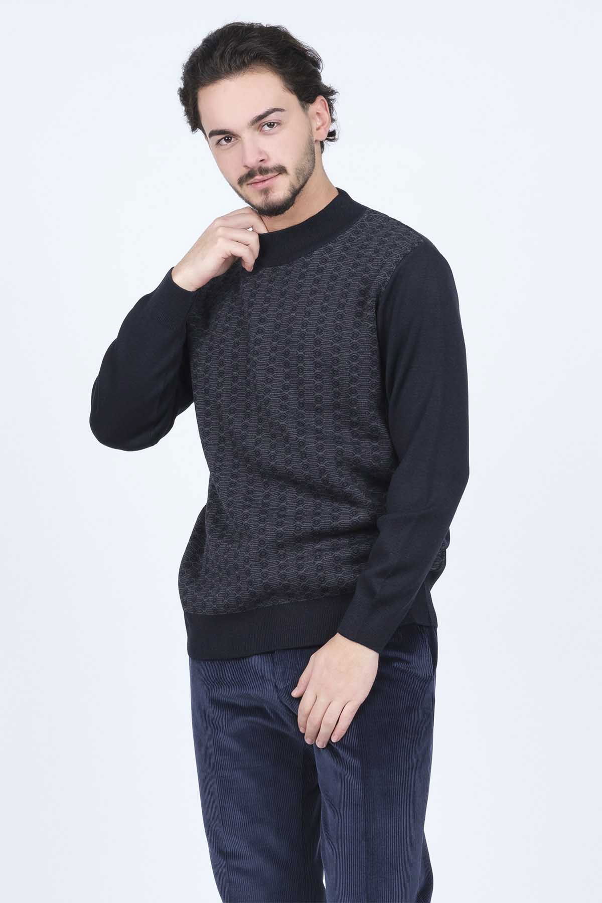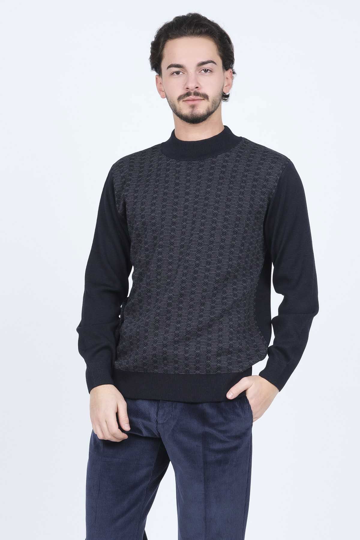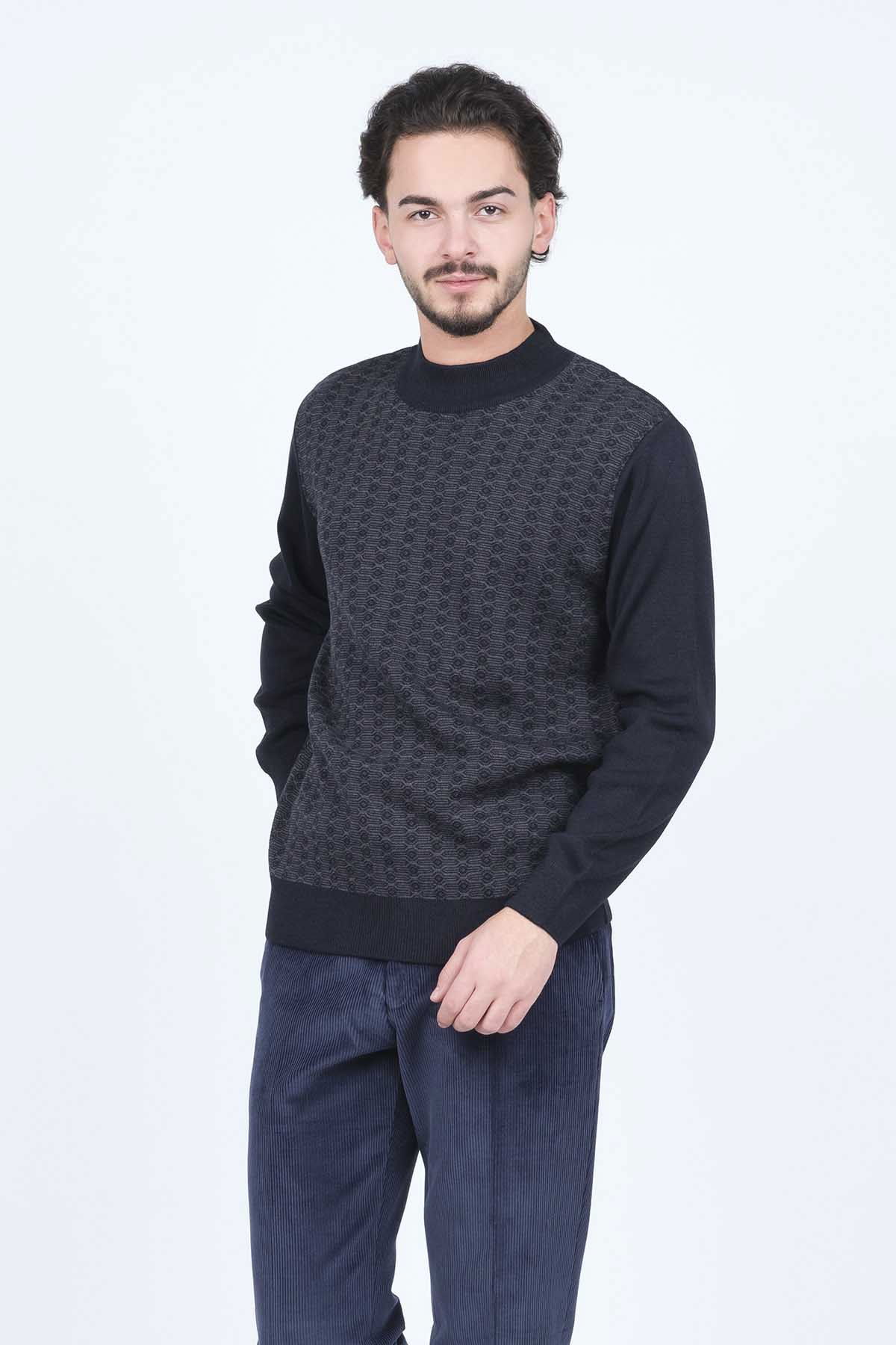 Detay: Desenli, yarım balıkçı yaka, yün kazak;