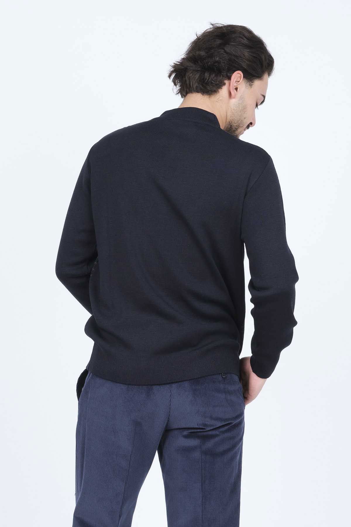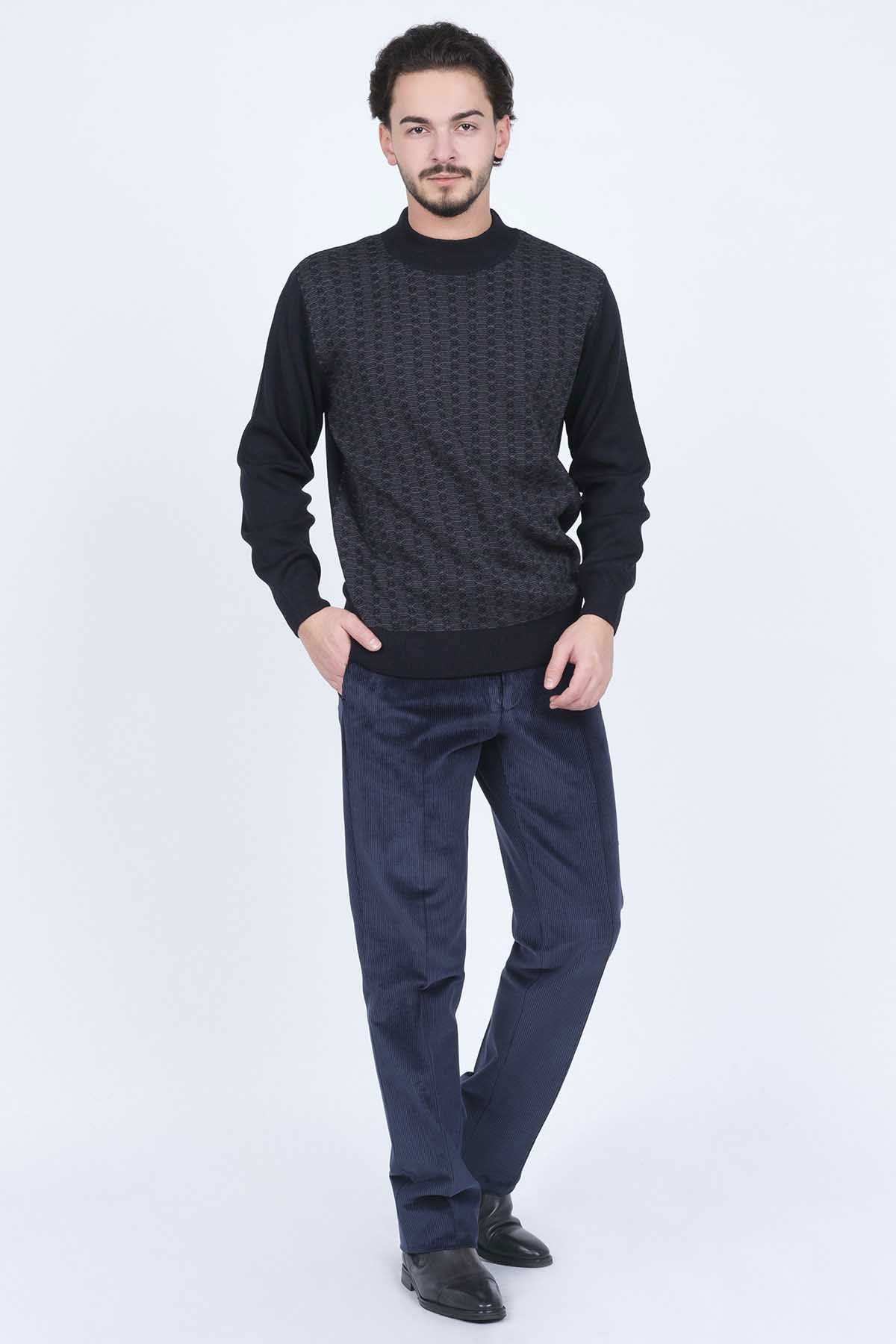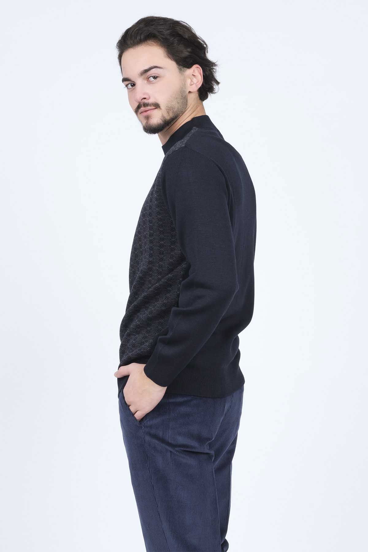 Detay: Desenli, yarım balıkçı yaka, yün kazak;