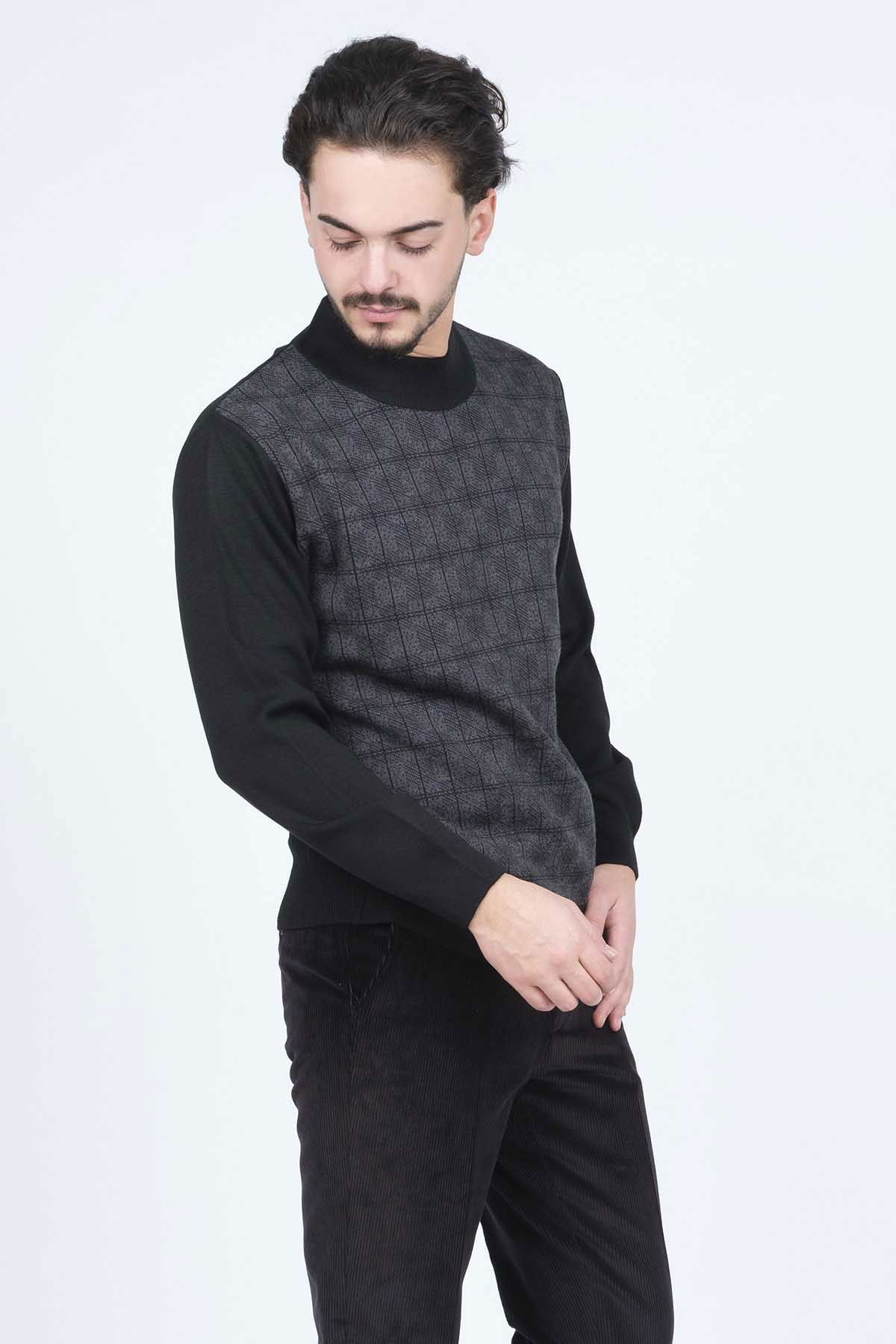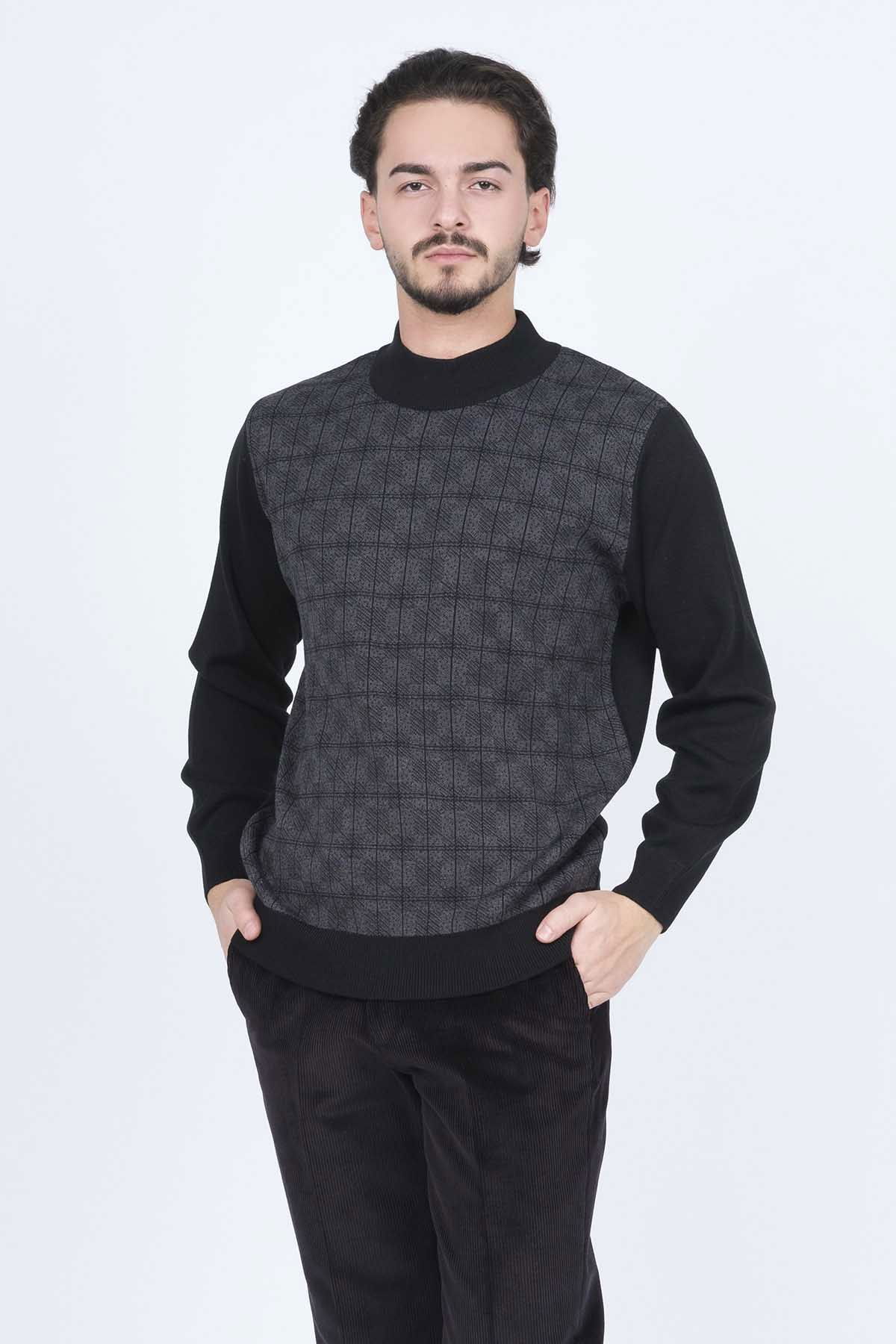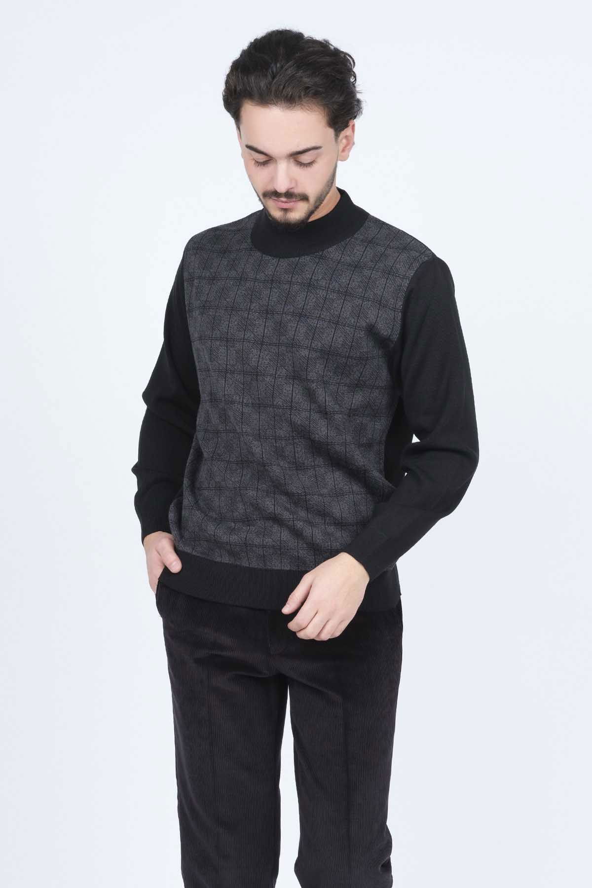 Ateş Triko Erkek Yarım Balıkçı Desenli Yün Kazak 6092524 Siyah