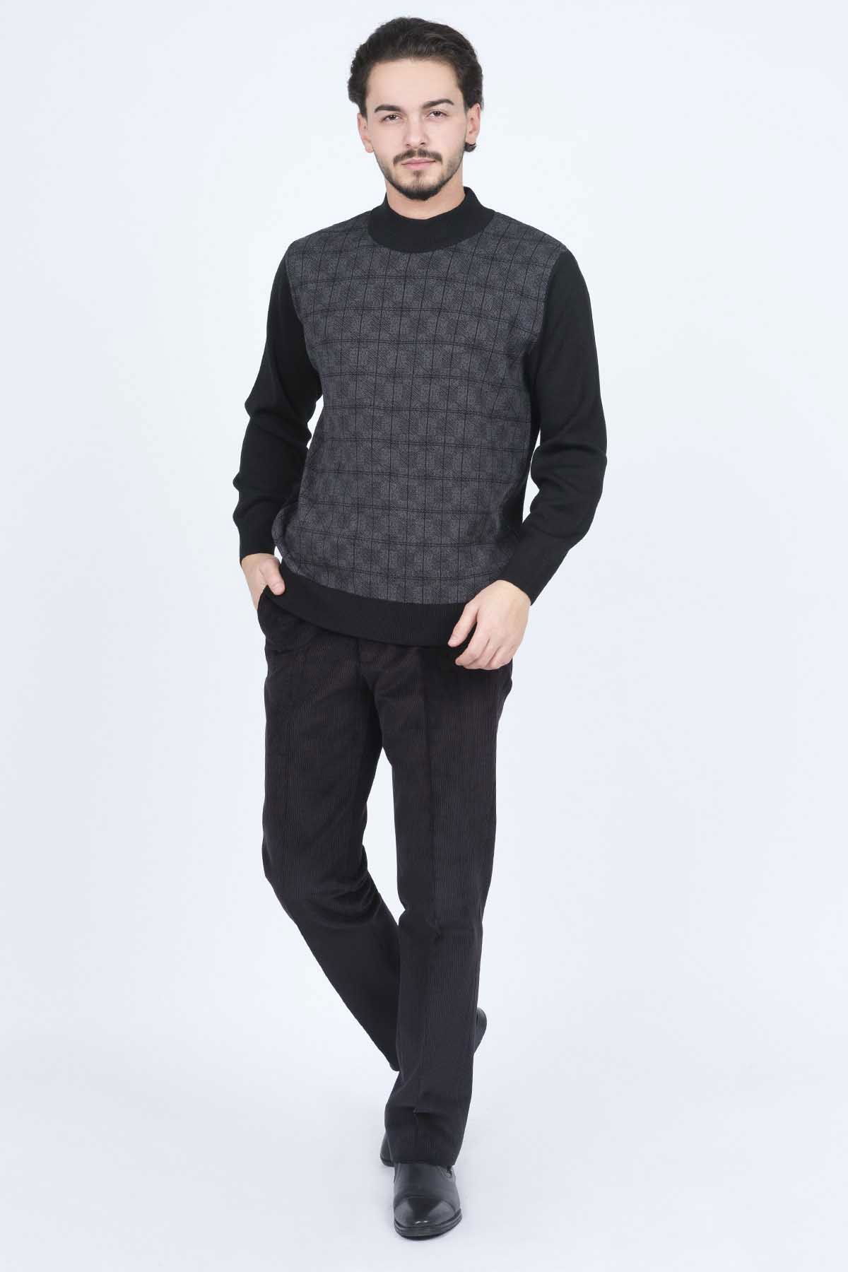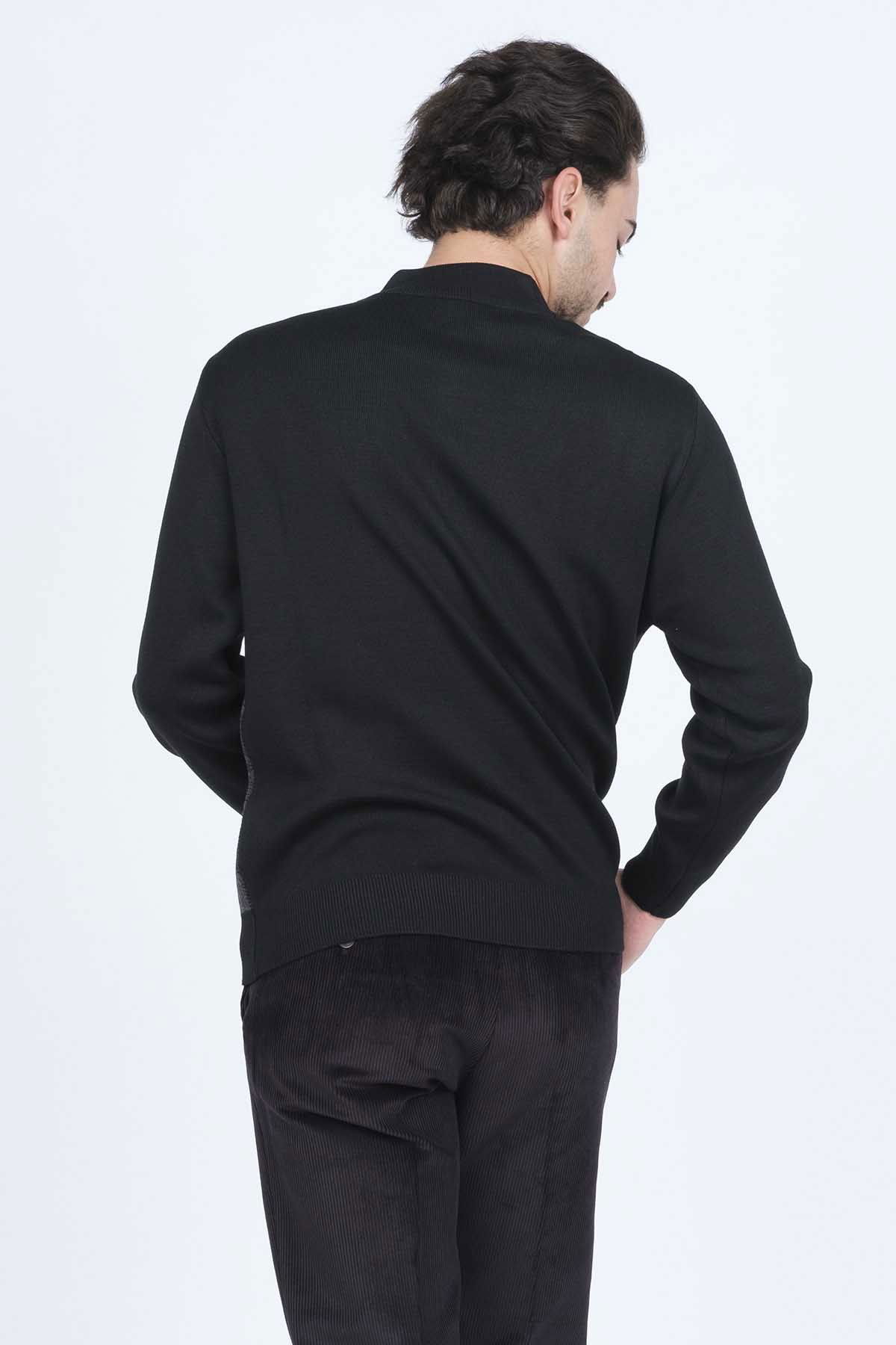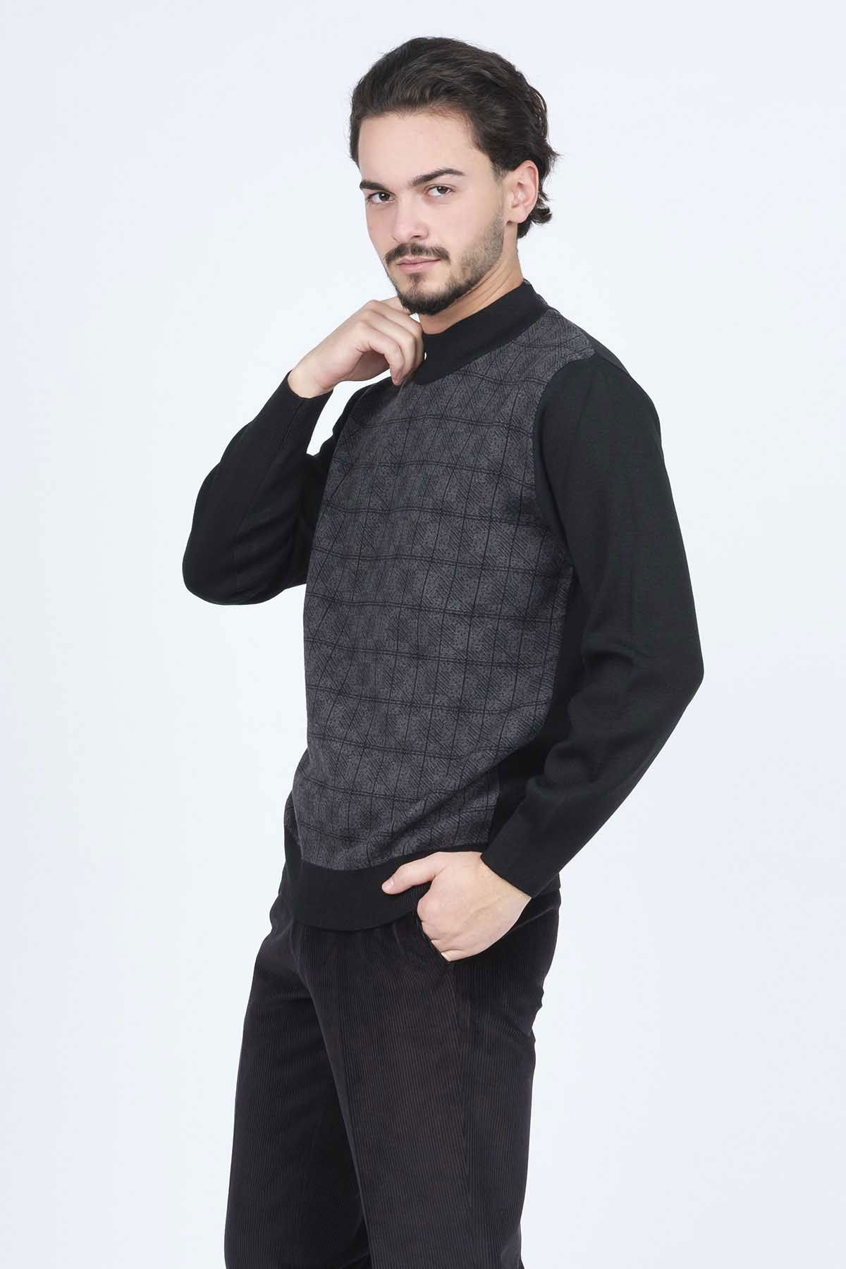 Ateş Triko Erkek Yarım Balıkçı Desenli Yün Kazak 6092524 Siyah