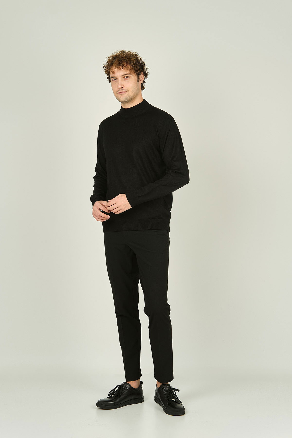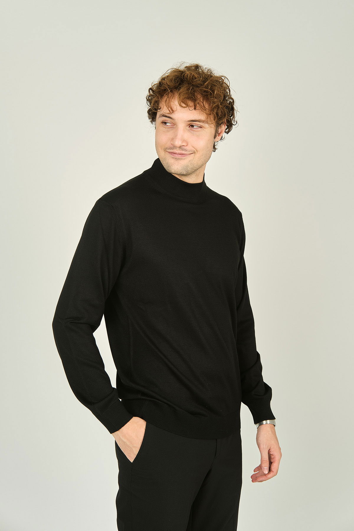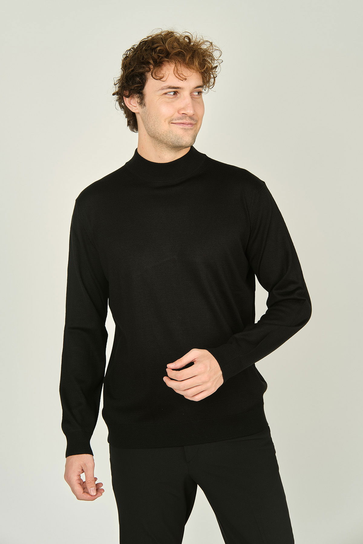 Ateş Triko Erkek Yarım Balıkçı Yaka Yün Kazak 0004 Siyah