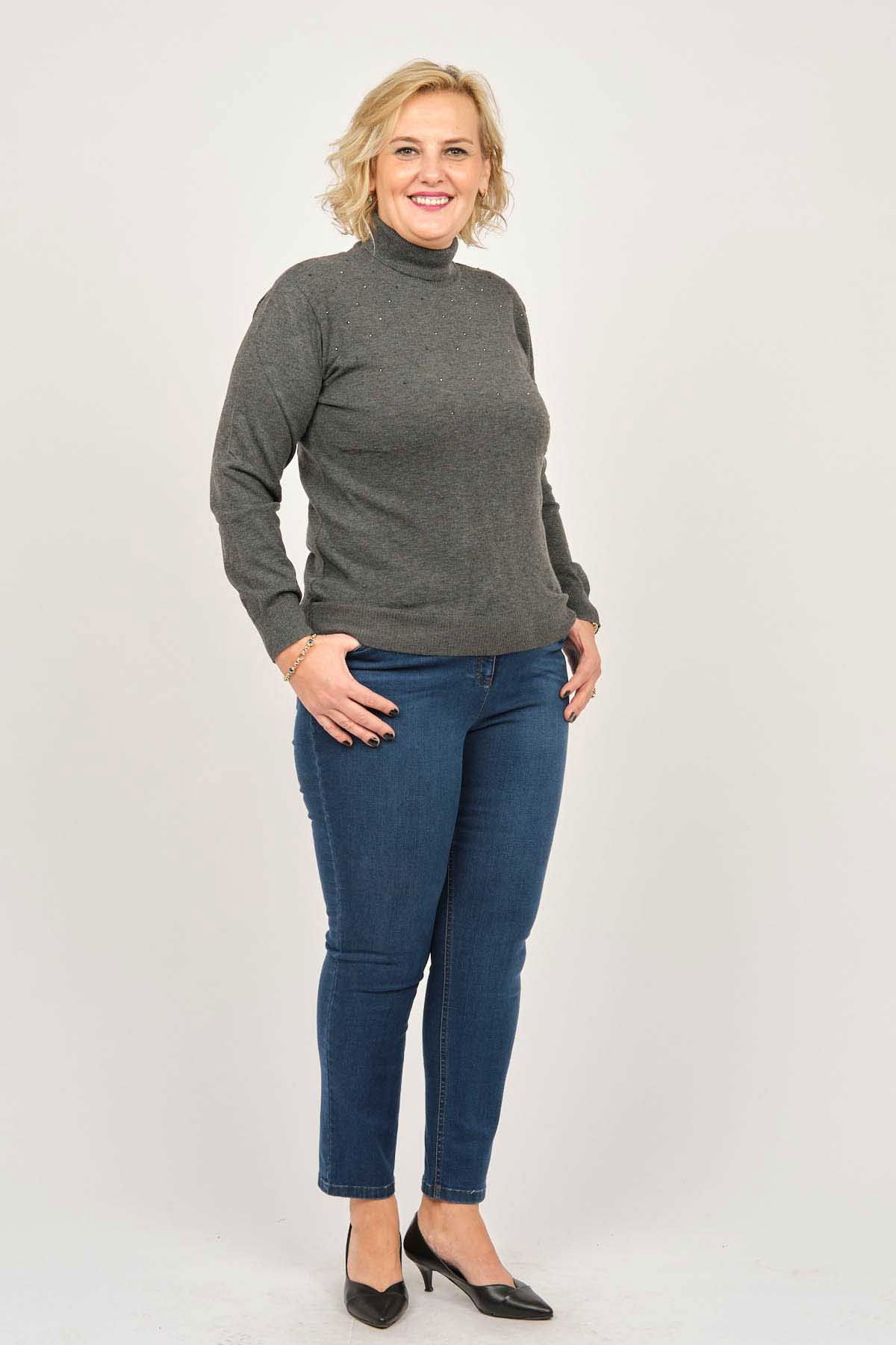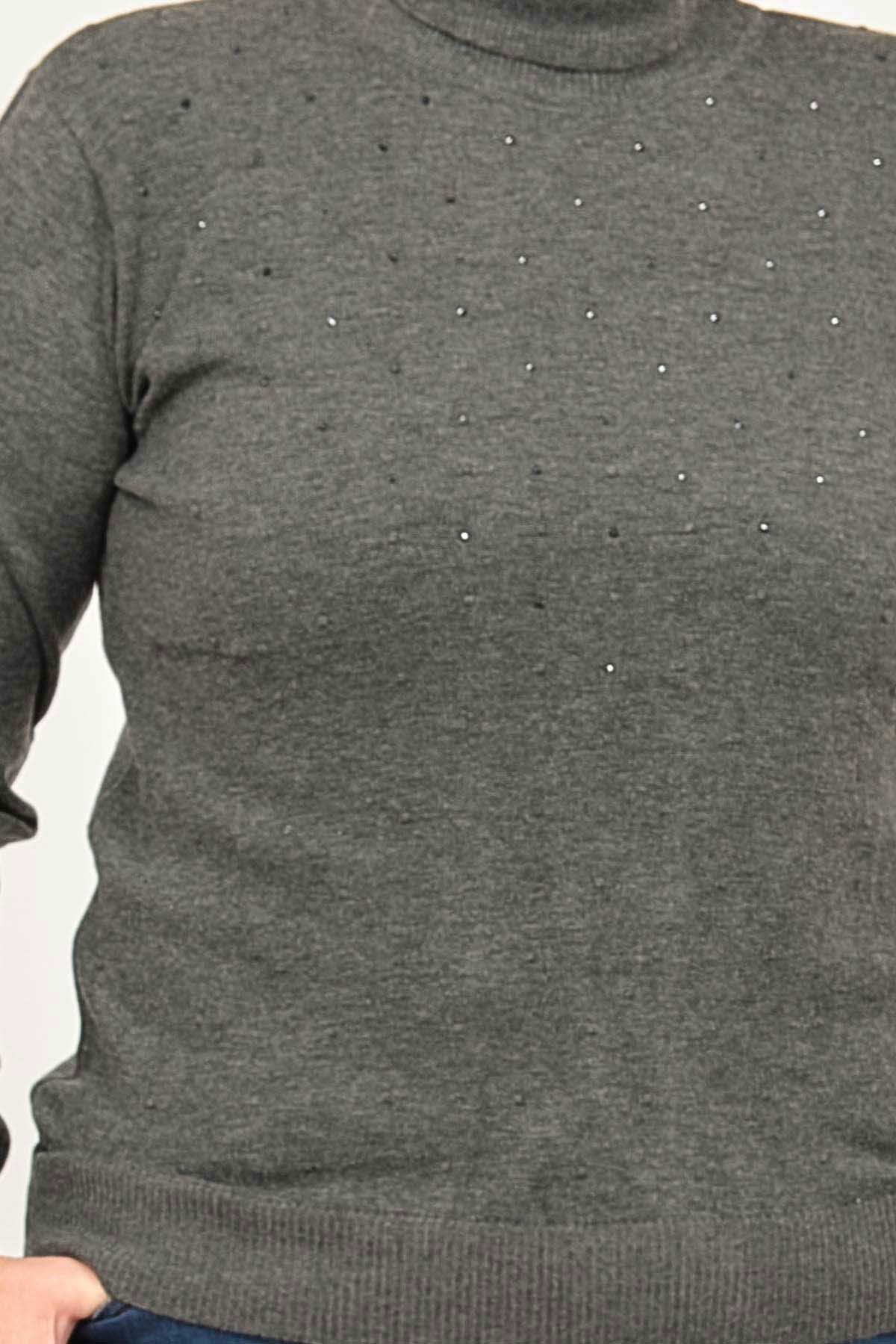 Detay: Uzun kollu, Önü taş işleme detaylı, Balıkçı yaka kazak;