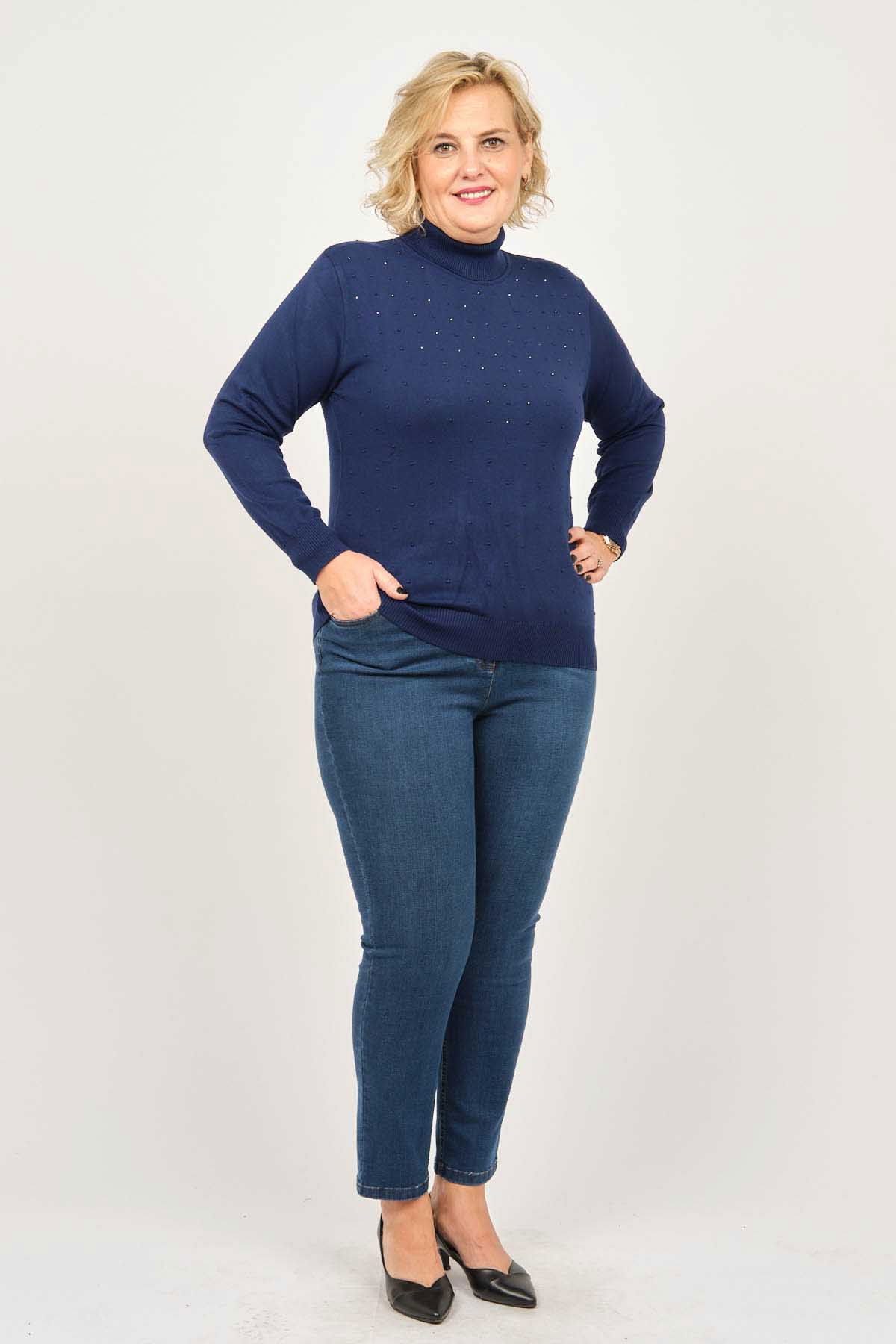 Detay: Uzun kollu, Önü taş işleme detaylı, Balıkçı yaka kazak;