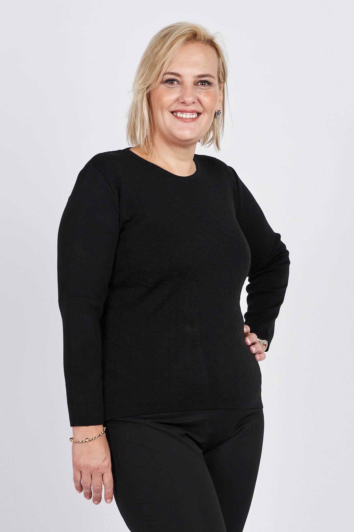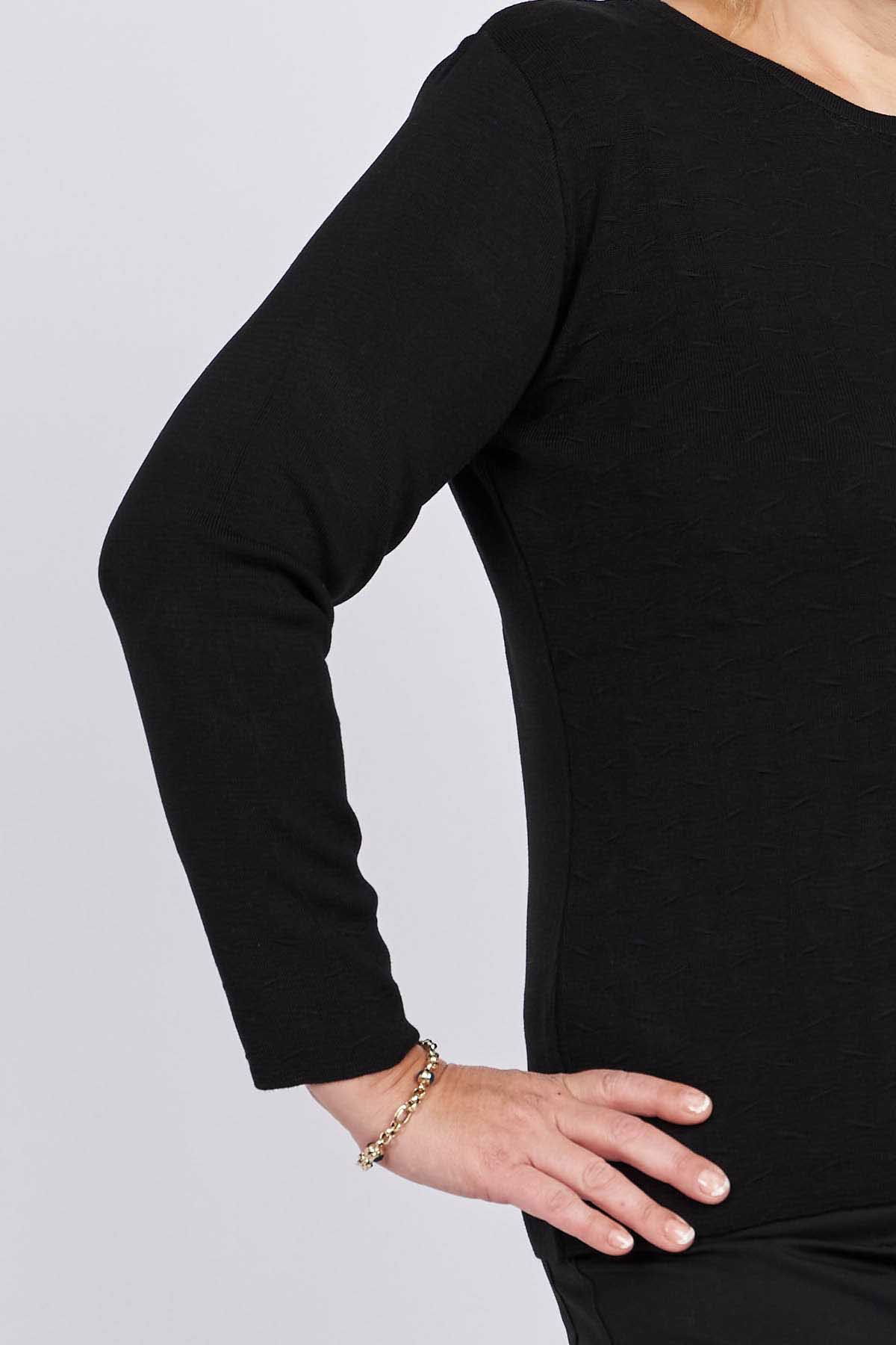 Detay: Yuvarlak Yaka, Önü Kabartmalı Desenli, Uzun Kollu Yırtmaçlı Triko Yün Kazak;