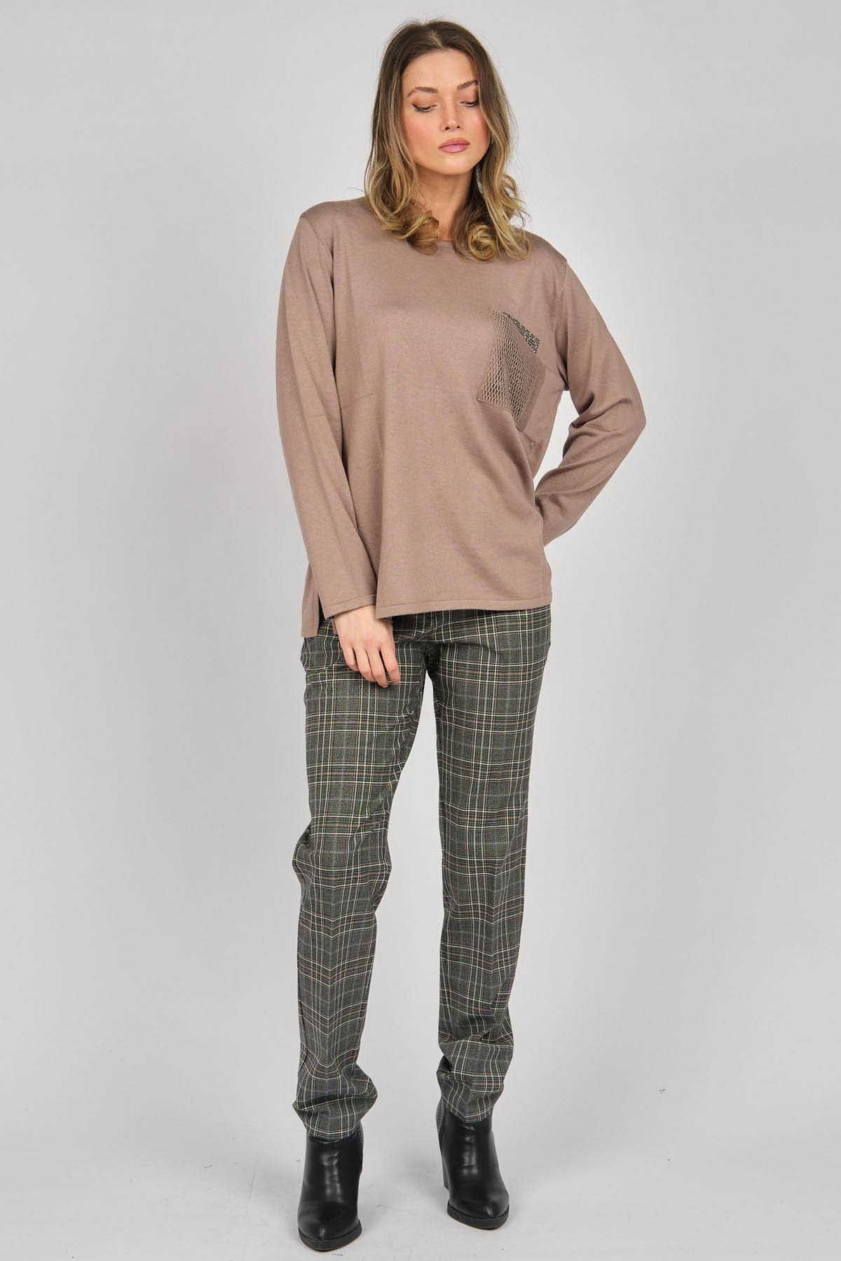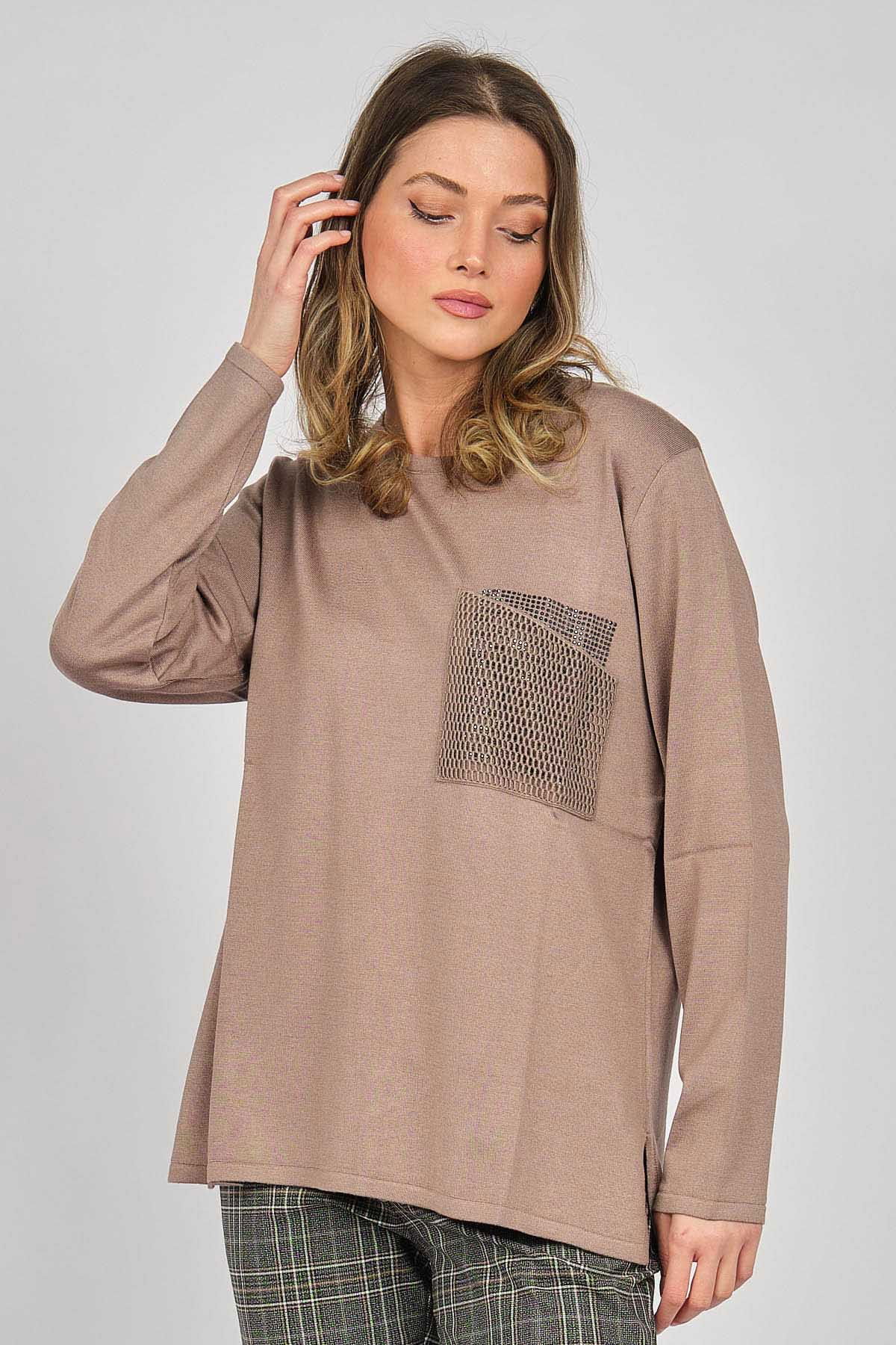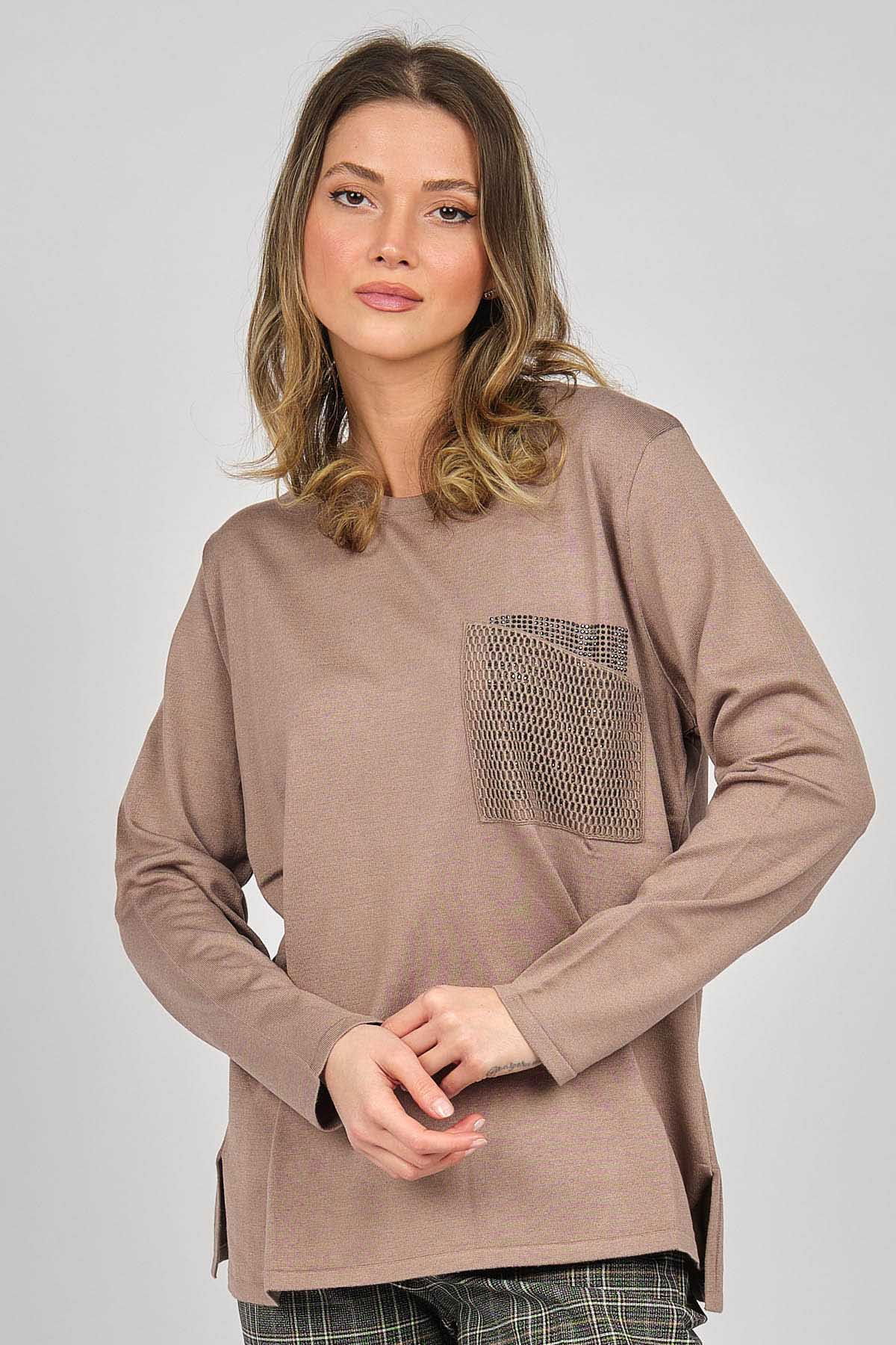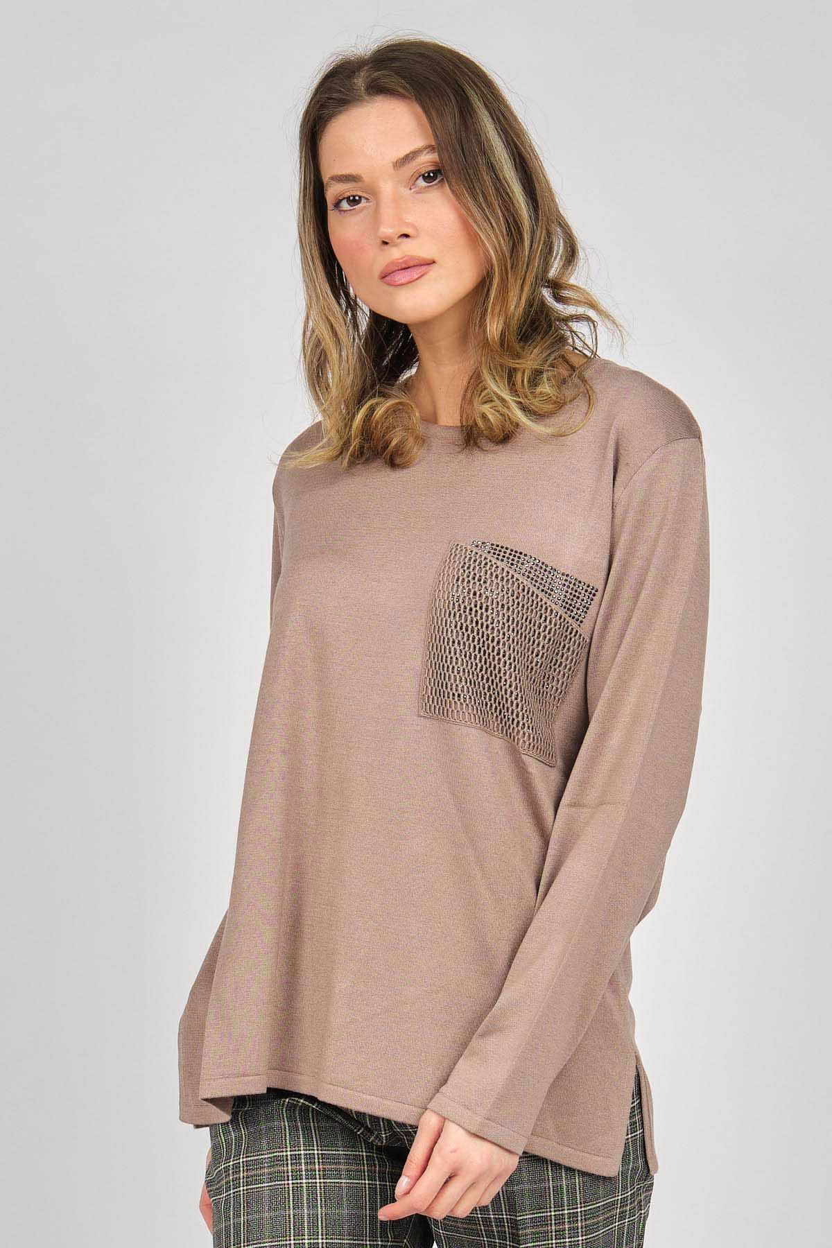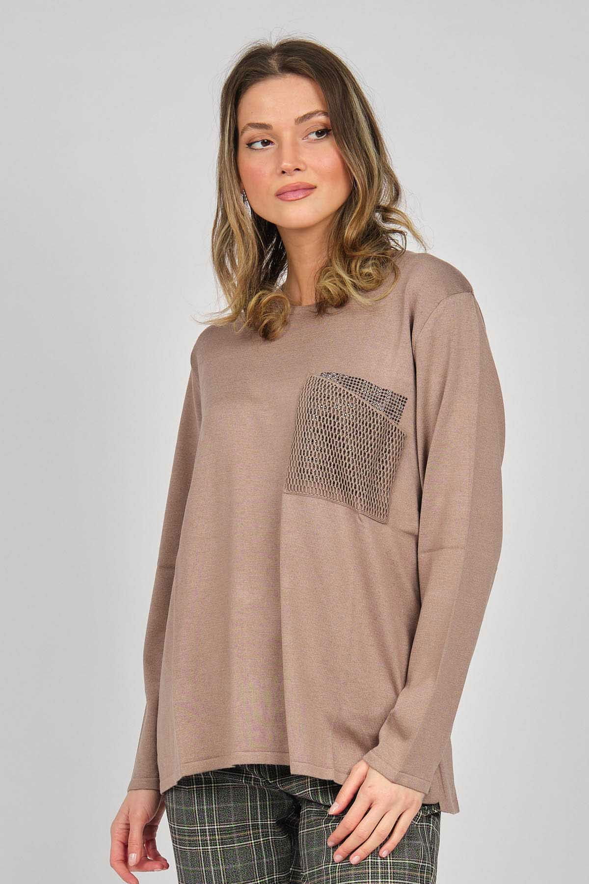 Büşra Triko Kadın Taşlı Cep Detaylı Bisiklet Yaka Kazak 3998216 Vizon