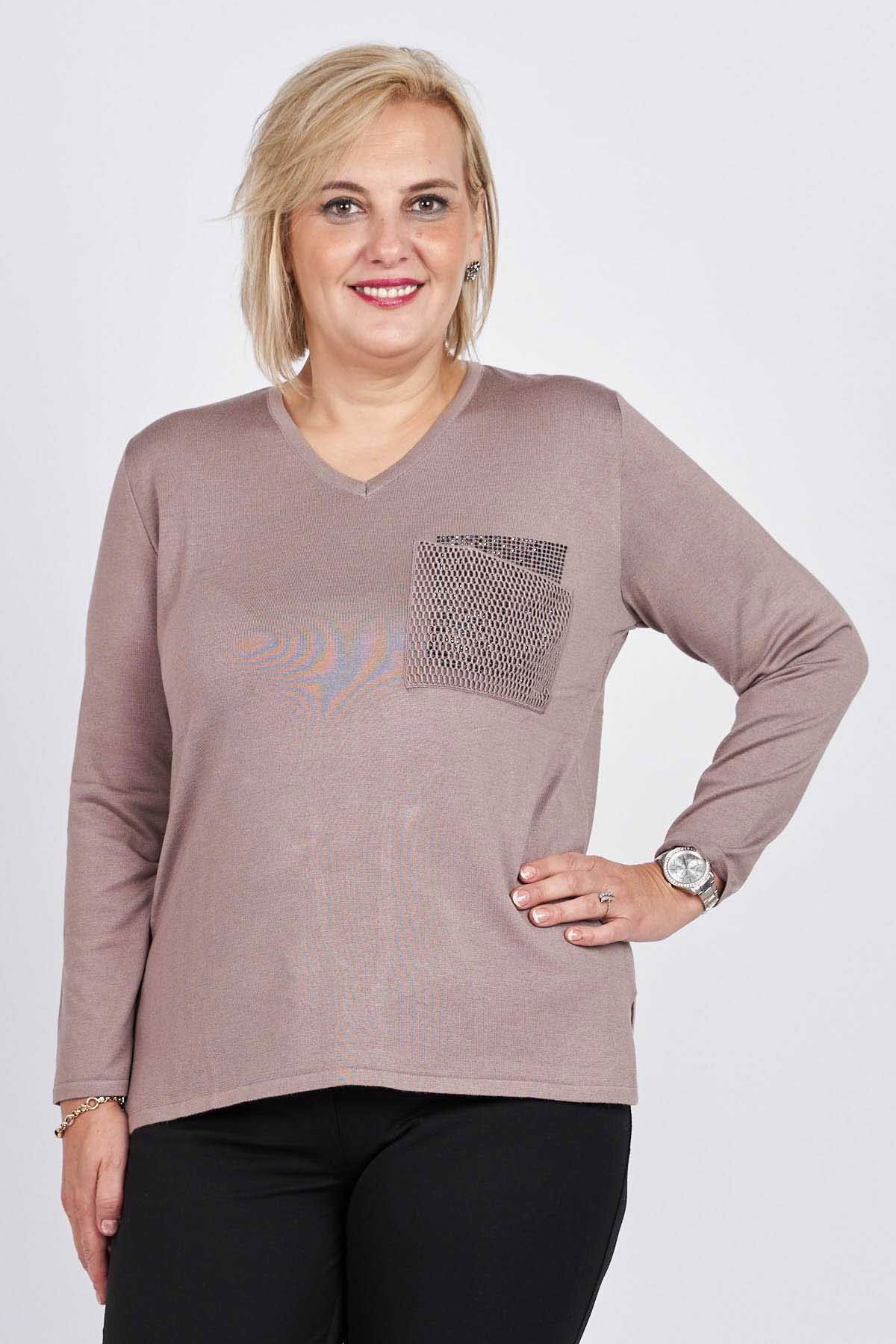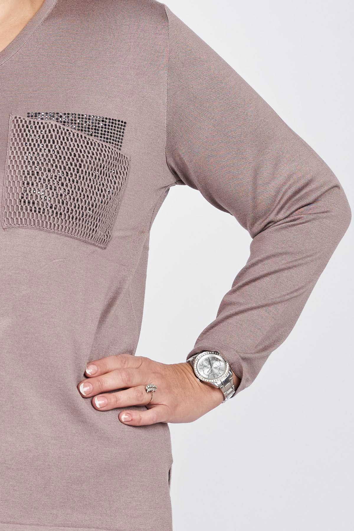 Büşra Triko Kadın Taşlı Cep Detaylı Kazak 3998217 Vizon