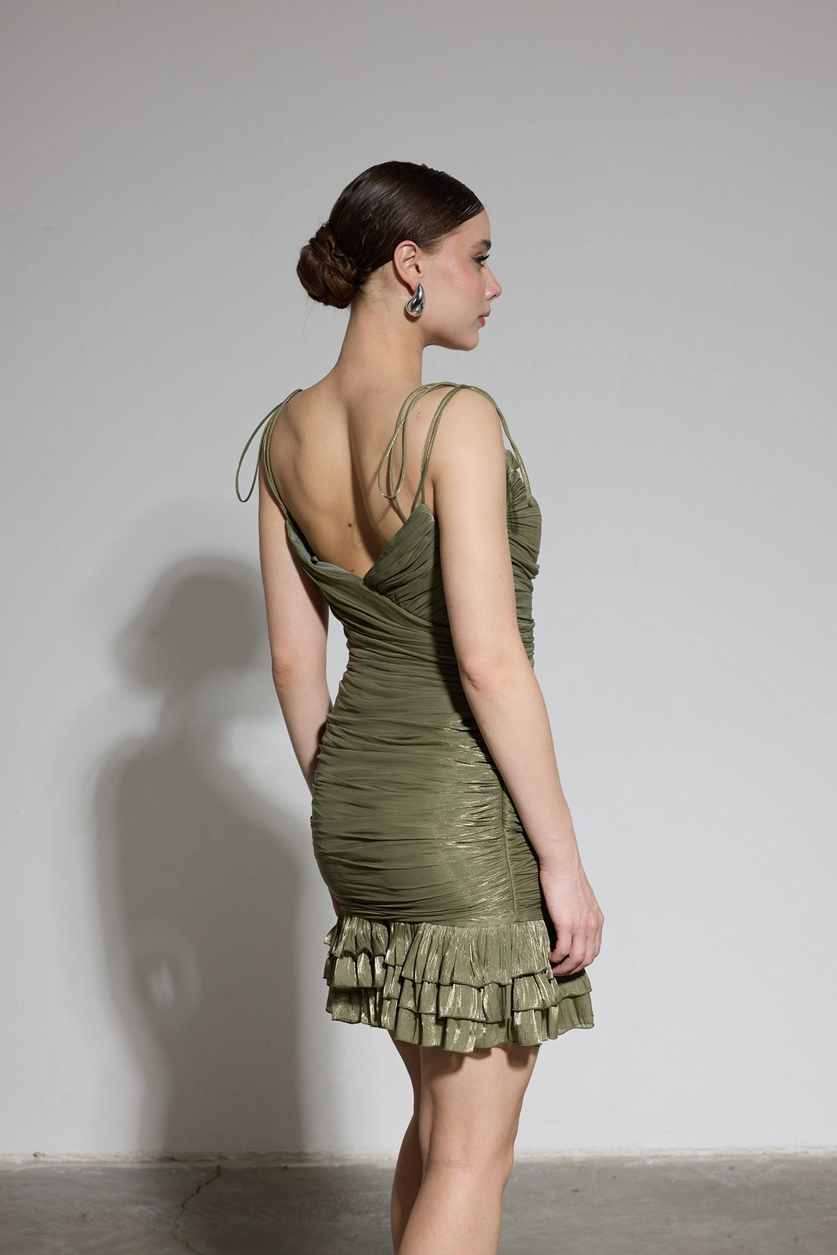 Detay: Astarlı, mini, askılı, organze kumaş, kare yaka, dokuma, dekoltesiz, cepsiz ve fermuarlı abiye elbise şıklığıyla zarif bir bütünlük sunar. Organze kumaşın hafif dokusu ve kare yaka tasarımı modern bir görünüm sağlarken, astarlı yapısı konforu garanti eder. Dekoltesiz ve cepsiz formuyla sade bir duruş sergileyen bu abiye, fermuar detayıyla pratik kullanım imkânı verir;