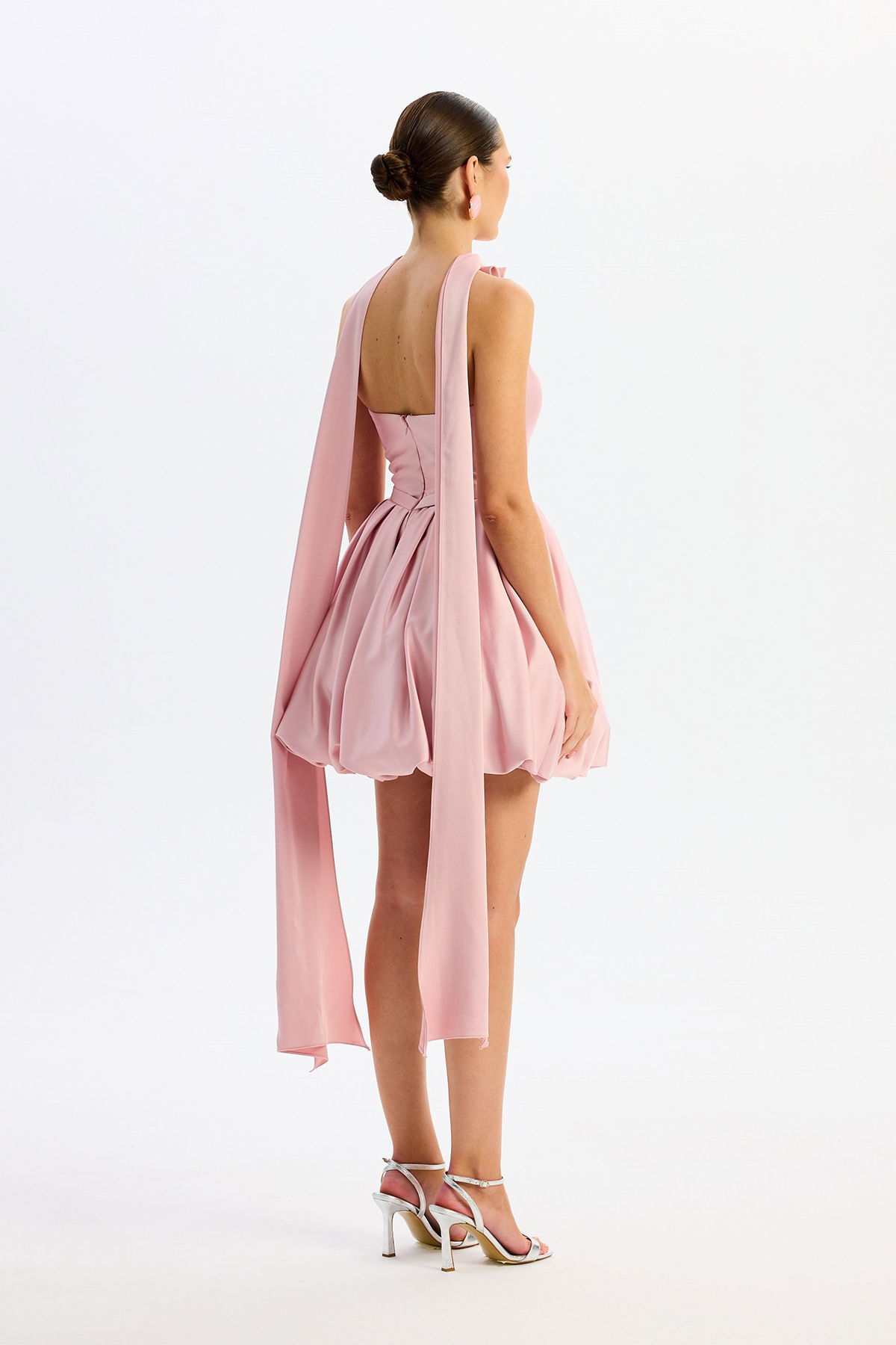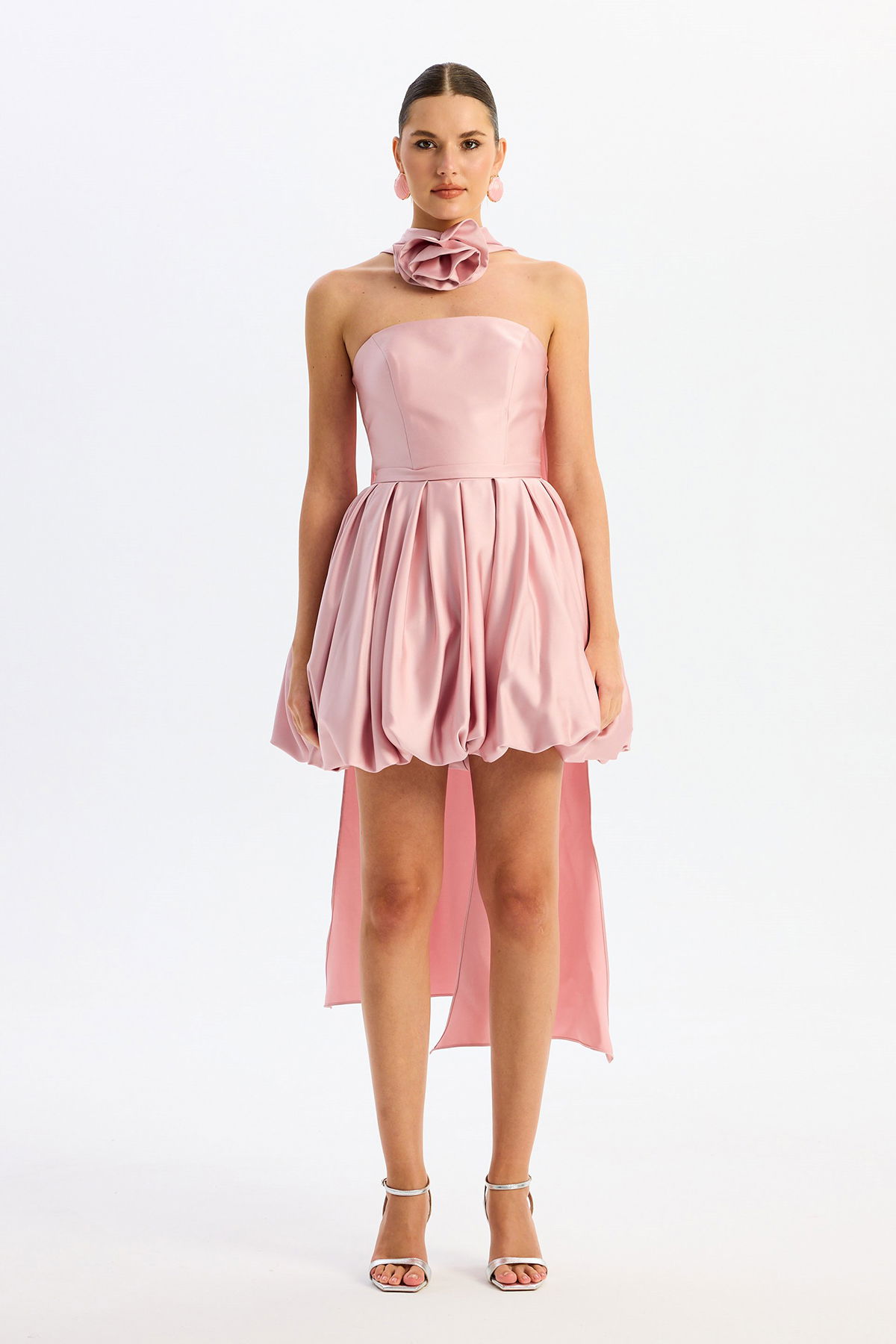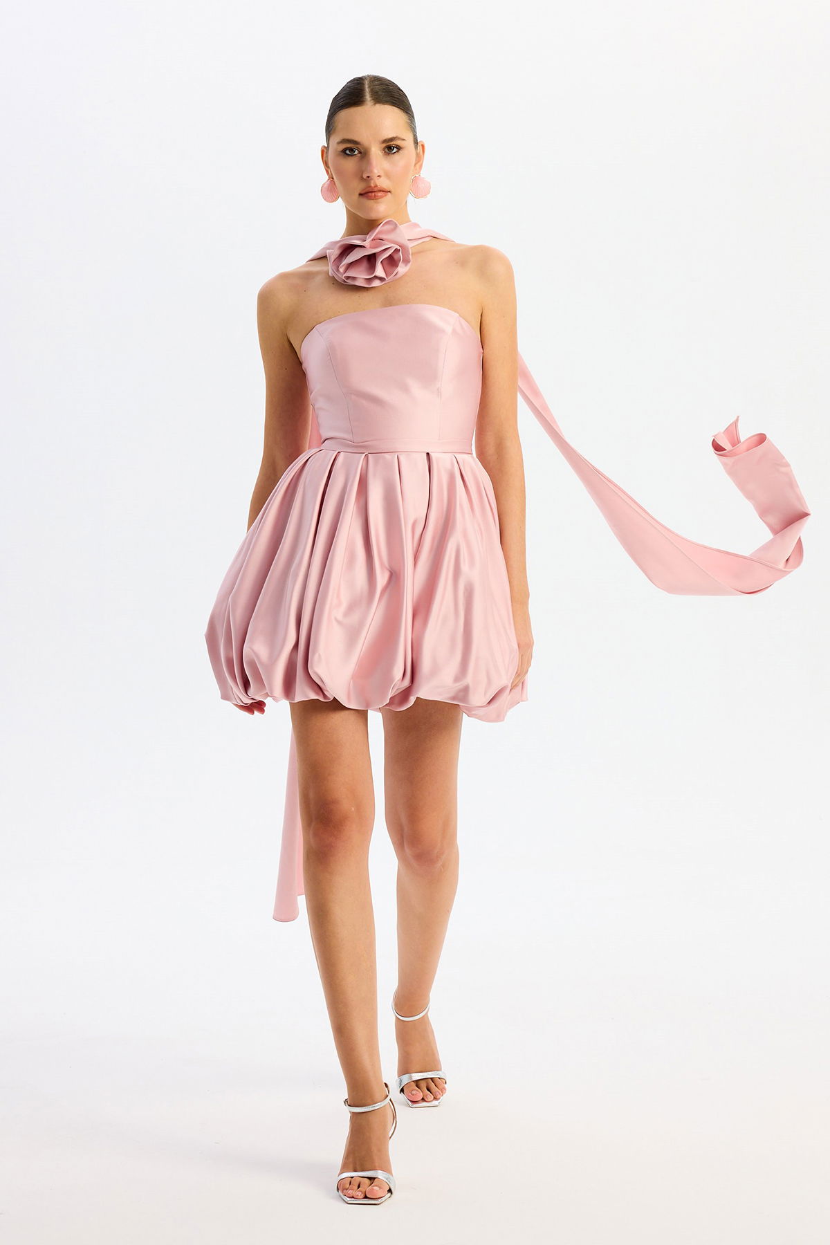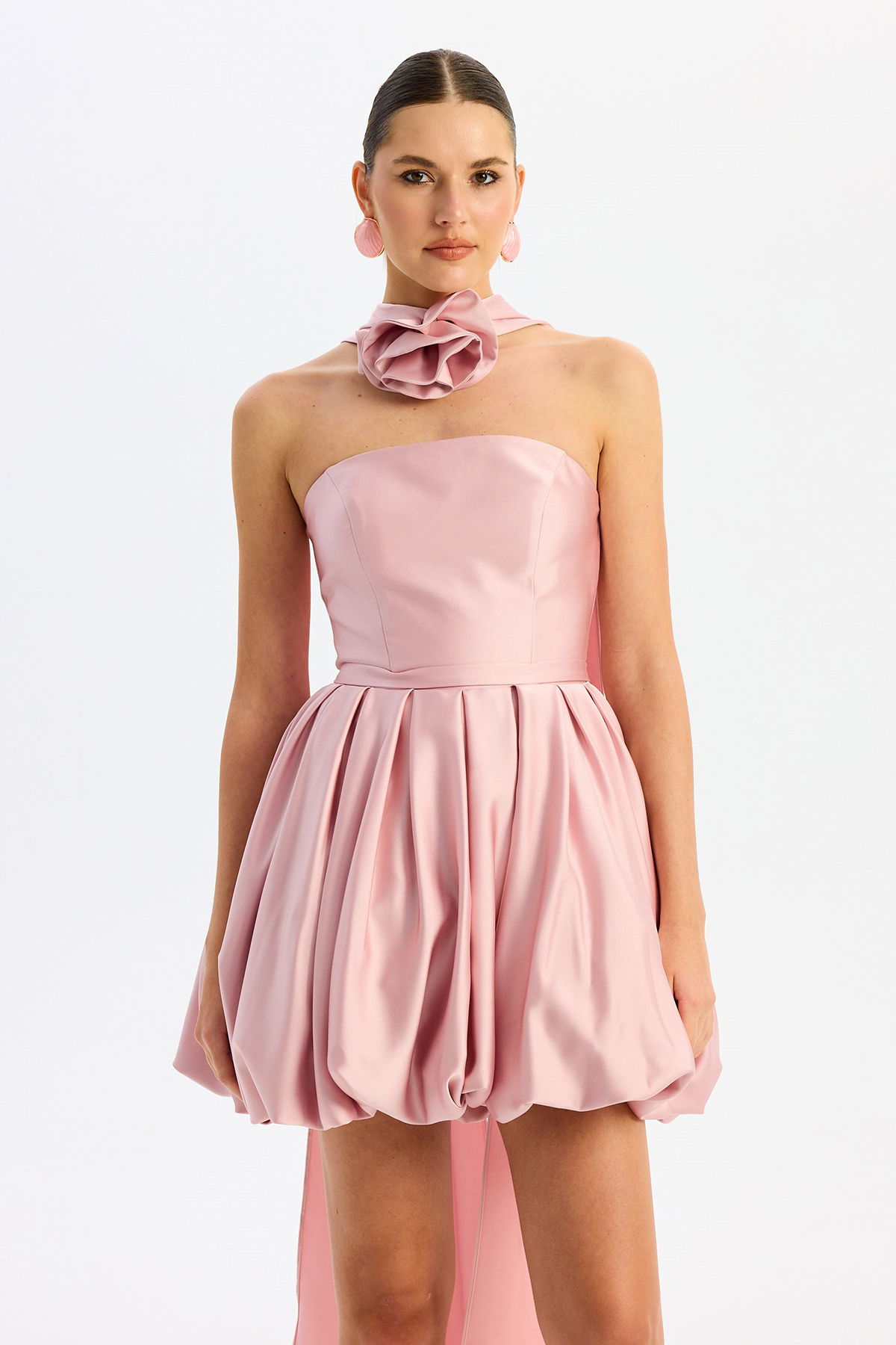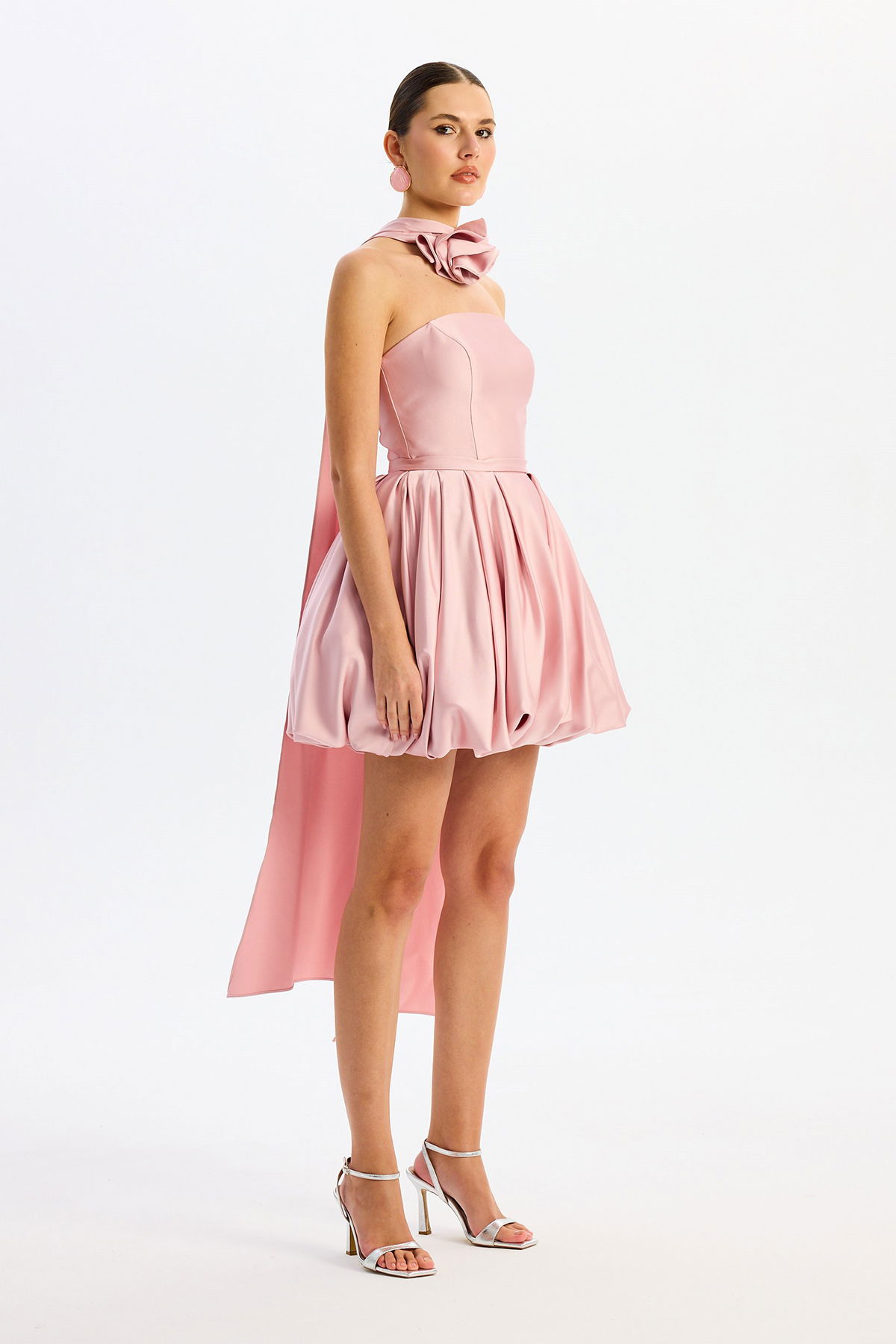 Carmen Kadın Balon Etek Güllü Saten Abiye Elbise 58617 Pudra