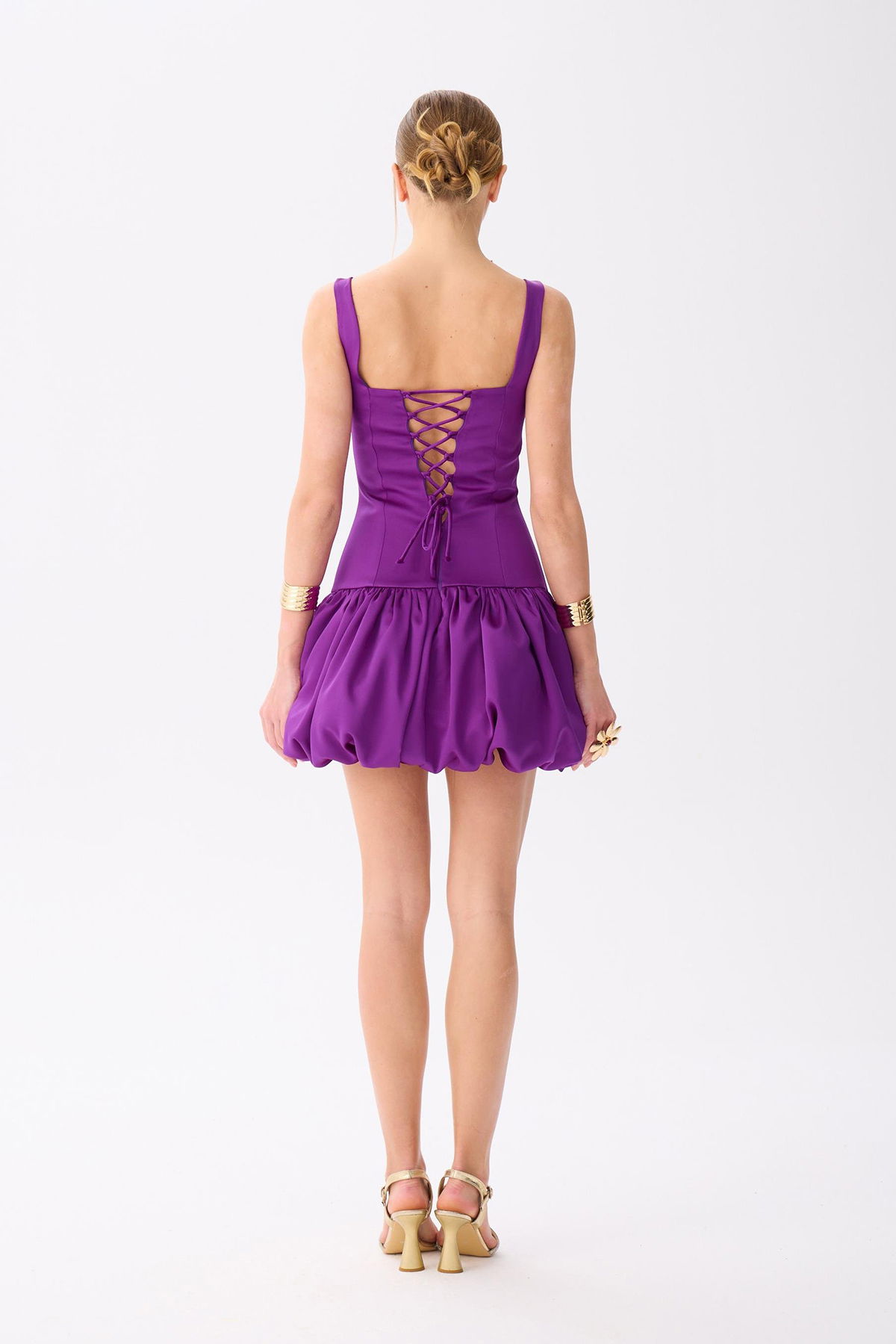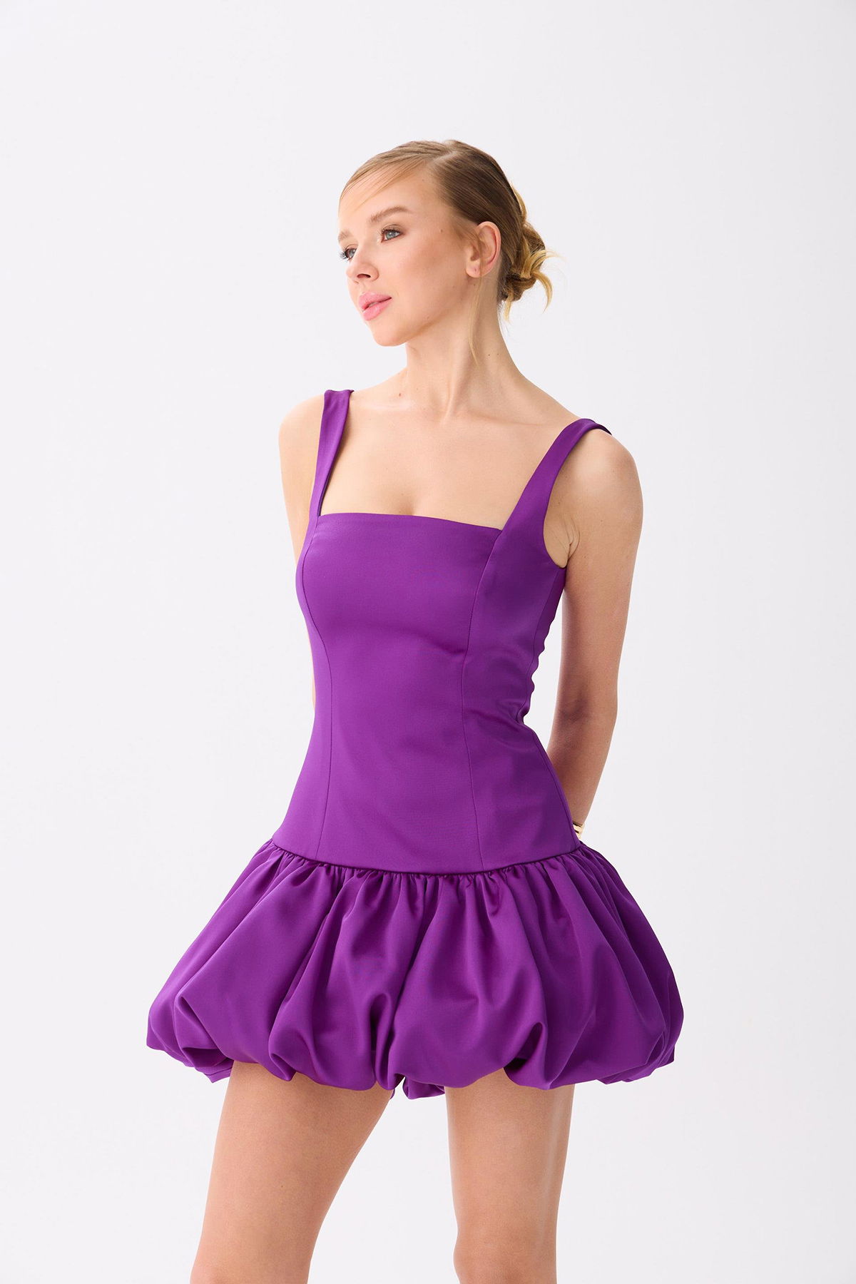 Carmen Kadın Balon Etek Saten Abiye Elbise 58514 Mor