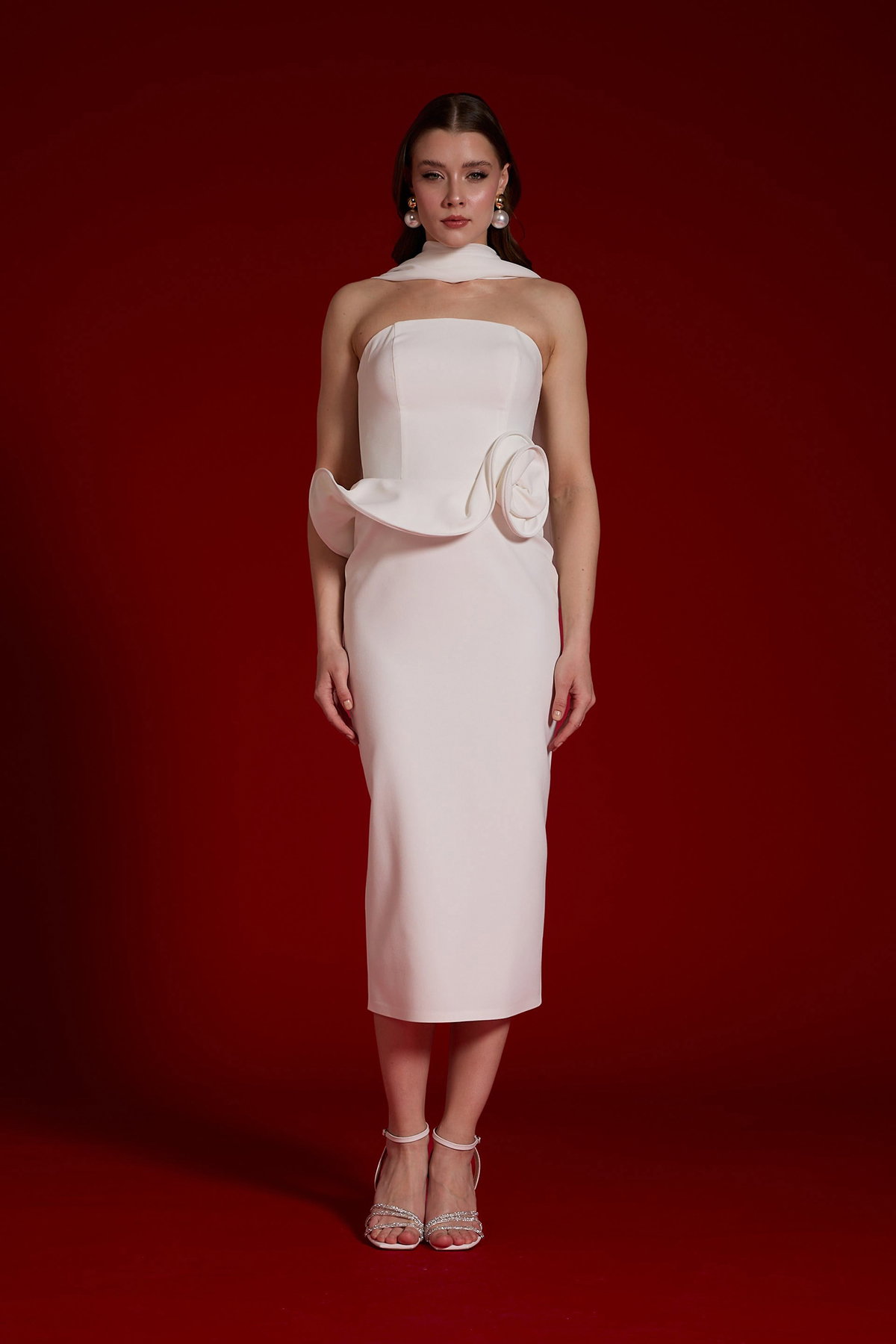 Detay: Midi boy, kolsuz, straplez, krep dokuma kumaş, cepsiz, fermuarlı ve astarlı abiye elbise zarif detaylarıyla modern bir şıklık sunar. Krep dokuma kumaşın akıcı yapısı ve astarlı formu konfor sağlarken, straplez tasarım ve midi boy ölçüsü feminen bir duruş kazandırır. Cepsiz ve fermuarlı yapısıyla sade ama etkileyici bir görünüm sergileyen bu abiye, özel davetlerde stil sahibi bir tercih olur;