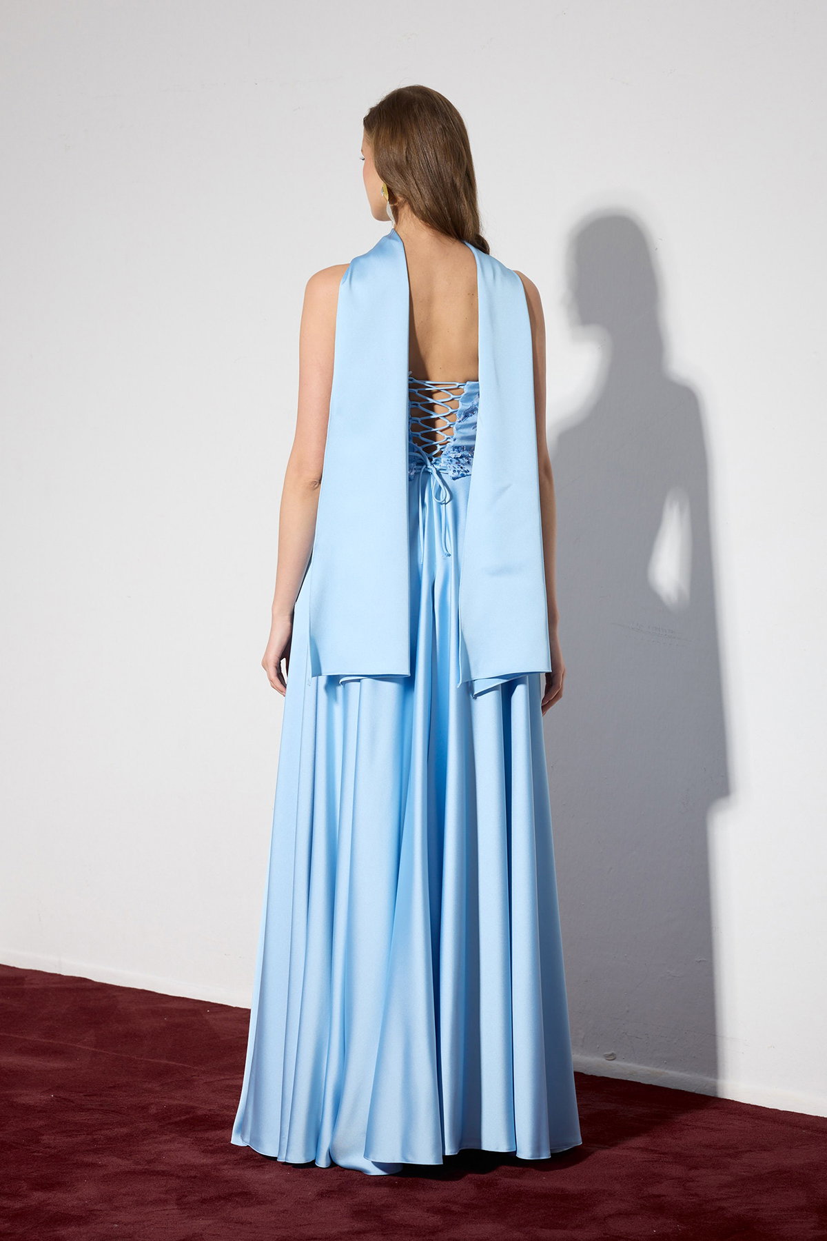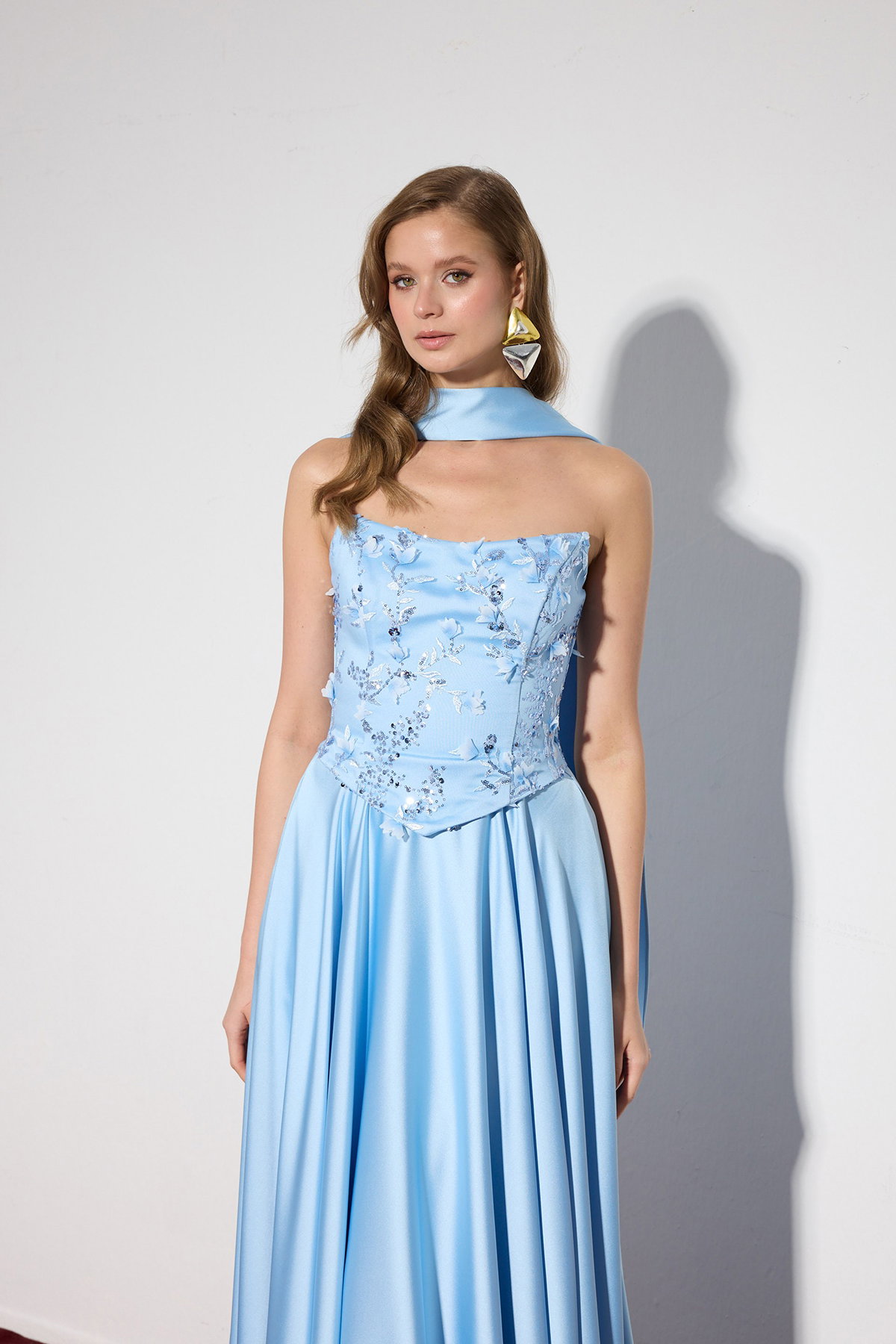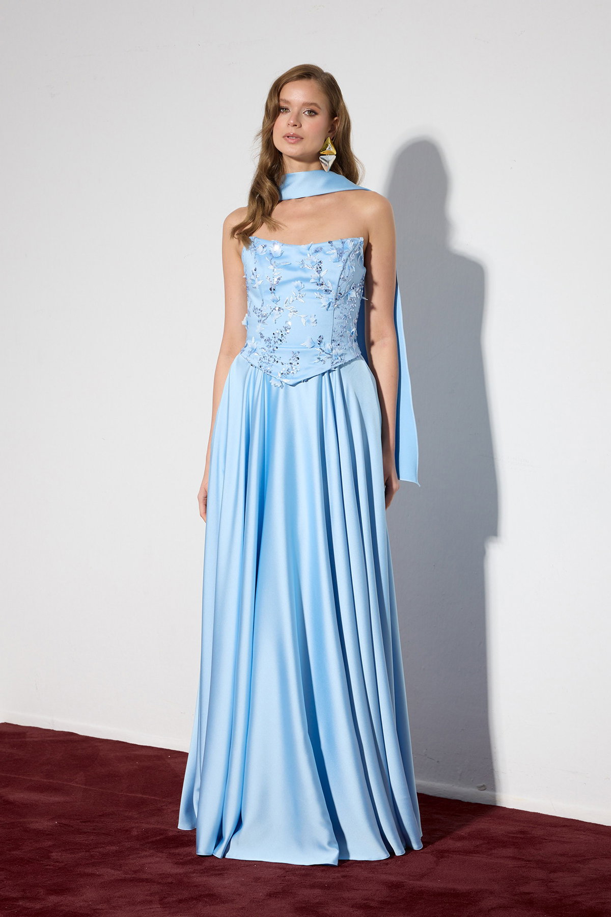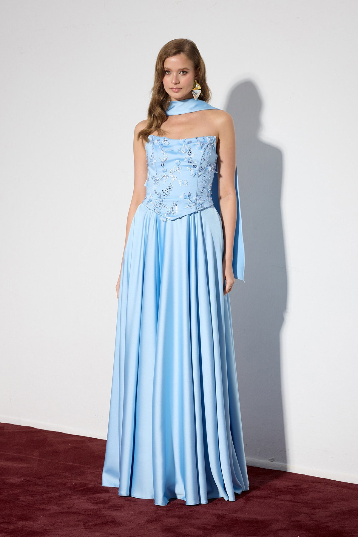 Detay: Saten dokuma kumaş, straplez, kolsuz, maxi boy, fermuarlı ve astarlı abiye elbise zarif detaylarıyla göz alıcı bir şıklık sunar. Saten kumaşın parlak dokusu ve astarlı yapısı konfor sağlarken, straplez tasarım feminen bir duruş kazandırır. Maxi boy ölçüsü ve fermuarlı formuyla sade ama etkileyici bir görünüm sergileyen bu abiye, özel davetlerde stil sahibi bir tercih olur;
