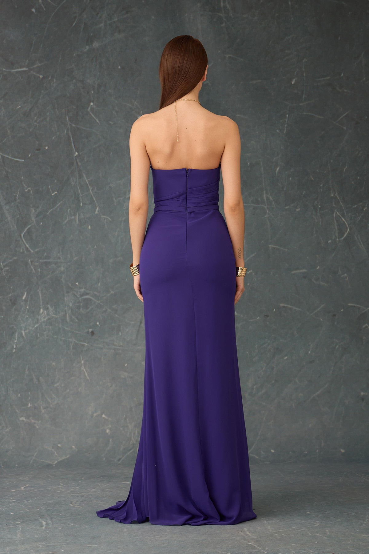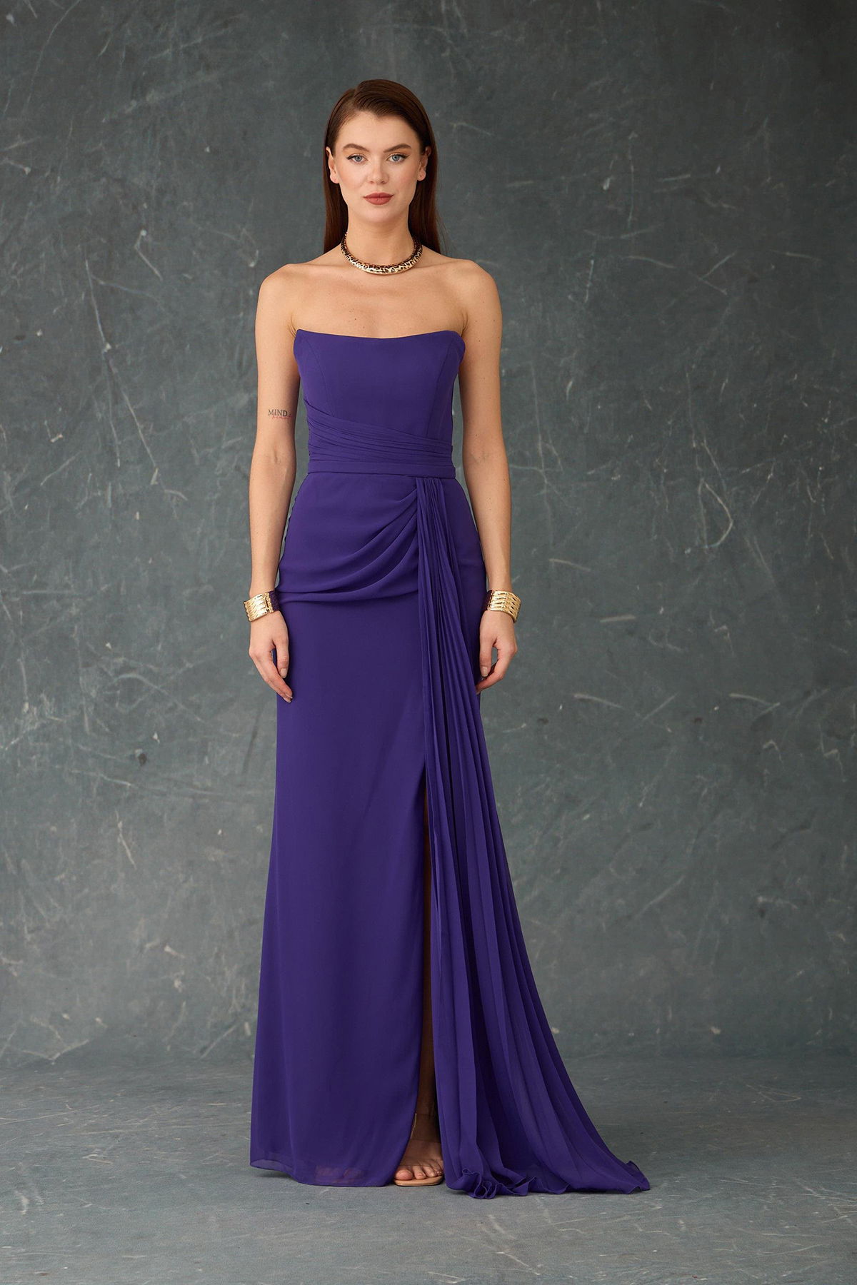 Carmen Kadın Straplez Yırtmaçlı Şifon Abiye Elbise 58482 Mor