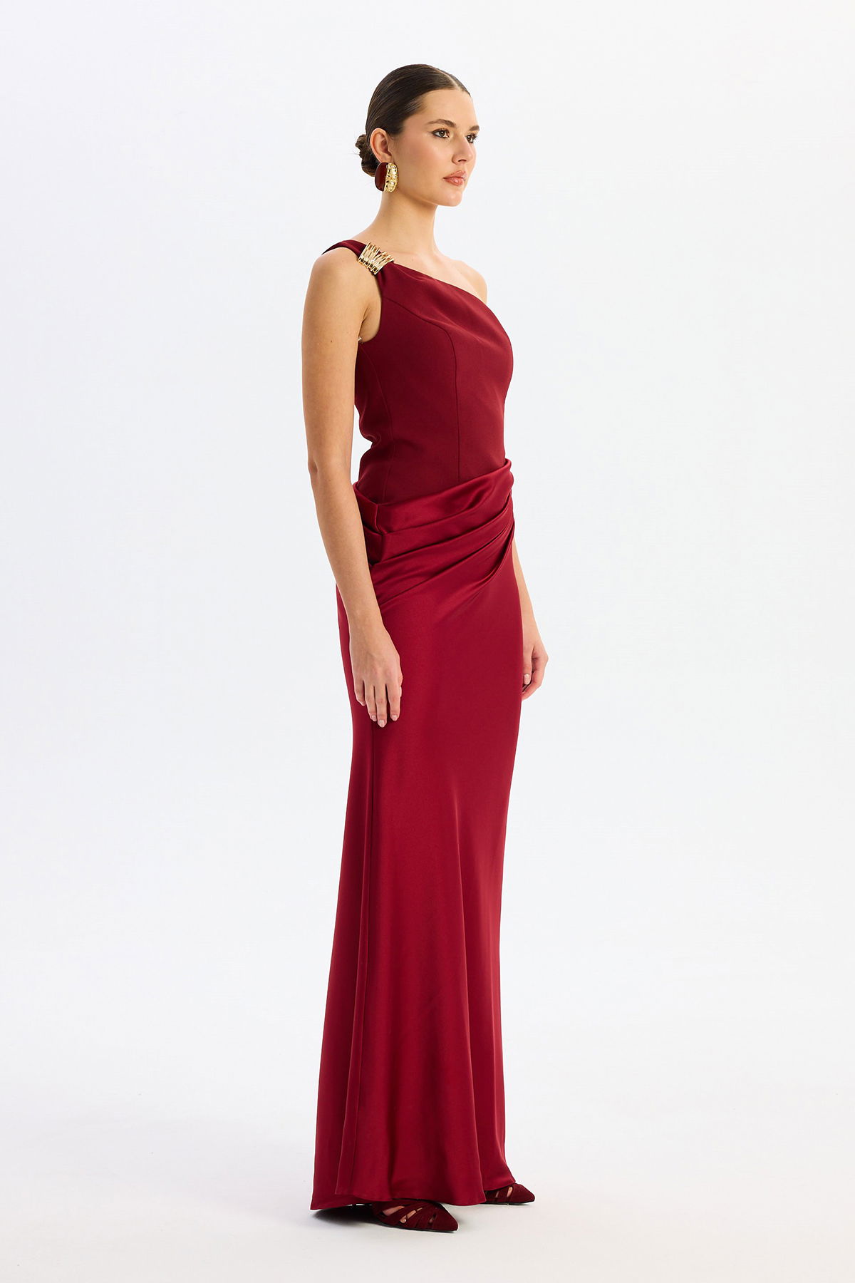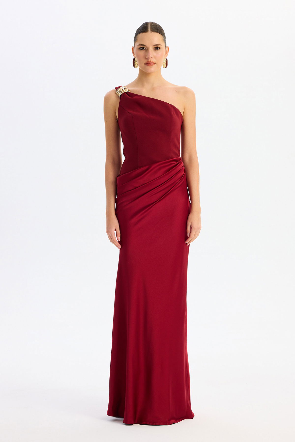 Detay: Astarlı (açık renklerde çift kat astar) ve maxi boy tasarımıyla öne çıkan bu abiye elbise, kolsuz ve tek kol detayıyla modern bir şıklık sunar. Krep ve saten kumaşın zarif birleşimi, asimetrik yaka ve omuzdaki toka detayıyla göz alıcı bir görünüm sağlar. Dekoltesiz, cepsiz ve fermuarlı yapısıyla konforu ön planda tutan bu özel abiye, davetlerde stil sahibi kadınların tercihi olur.;