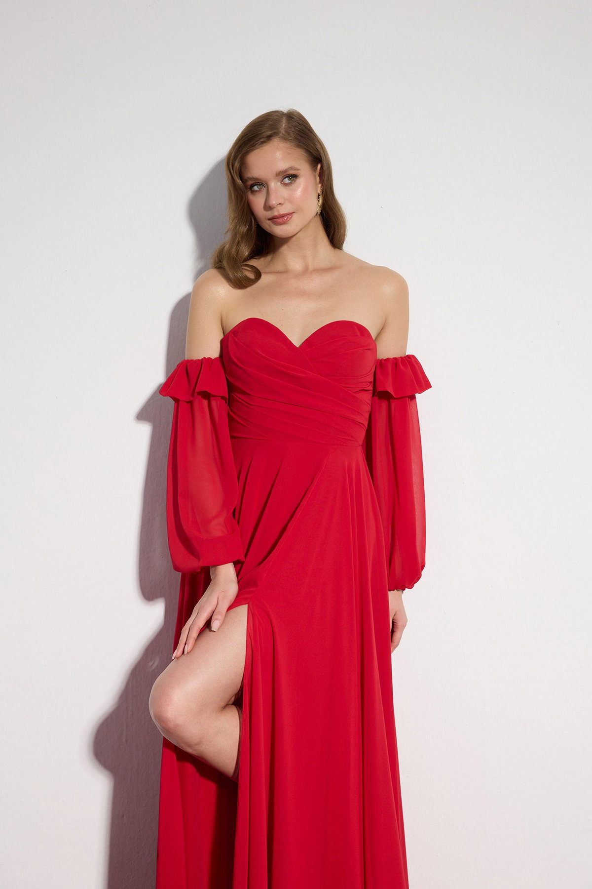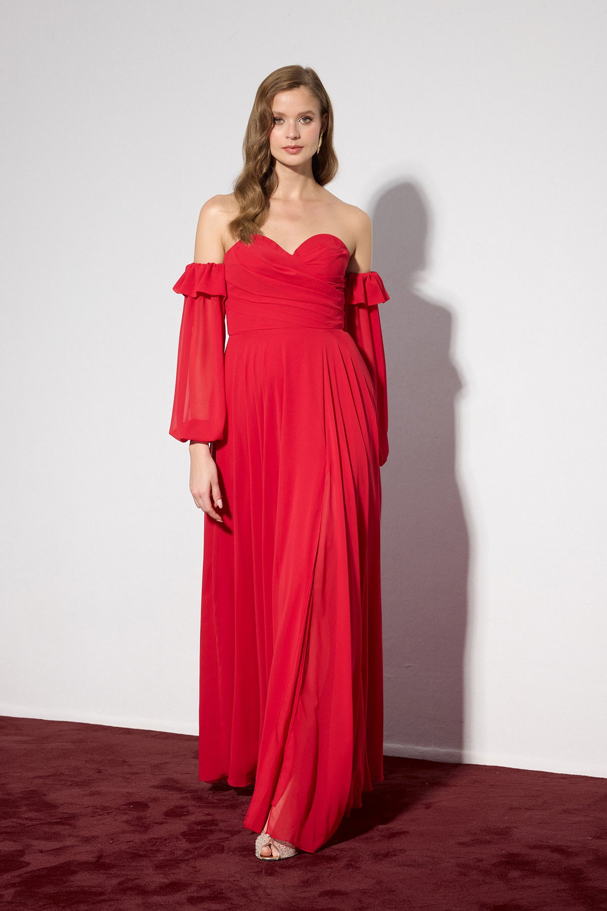 Detay: Kolsuz, şifon dokuma kumaş, straplez, dekolteli, maxi boy, fermuarlı ve astarlı abiye elbise zarif detaylarıyla göz alıcı bir şıklık sunar. Şifon kumaşın hafif ve akıcı yapısı, astarlı formuyla konfor sağlarken straplez tasarım ve maxi boy ölçüsü feminen bir duruş kazandırır. Dekolteli, cepsiz ve fermuarlı yapısıyla sade ama etkileyici bir görünüm sergileyen bu abiye, özel davetlerde stil sahibi bir tercih olur;