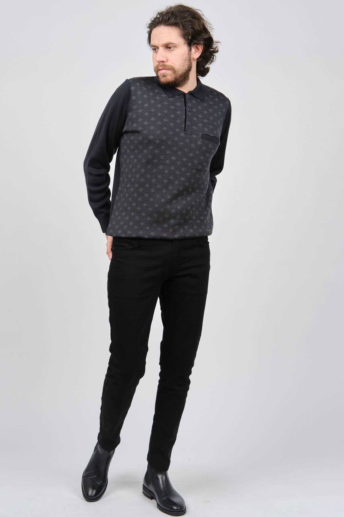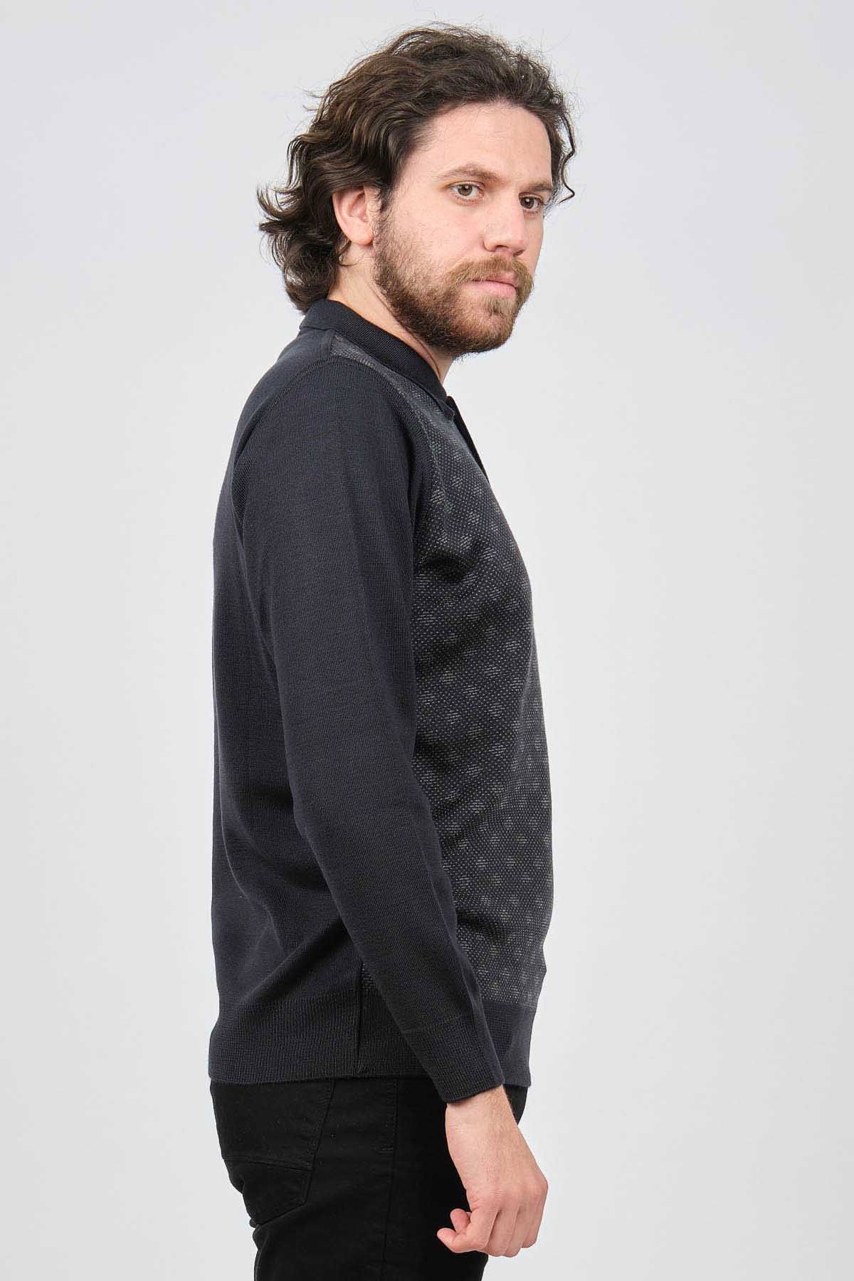 Detay: Düğmeli polo yaka, Cep detaylı, Desenli, Uzun kollu kazak;