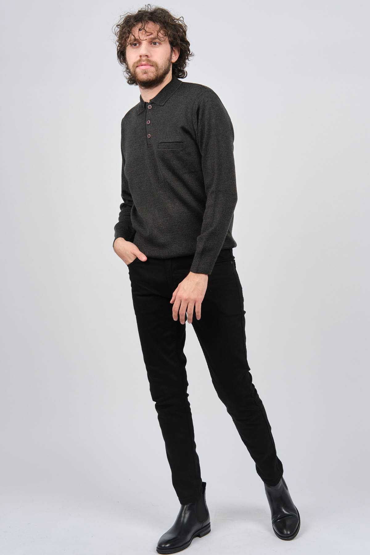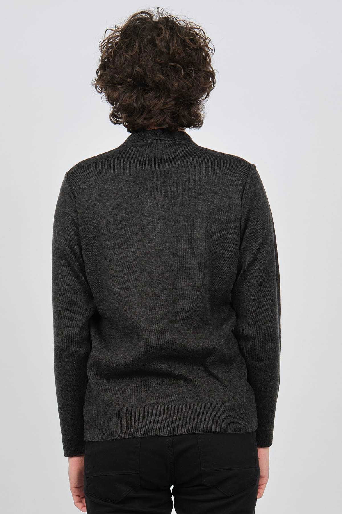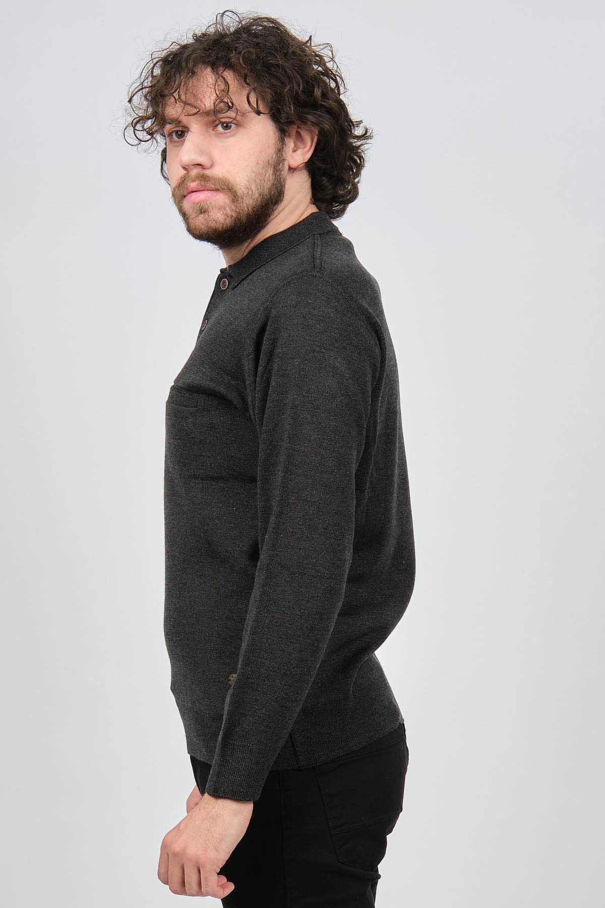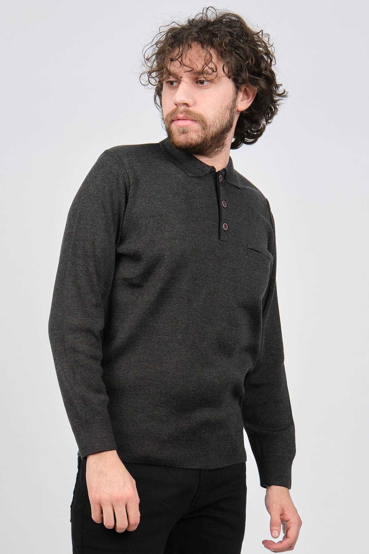 Çizgi Triko Erkek Cep Detaylı Polo Yaka Kazak 42544241 Koyu Gri
