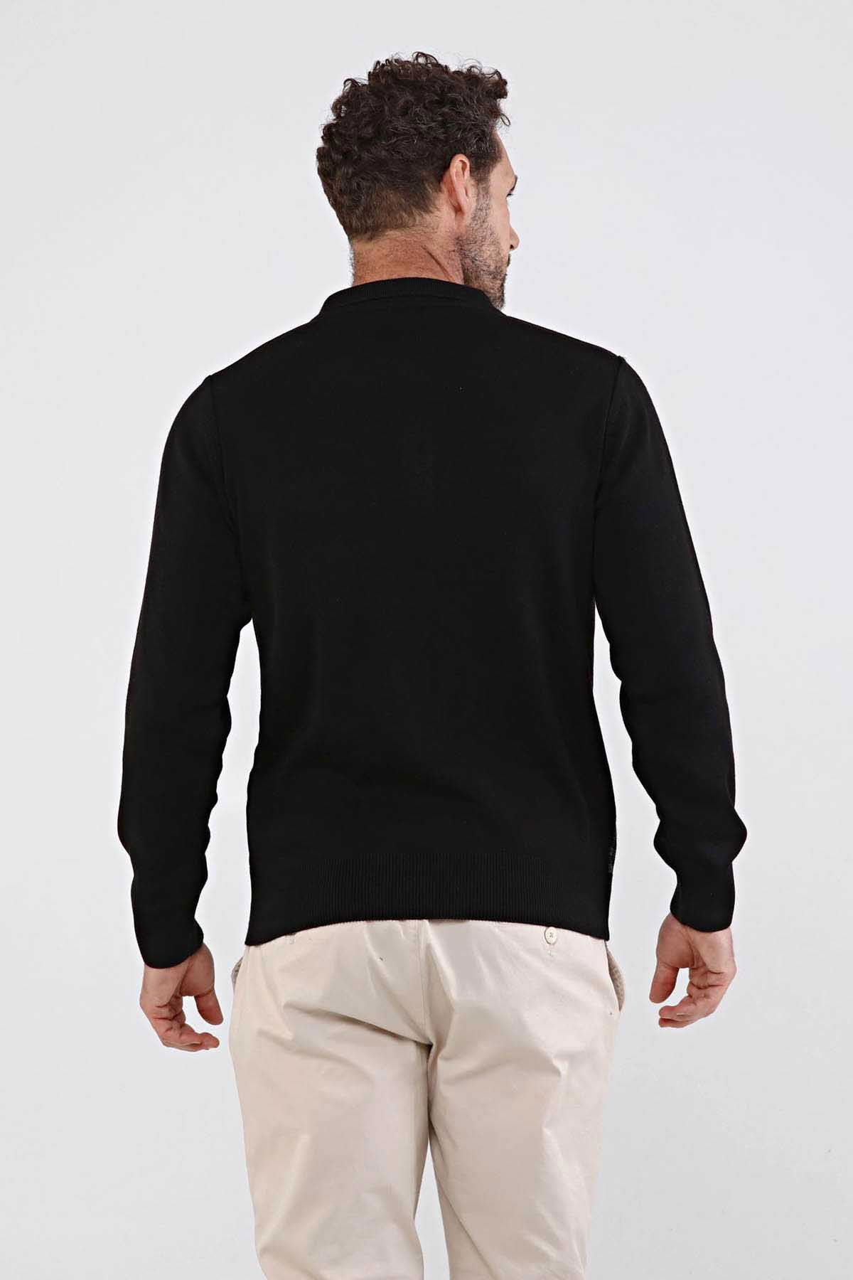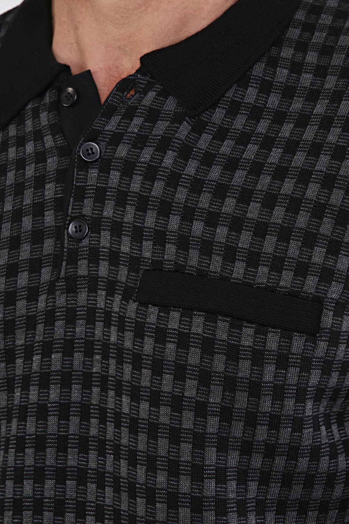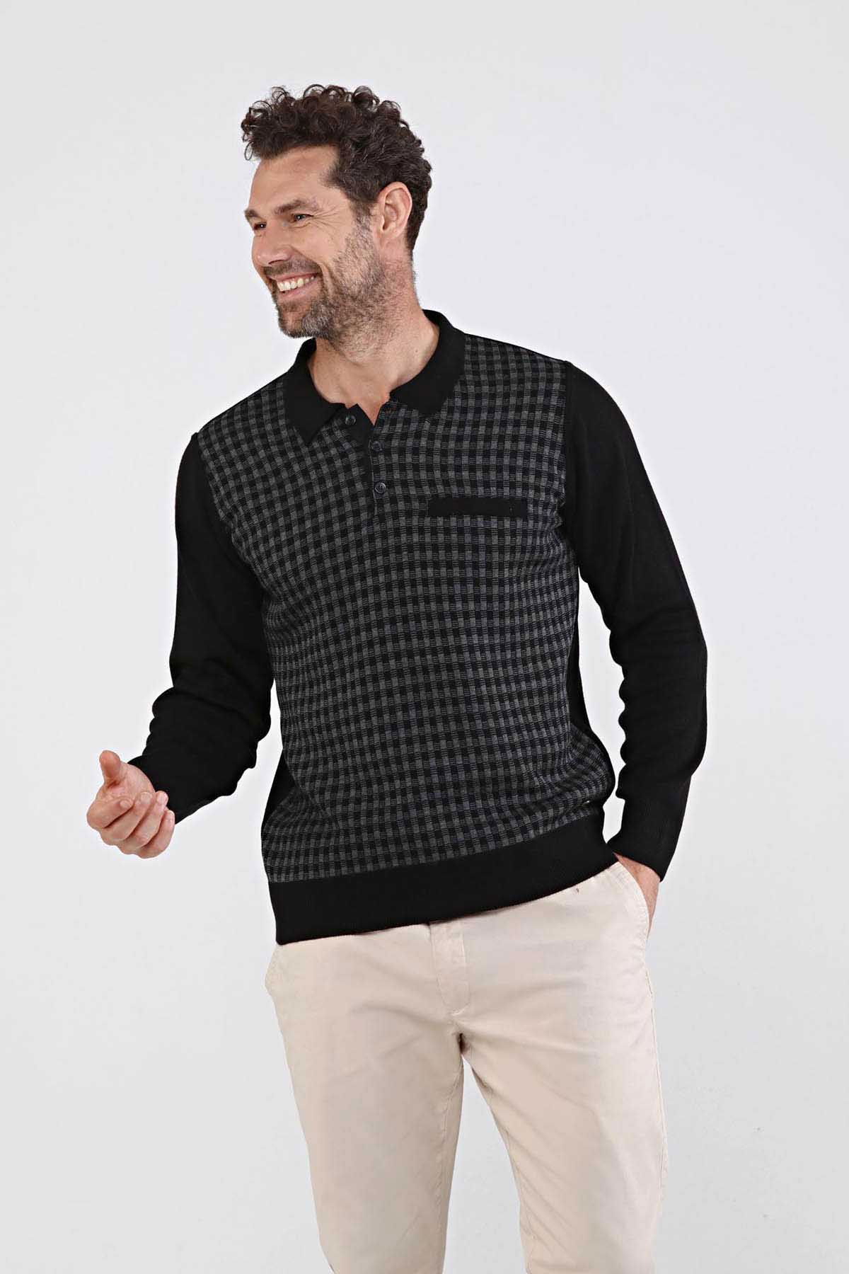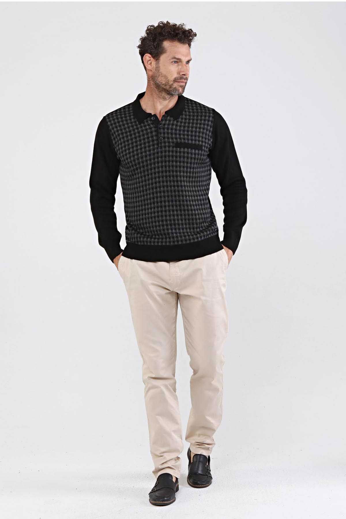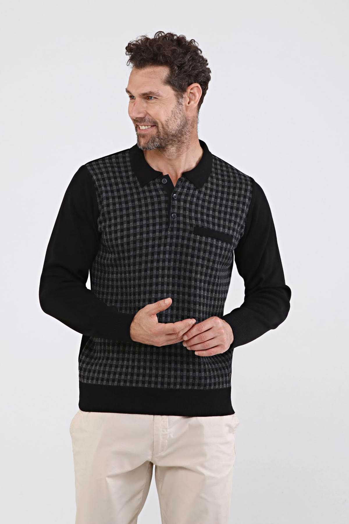 Çizgi Triko Erkek Polo Yaka Çelik Örgü Triko Kazak 4605F Siyah