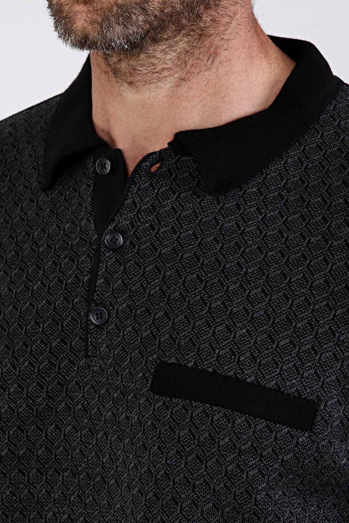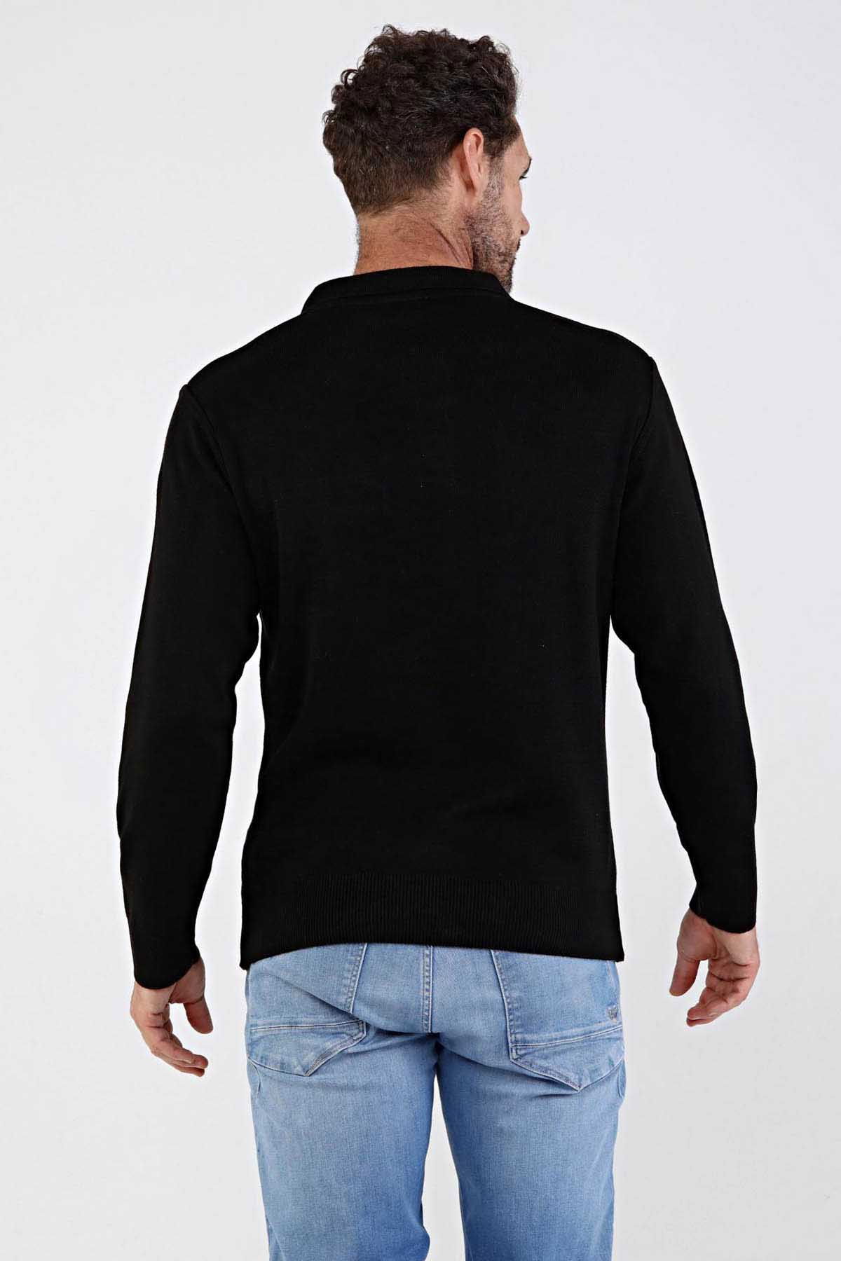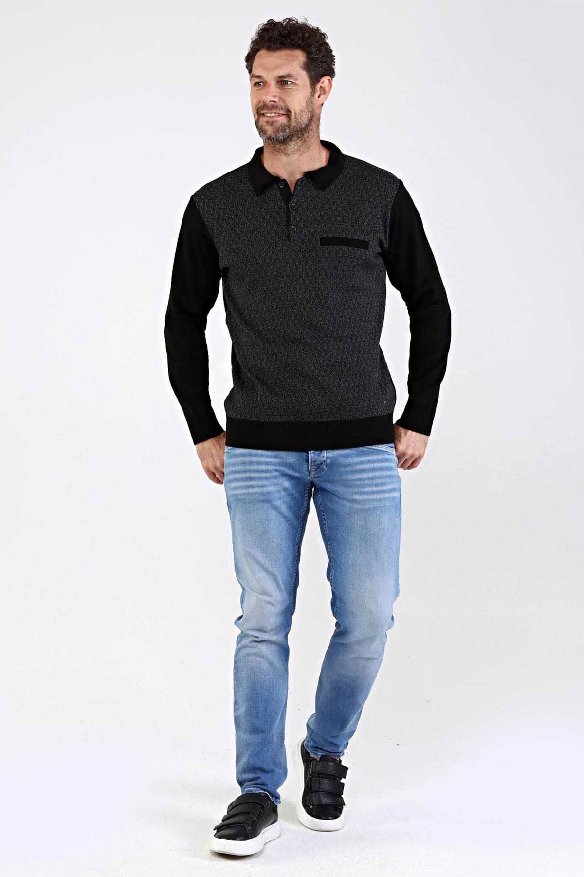 Çizgi Triko Erkek Polo Yaka Çelik Örgü Triko Kazak 4610F Siyah