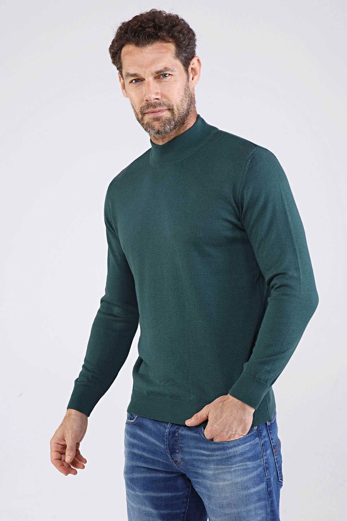 Detay: Sıfır yaka, desenli, kol ve bel lastikli kazak;