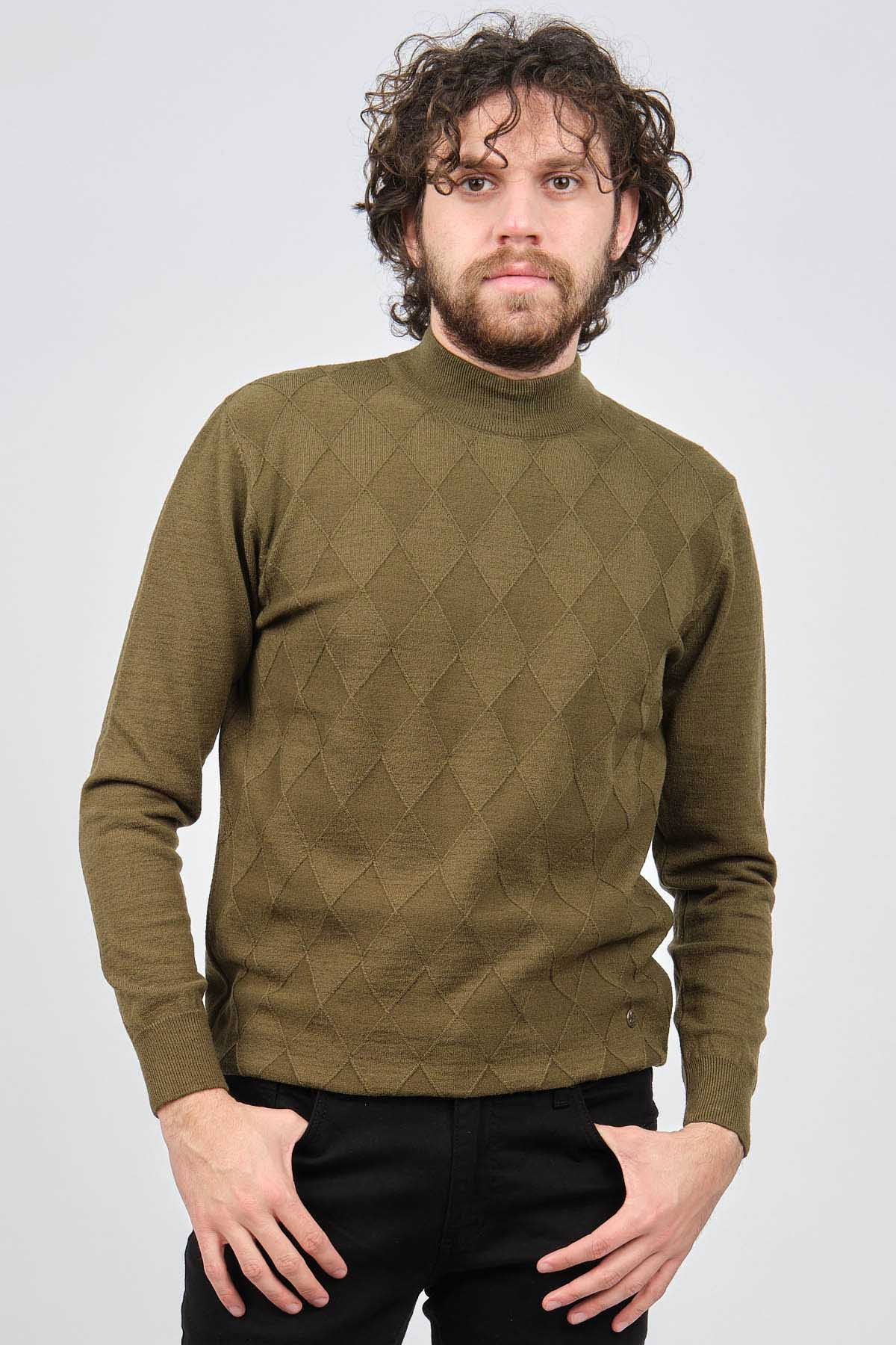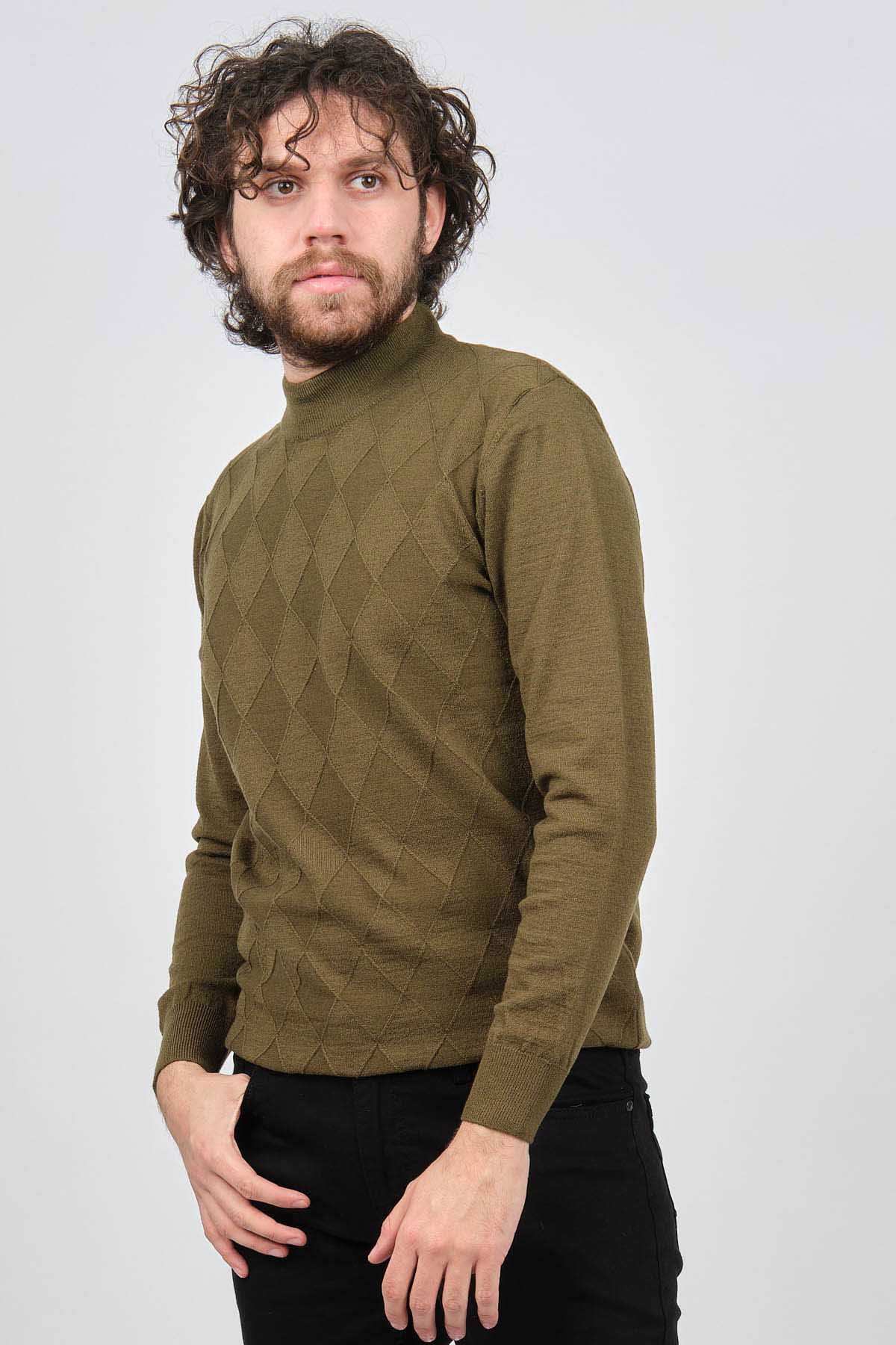 Detay: Yarım balıkçı yaka, Baklava desenli, Uzun kollu kazak;