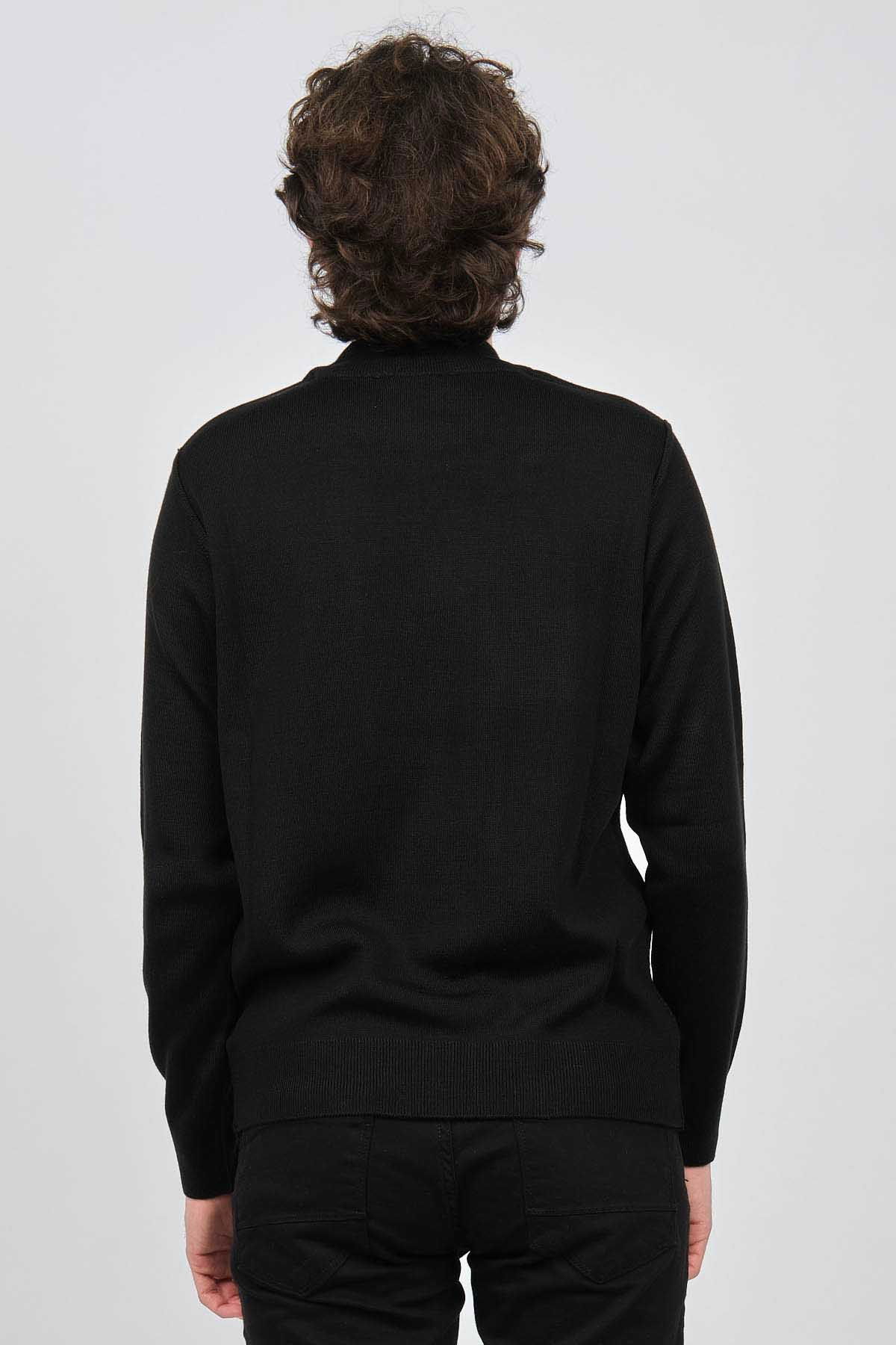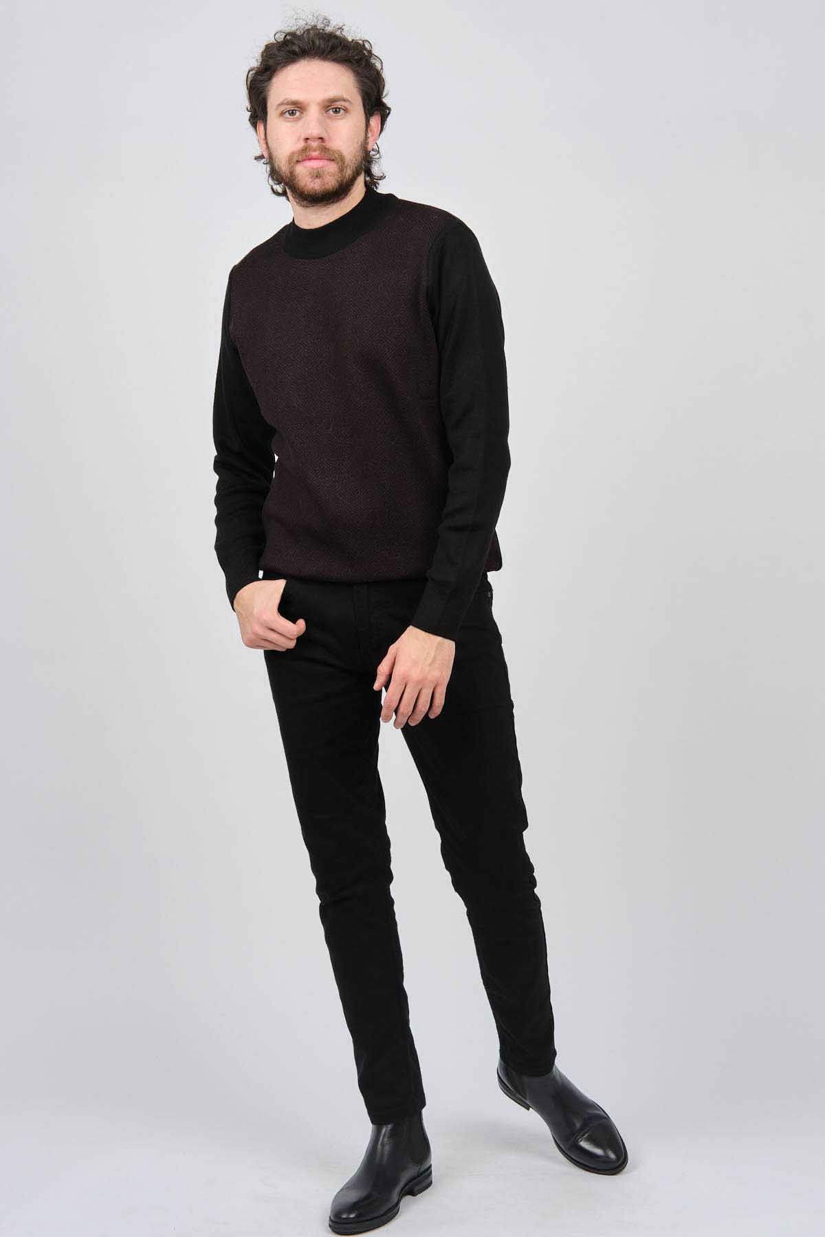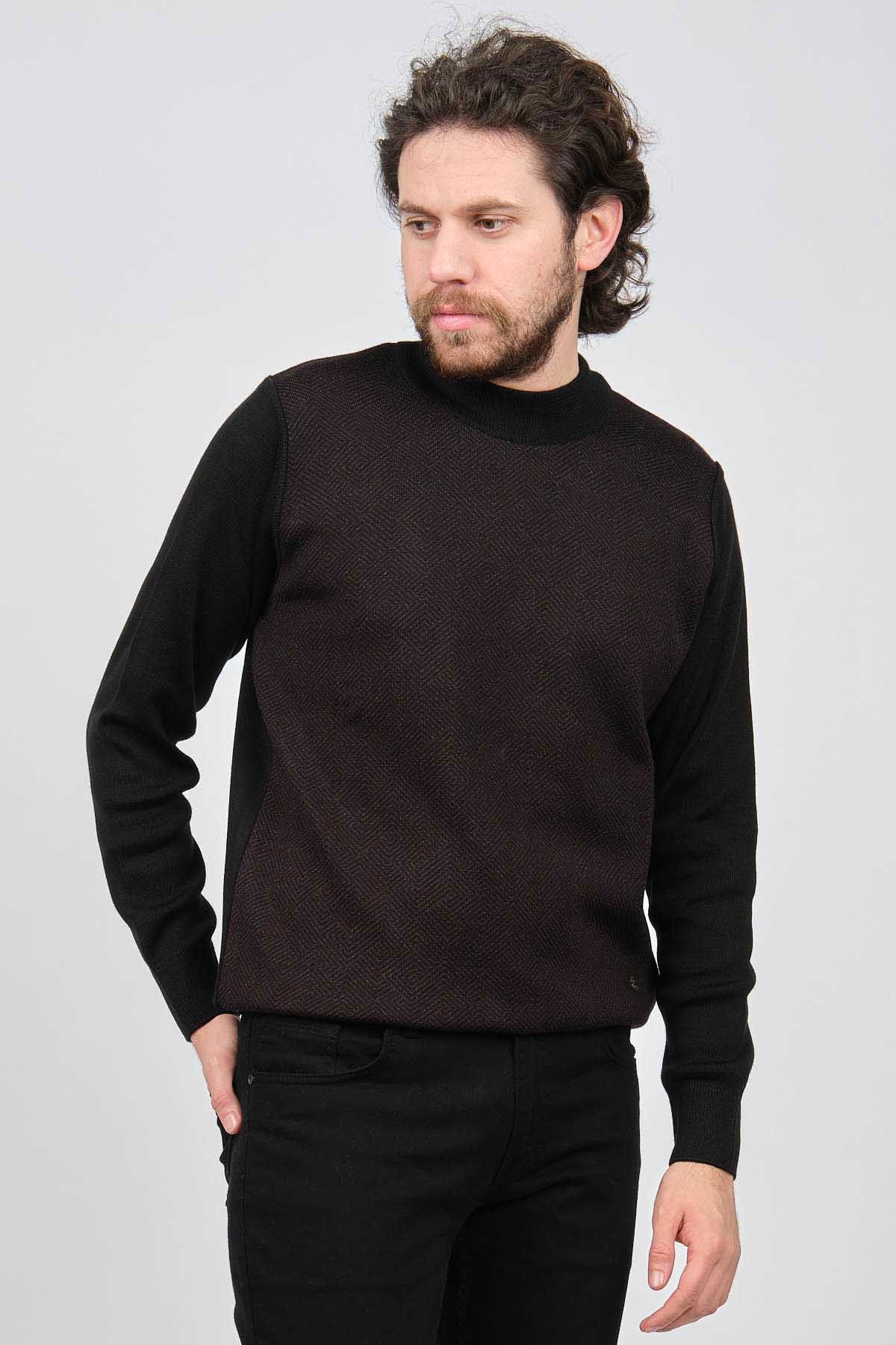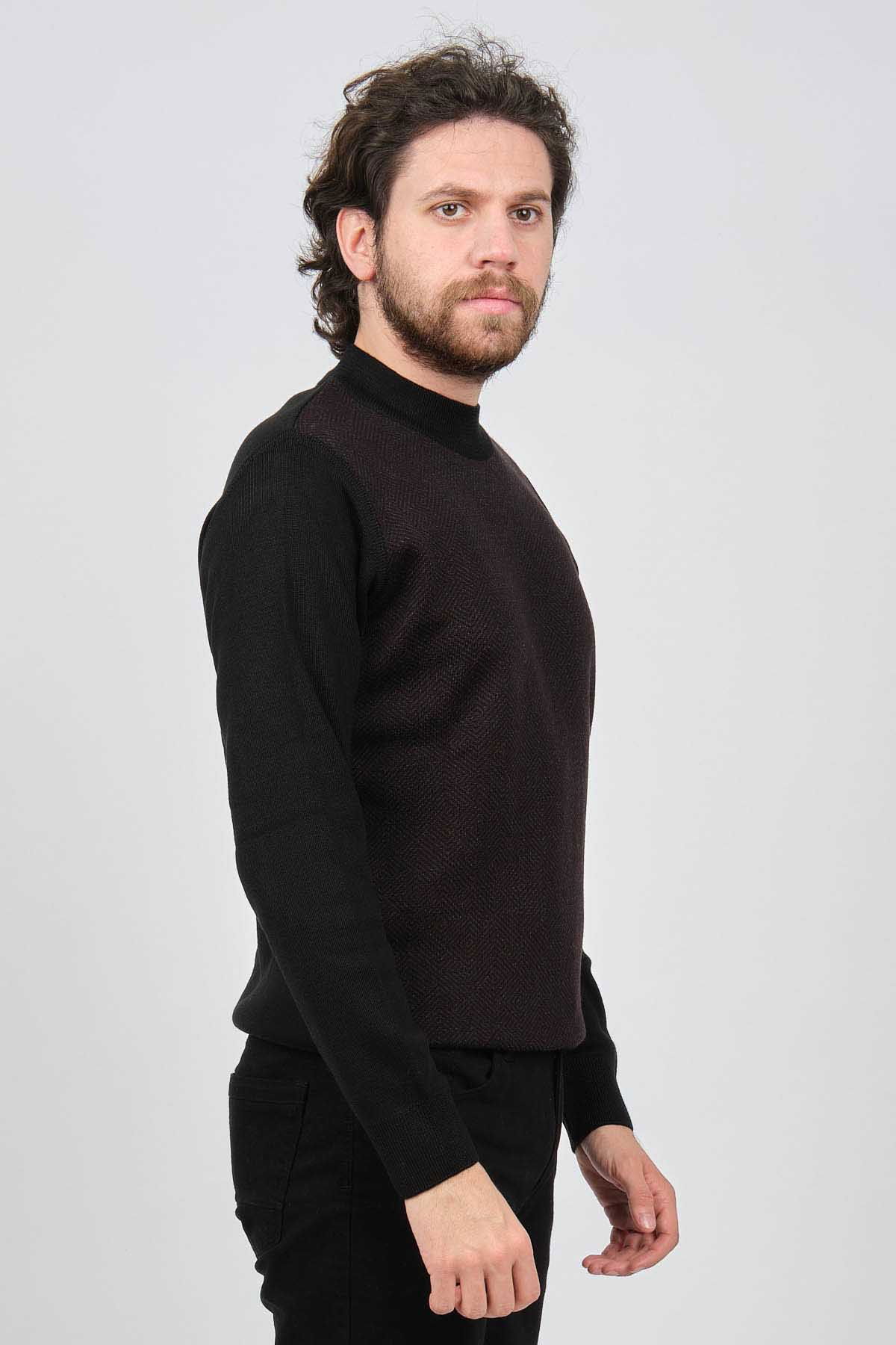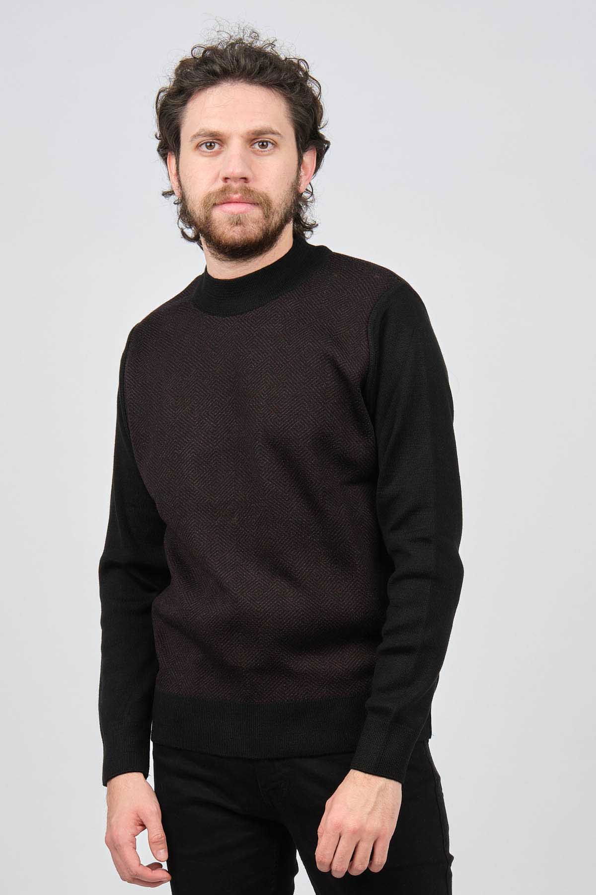 Çizgi Triko Erkek Yarım Balıkçı Yaka Desenli Kazak 42564214 Siyah
