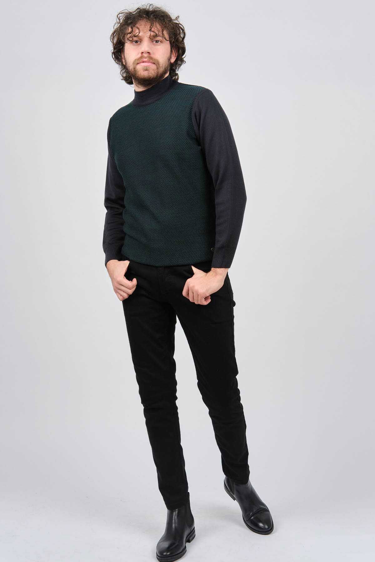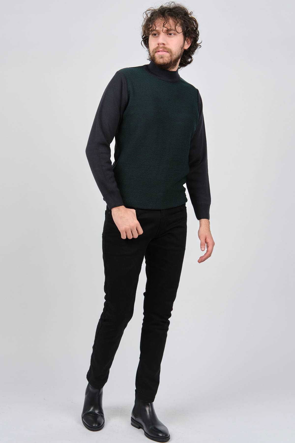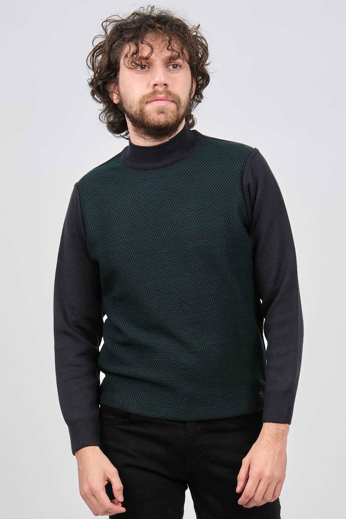 Detay: Yarım balıkçı yaka, Uzun kollu, Önü desenli kazak;
