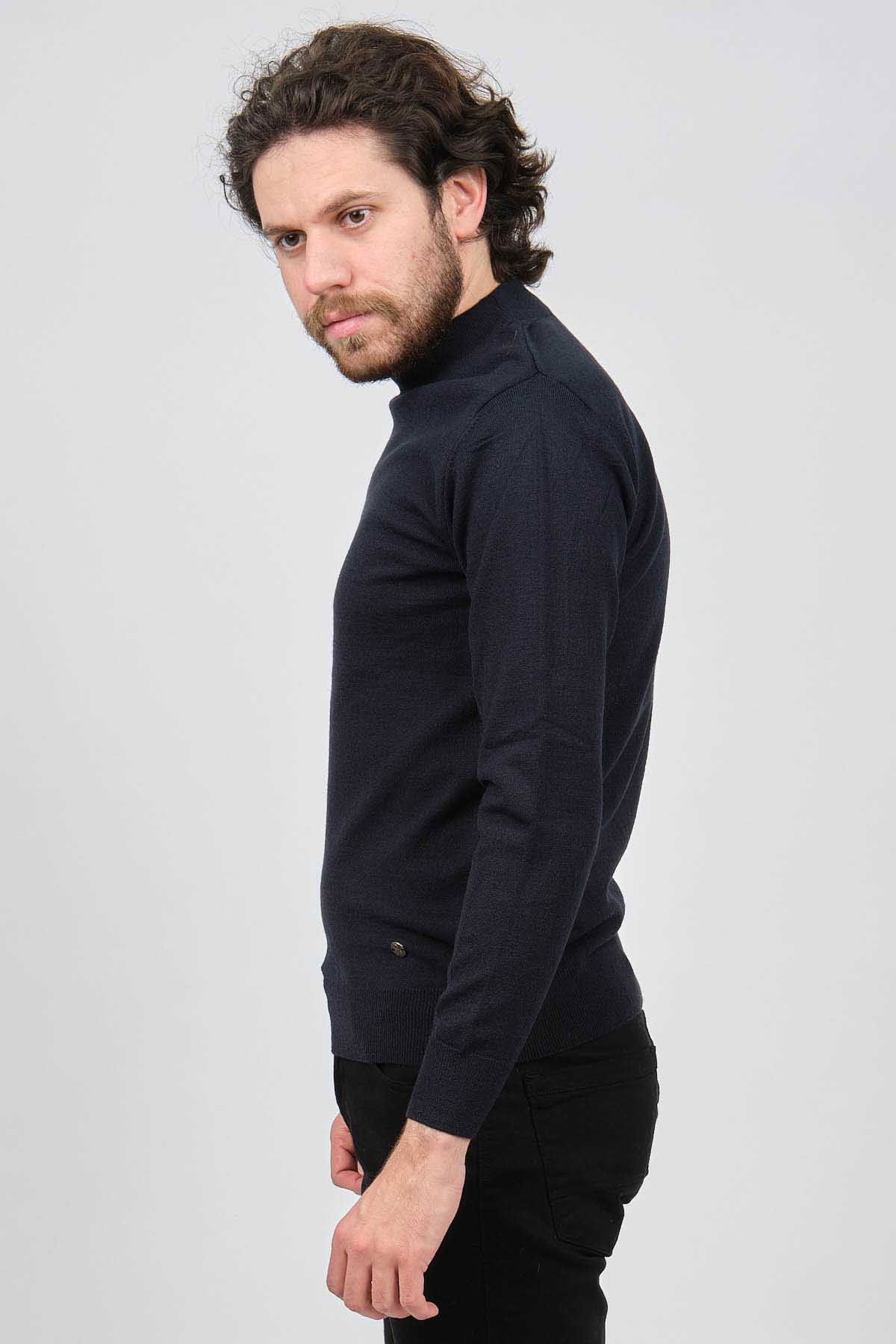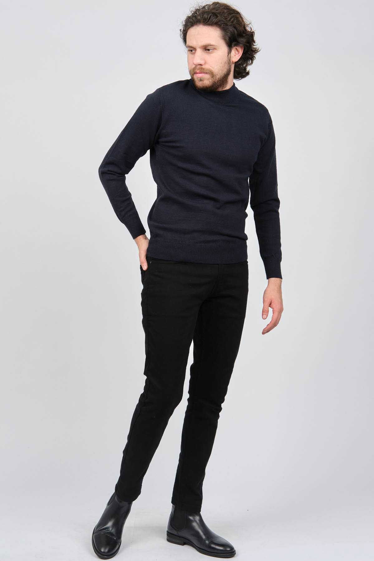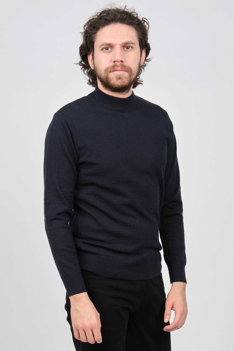 Çizgi Triko Erkek Yarım Balıkçı Yaka Düz Kazak 42564252 Lacivert