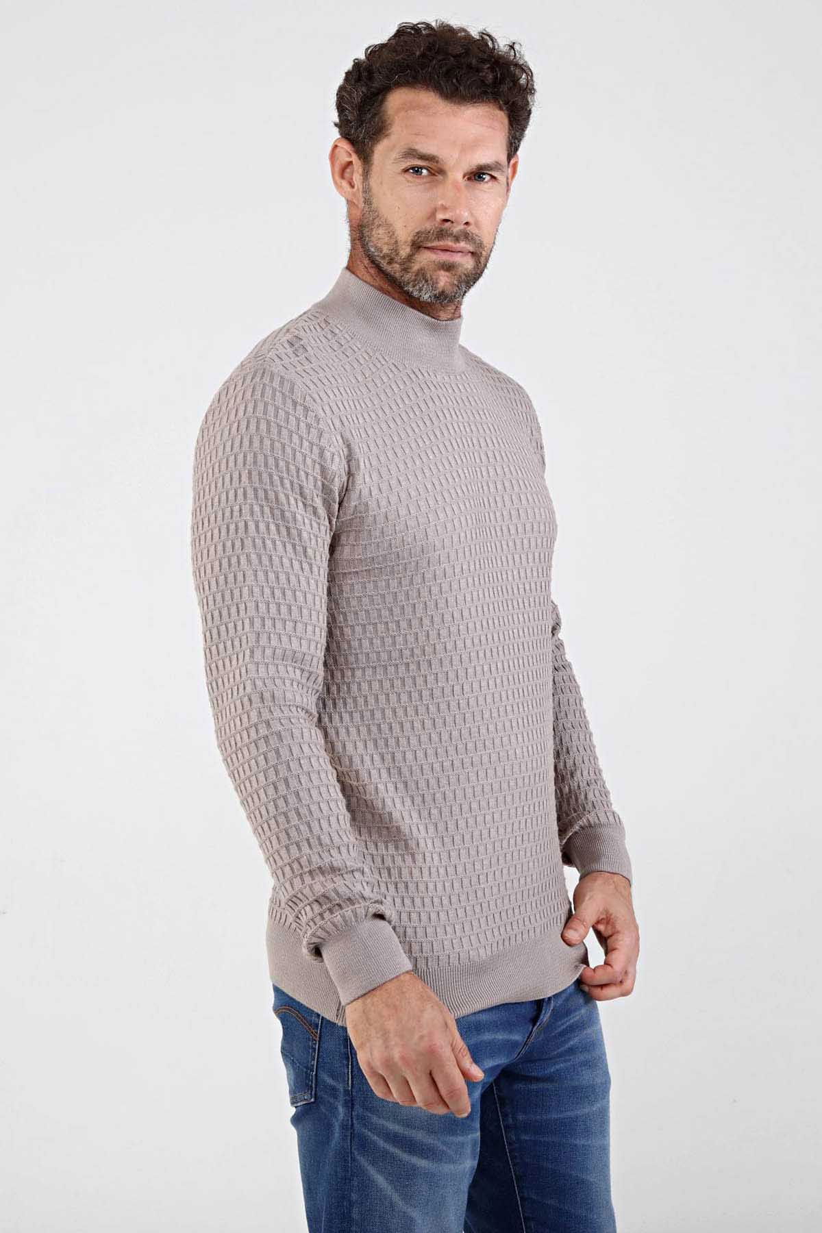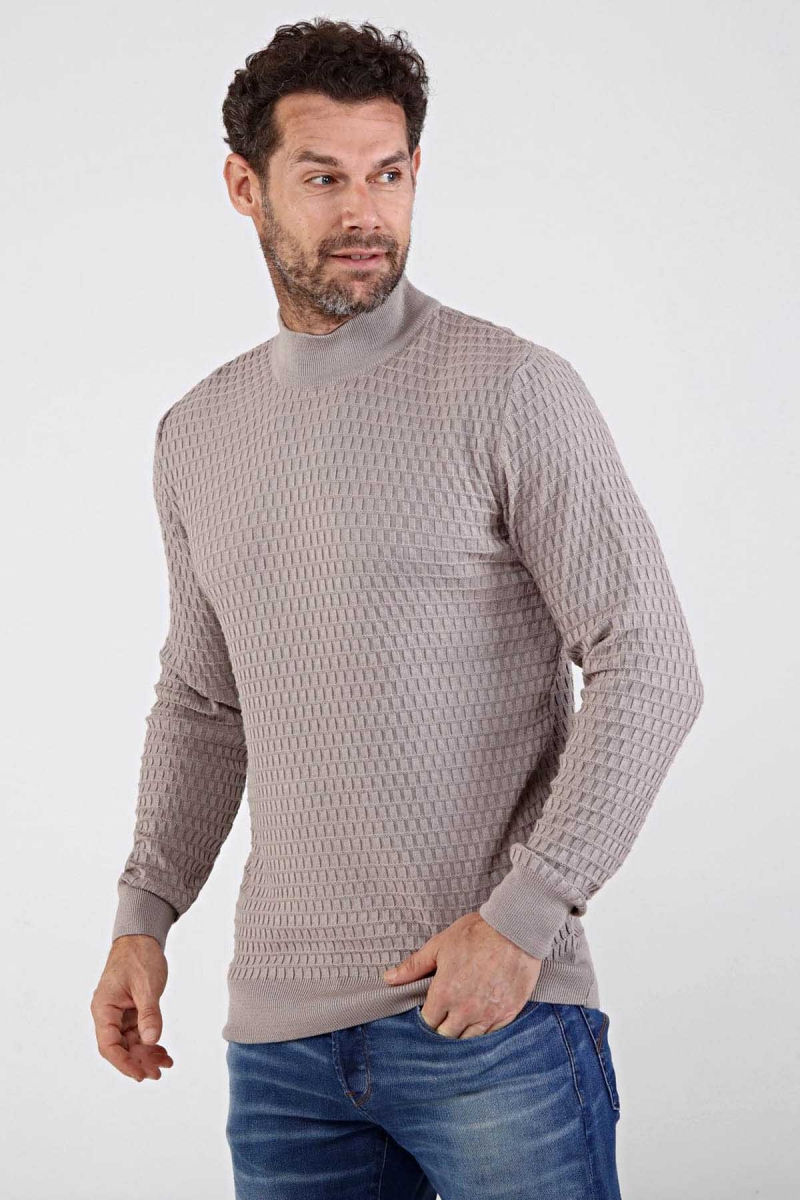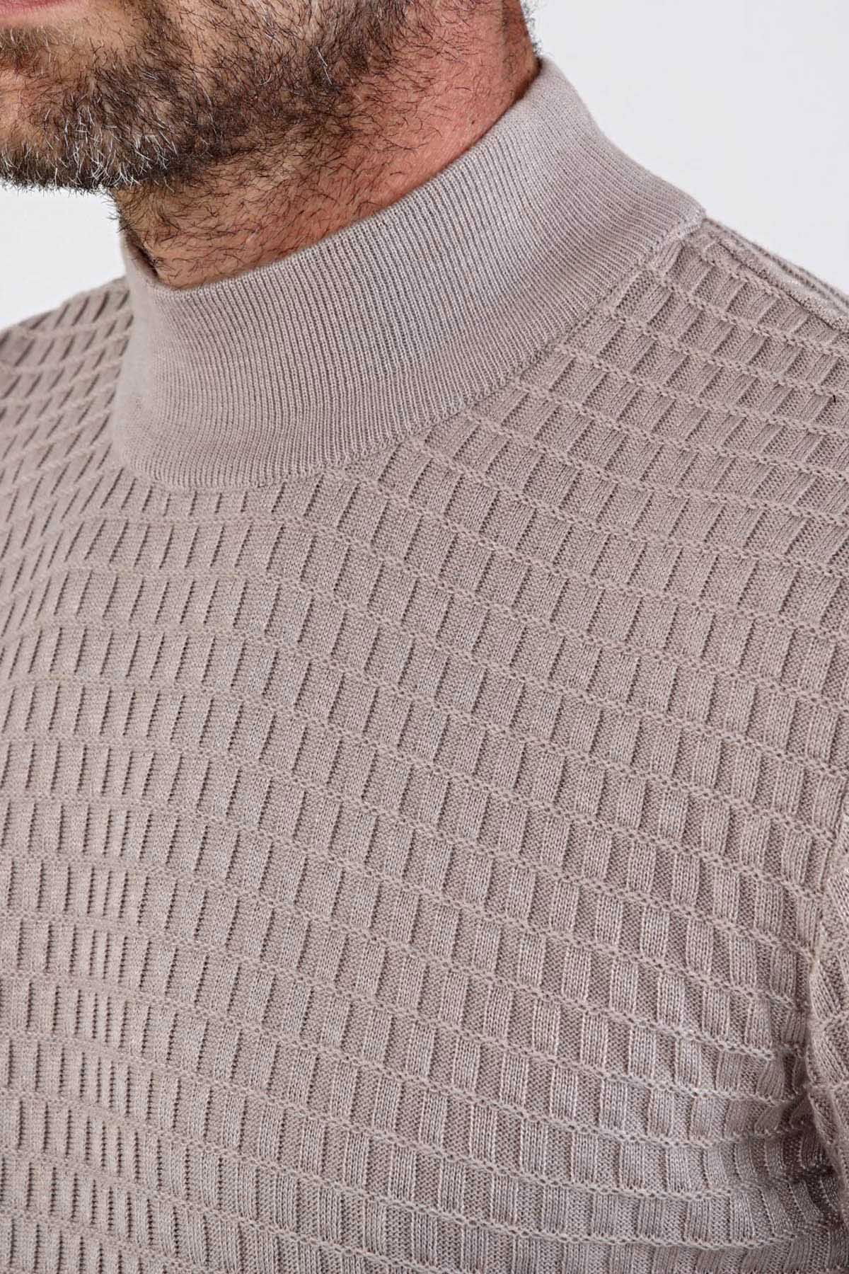 Çizgi Triko Erkek Yarım Balıkçı Yaka Pamuklu Triko Kazak 4653B Bej