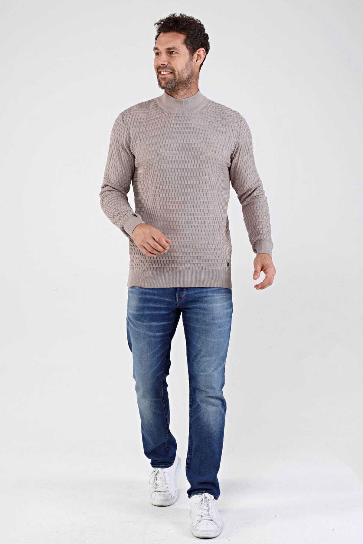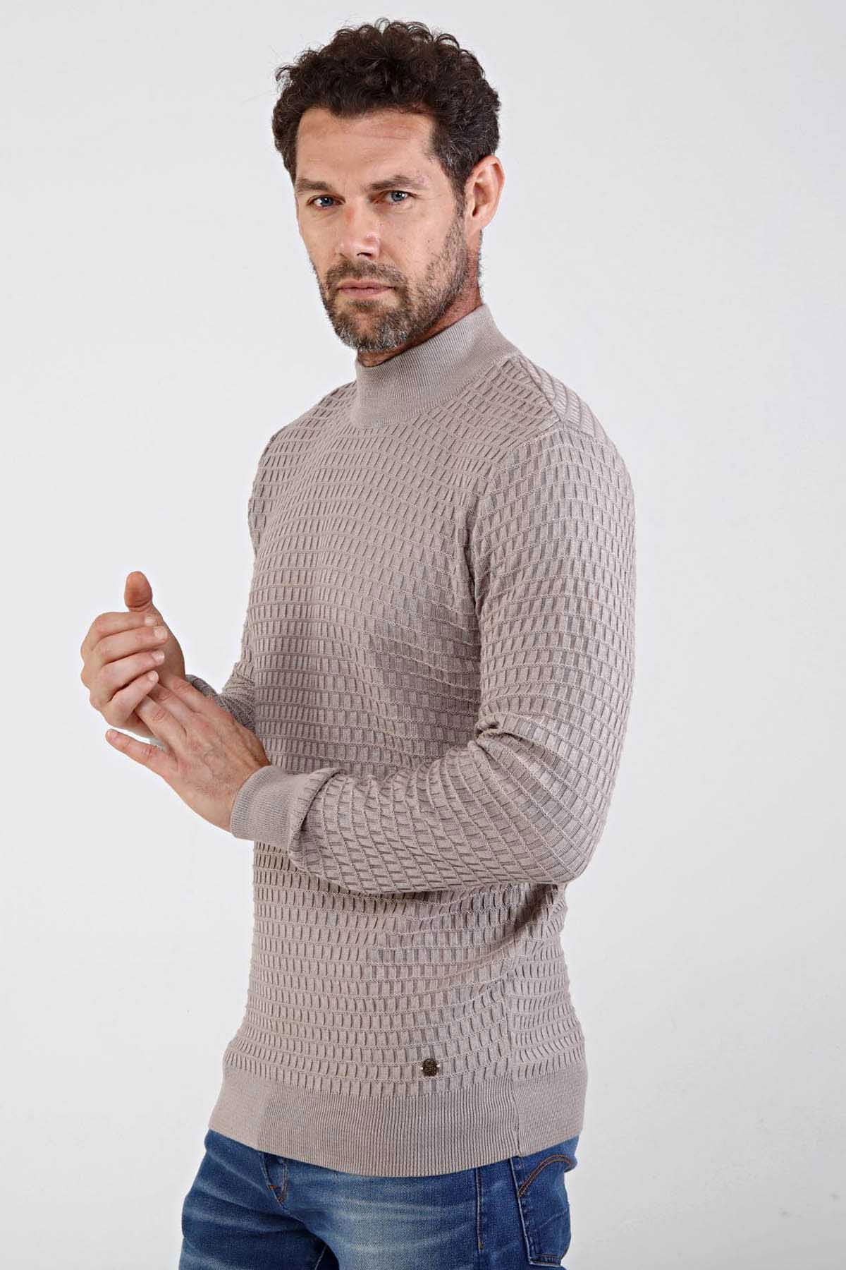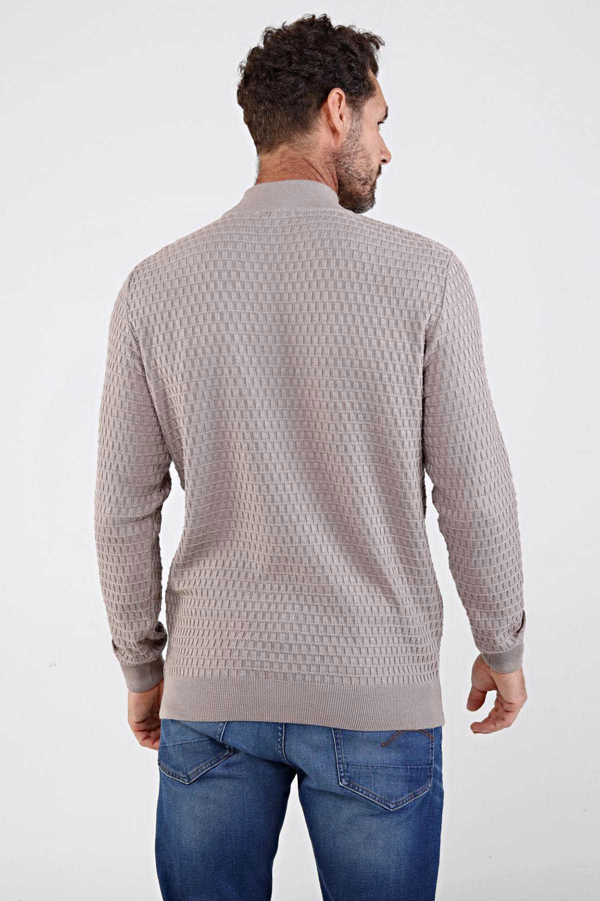 Çizgi Triko Erkek Yarım Balıkçı Yaka Pamuklu Triko Kazak 4653B Bej
