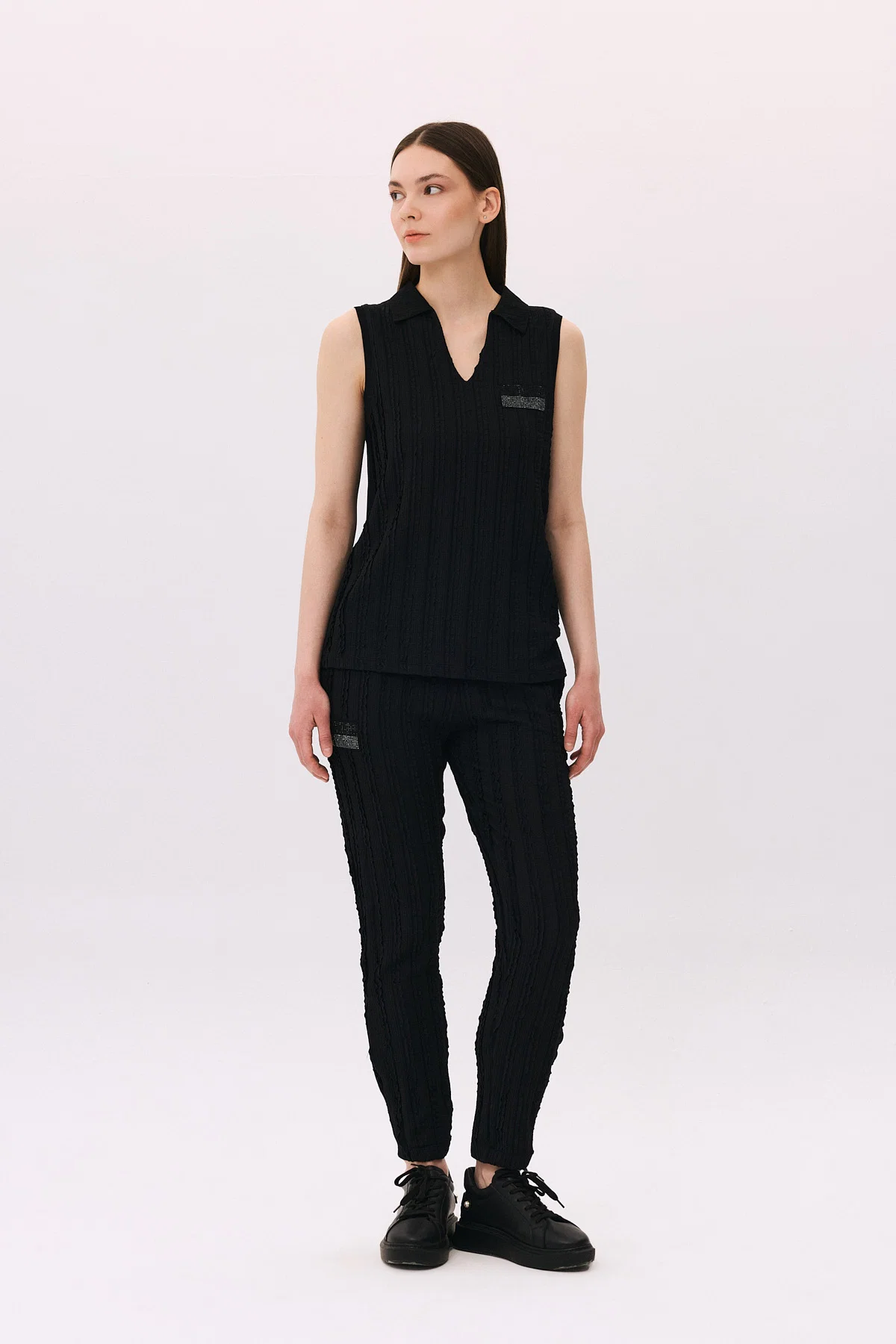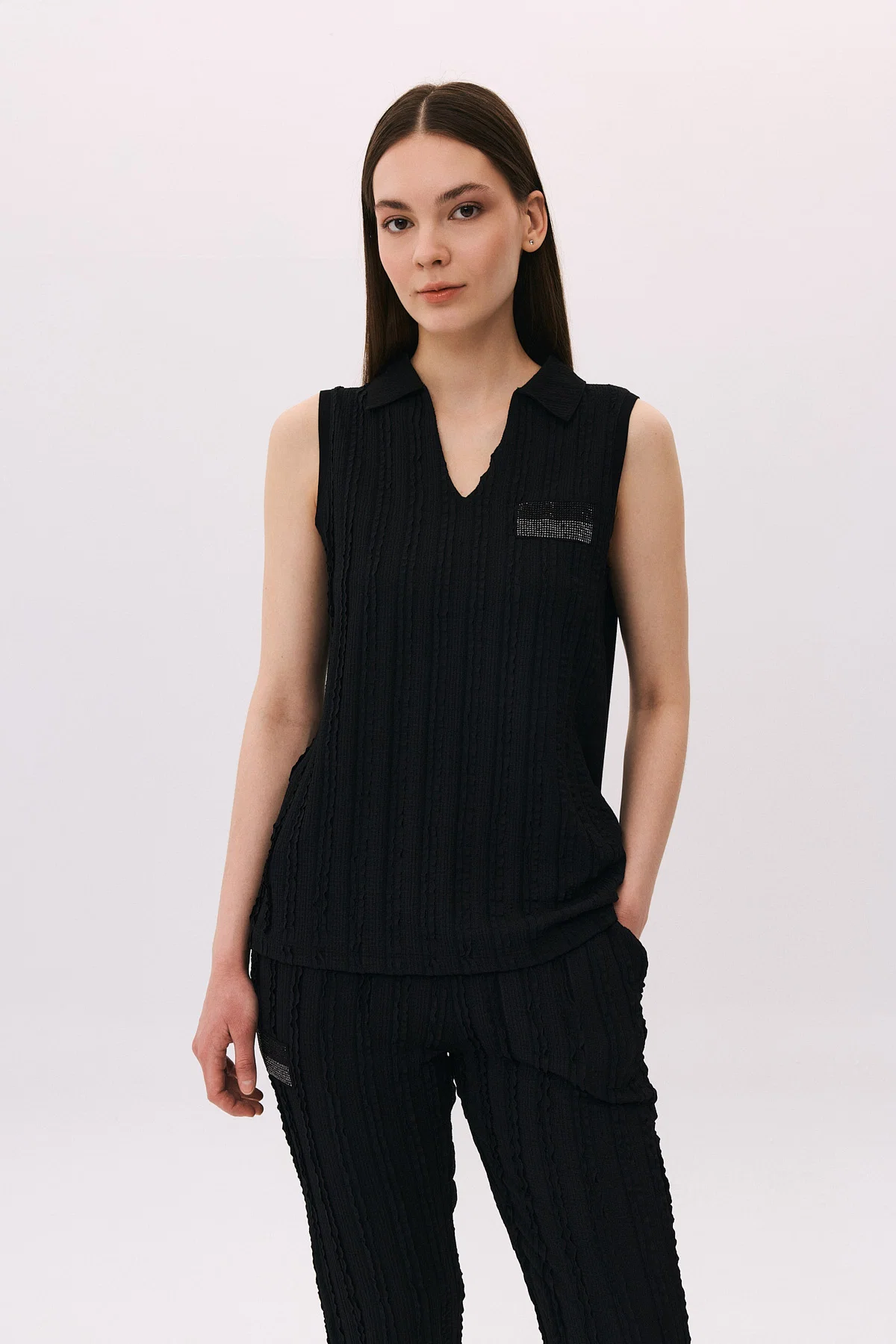Detay: Polo yaka, kolsuz, ön kısmı küçük fırfır detaylı, yan kısımları yırtmaçlı, süs cepli ve cebi taş süslemeli bu model penye T-Shirt rahat bir kullanım sunar. Modern tasarımıyla günlük kombinlerde şıklığı öne çıkarırken penye dokusu sayesinde gün boyu konfor sağlar. Fırfır ve taş süslemeler ise zarif bir dokunuş katarak kullanışlı bir tercih haline gelir;