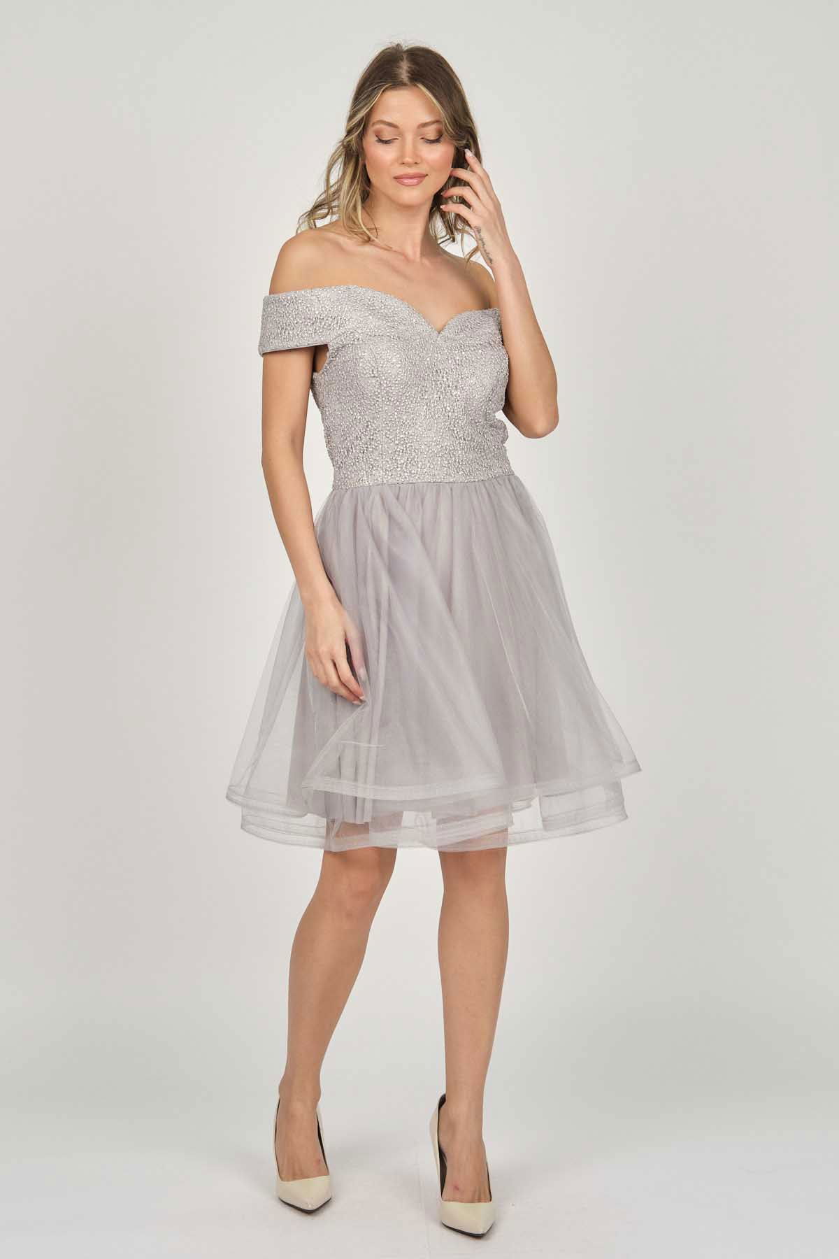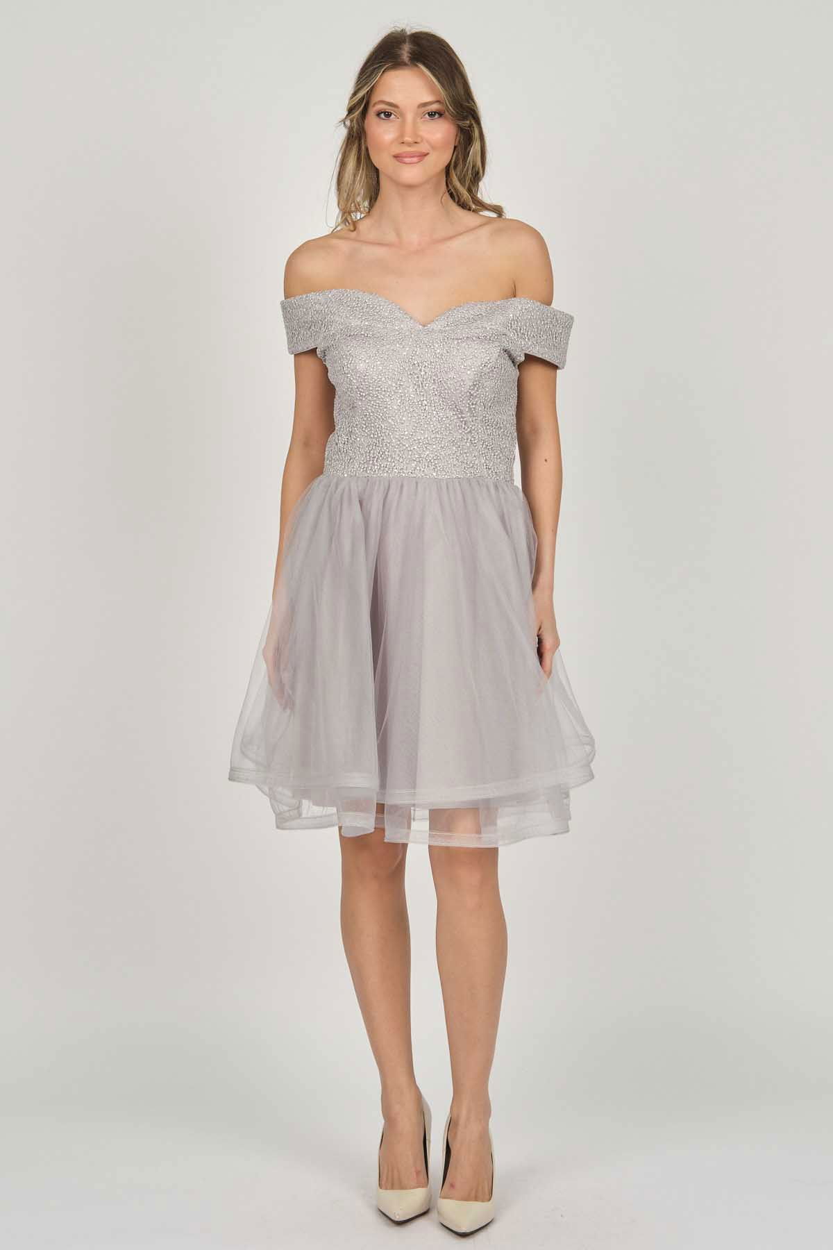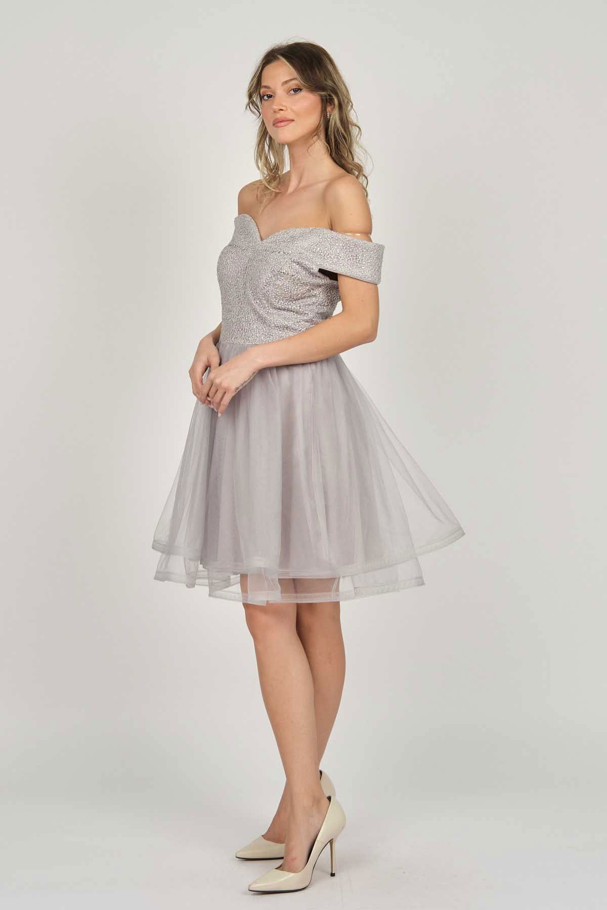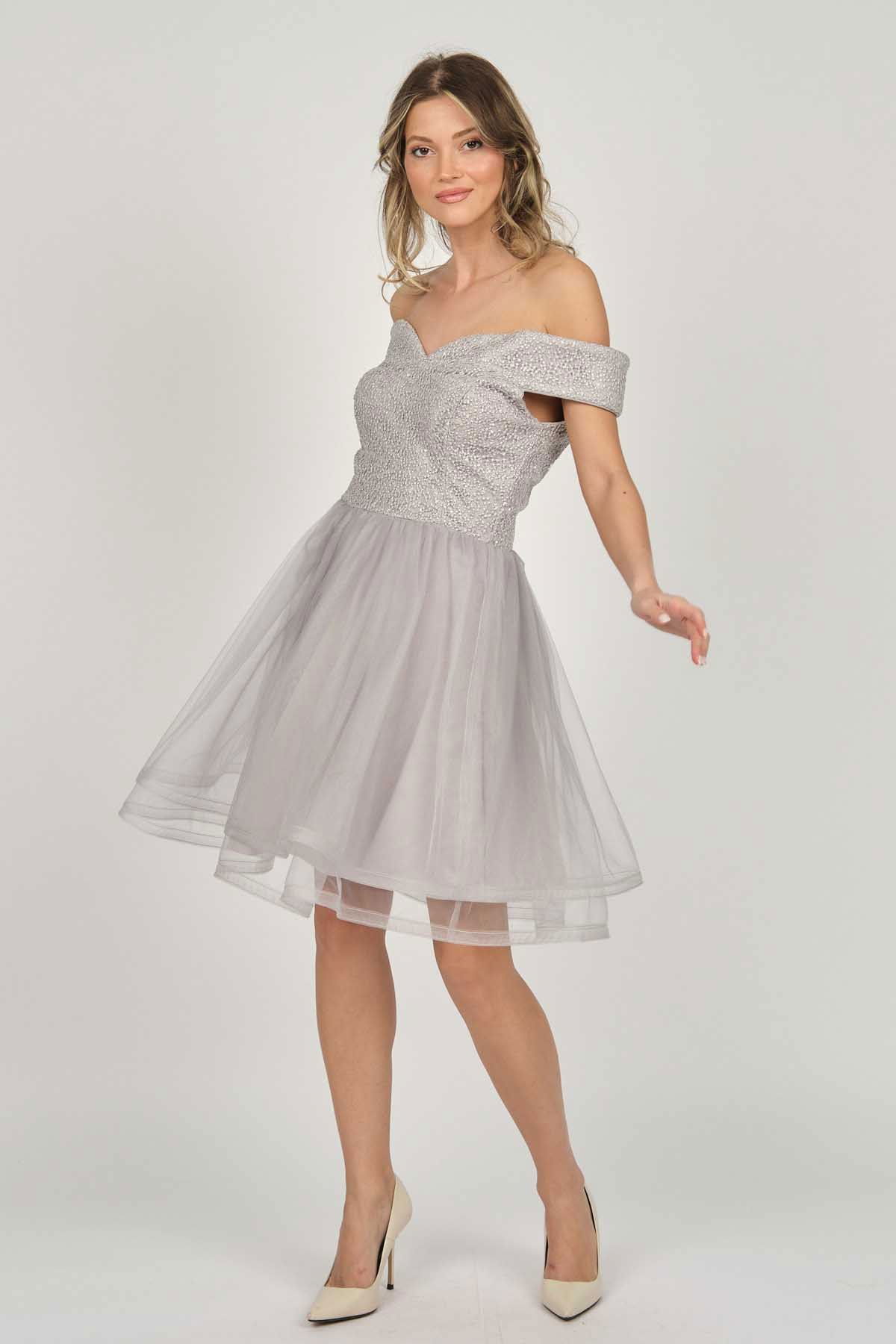 Detay: Yaka detaylı, kloş, astarlı abiye elbise;