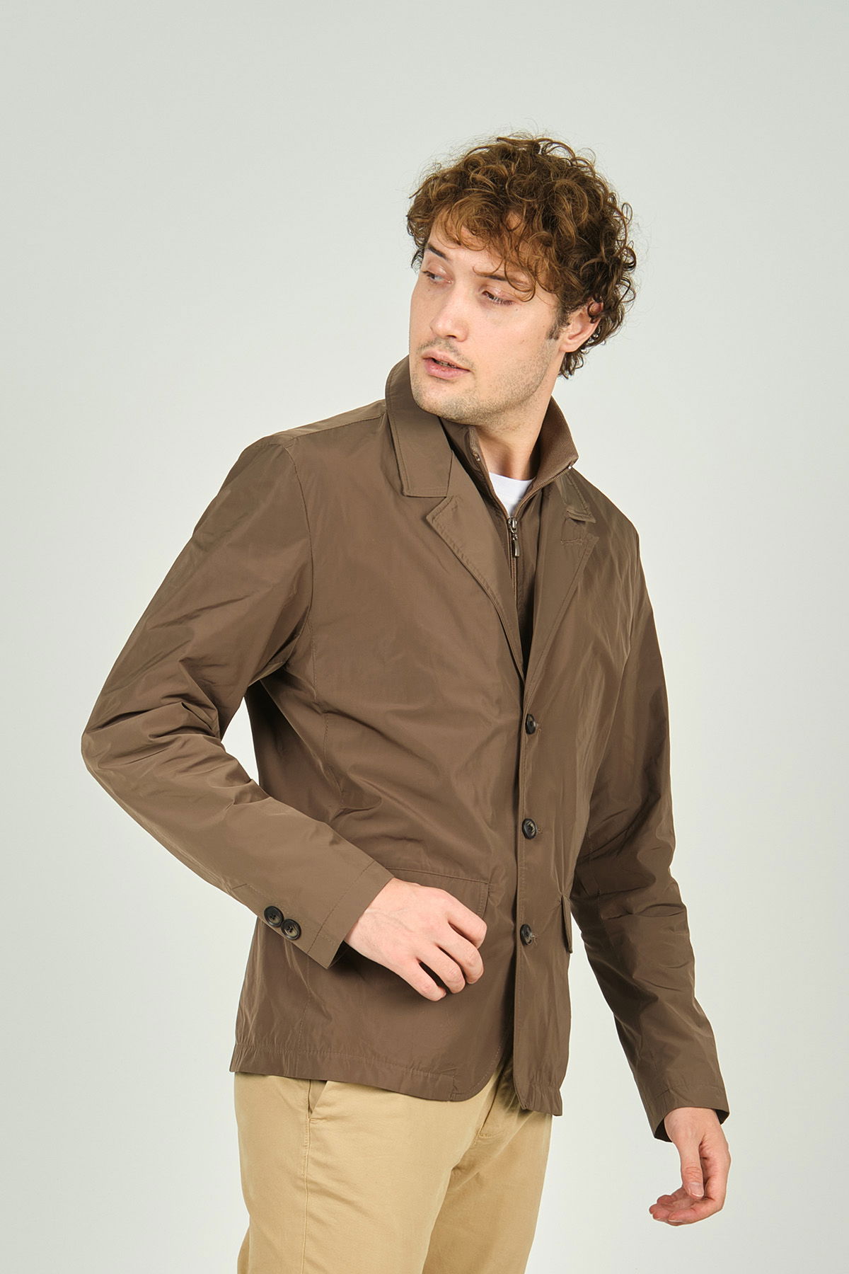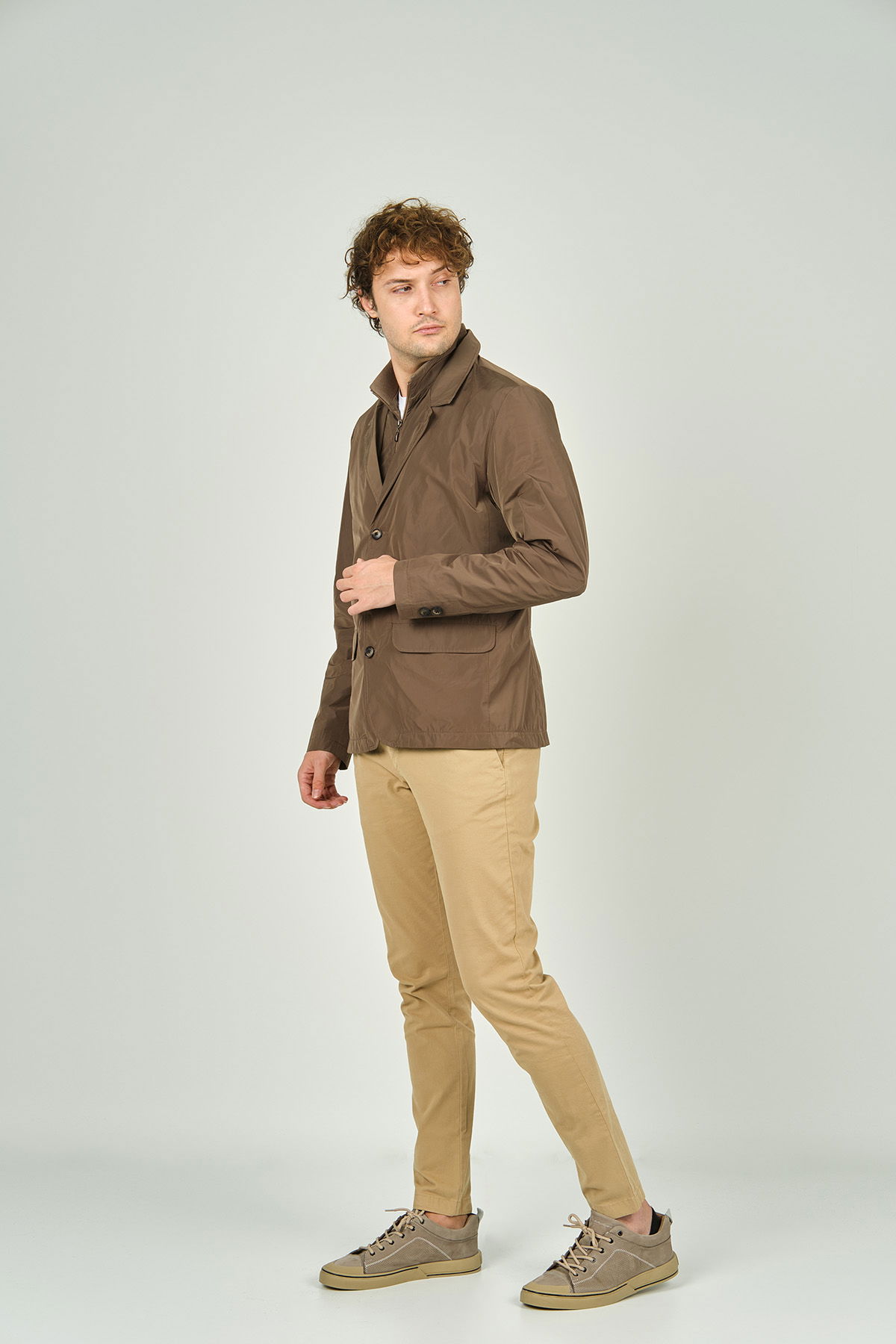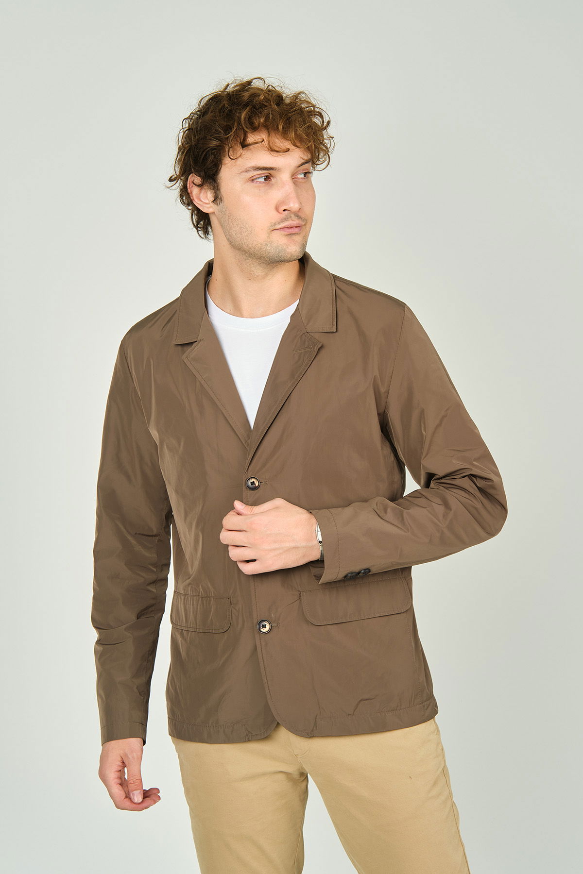 Daynax Erkek Çift Yaka Detaylı Düğme Kapamalı Ceket Mont 4900 Vizon