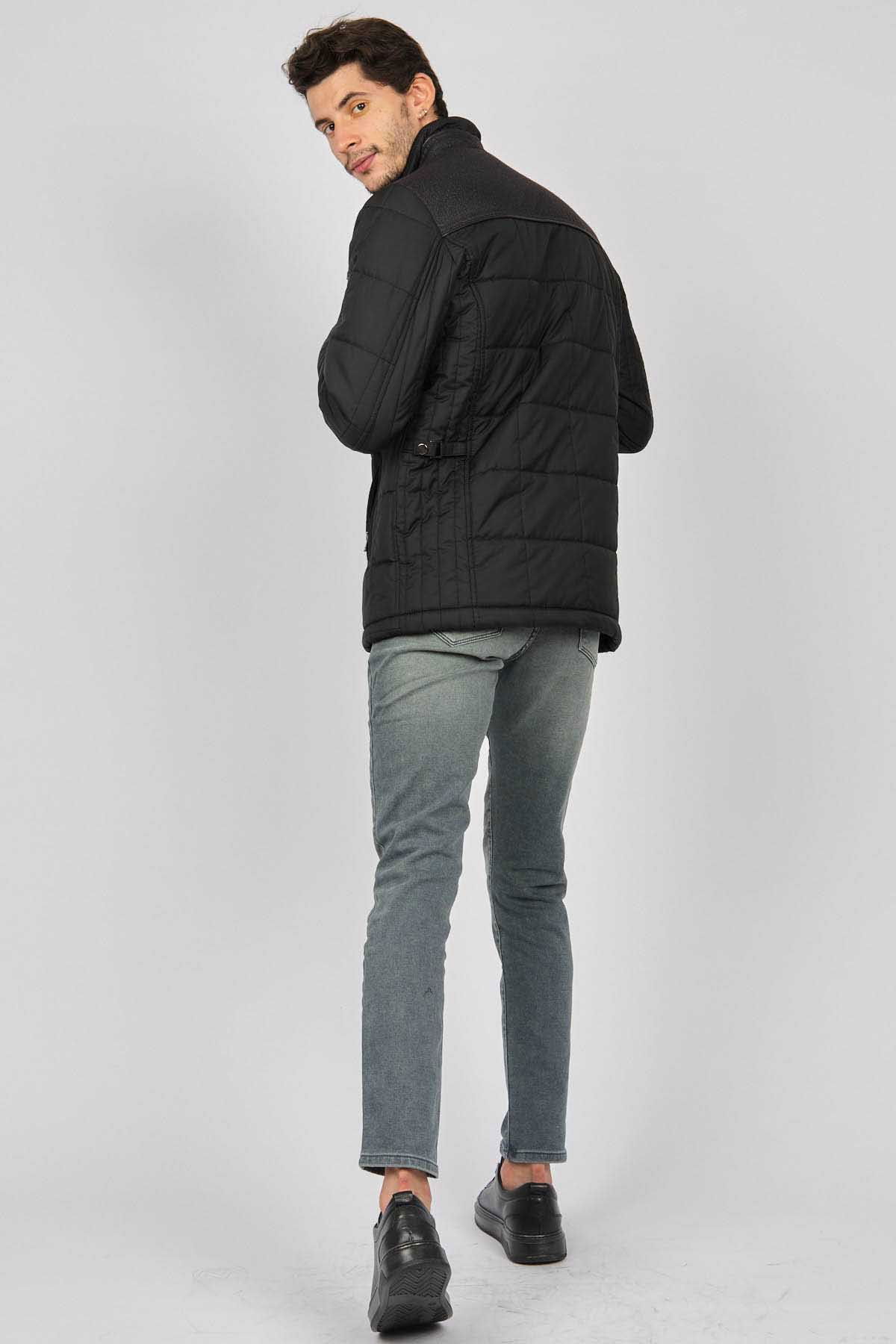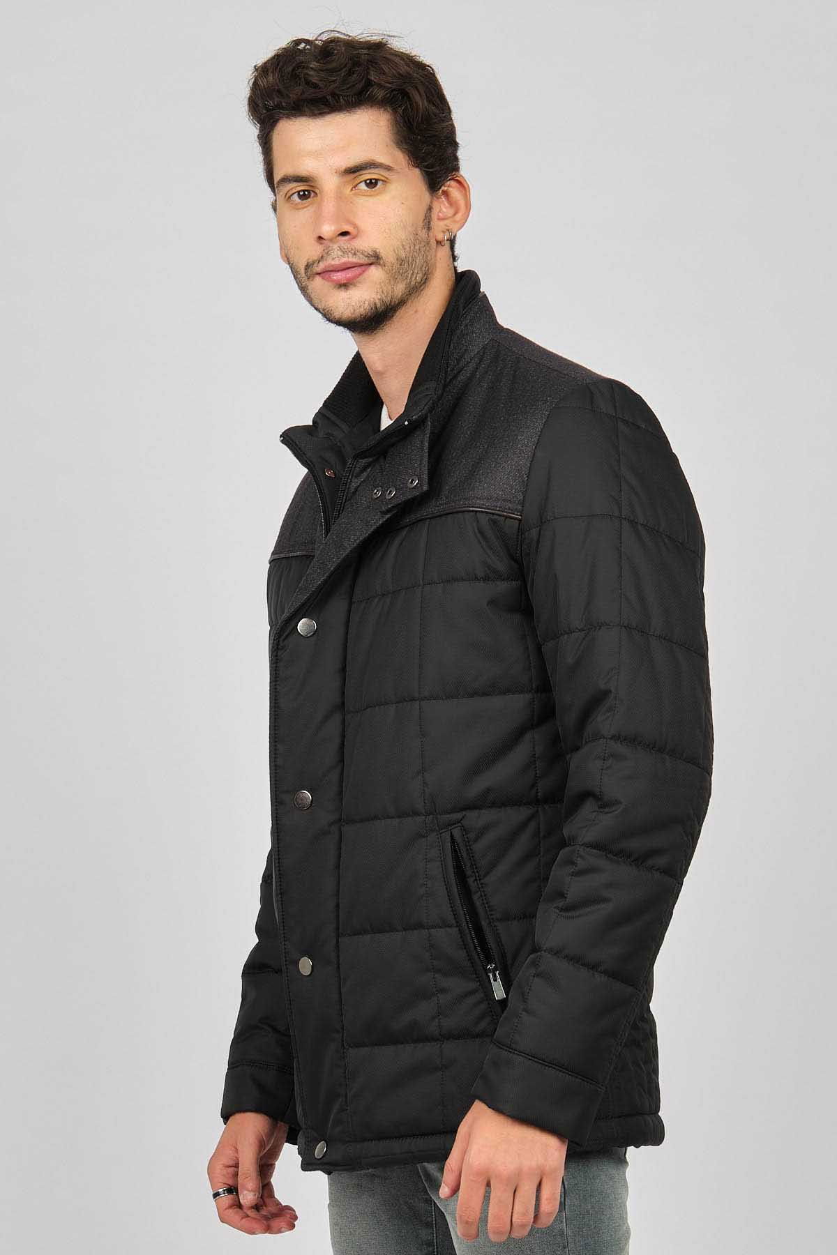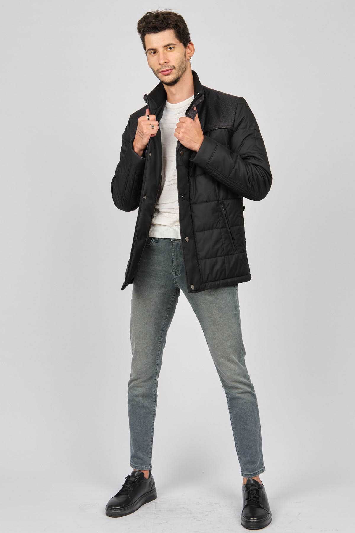 Detay: Dik yaka, İçi kürklü, Fermuarlı yan cepler, Fermuar ve çıtçıt kapamalı, Roba garnili kapitone kaban;