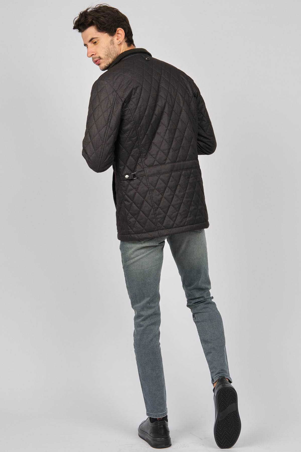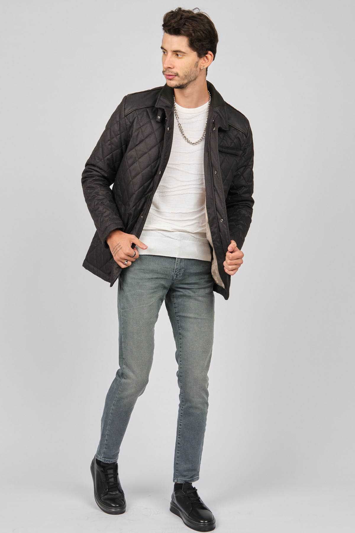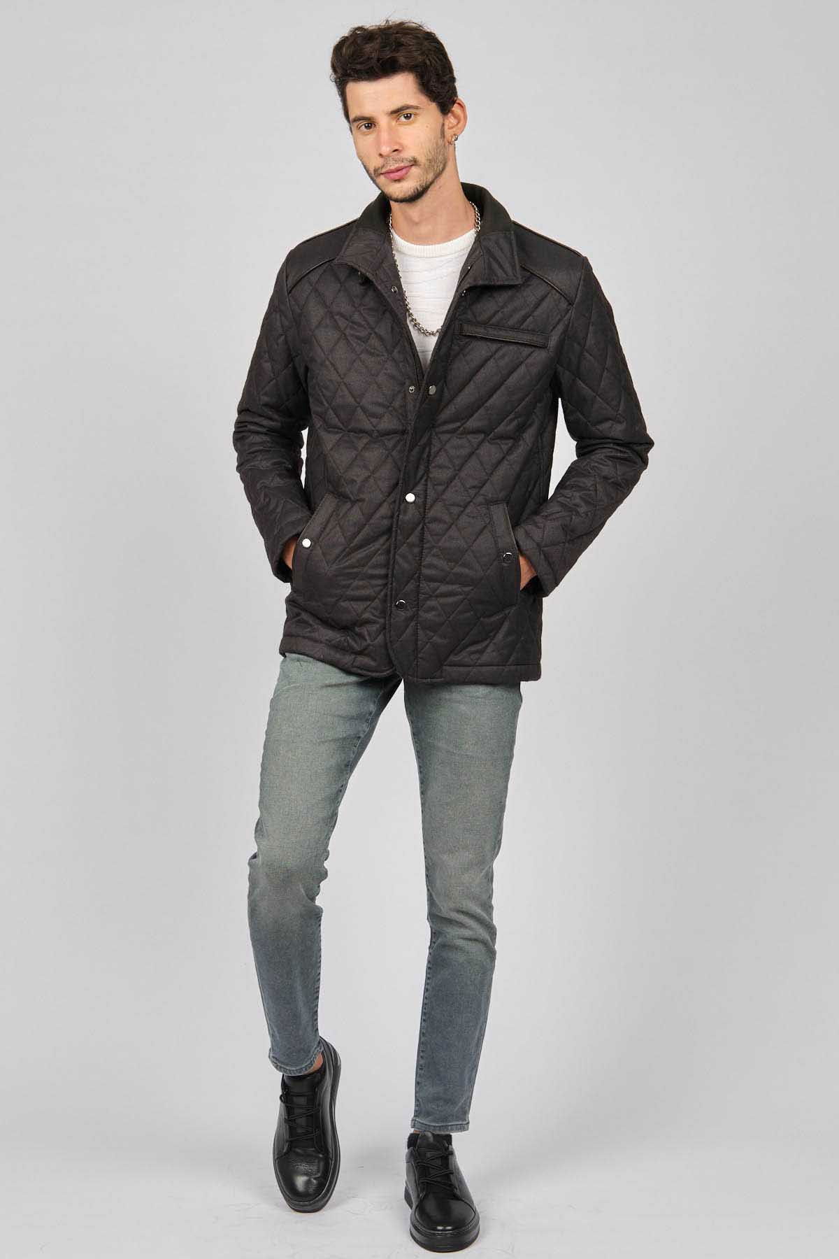 Detay: Deri biye detaylı, Tek göğüs cepli, çıtlı çift yan cepler, fermuar ve çıt kapamalı, baklava desenli içi kürklü kapitone kaban;